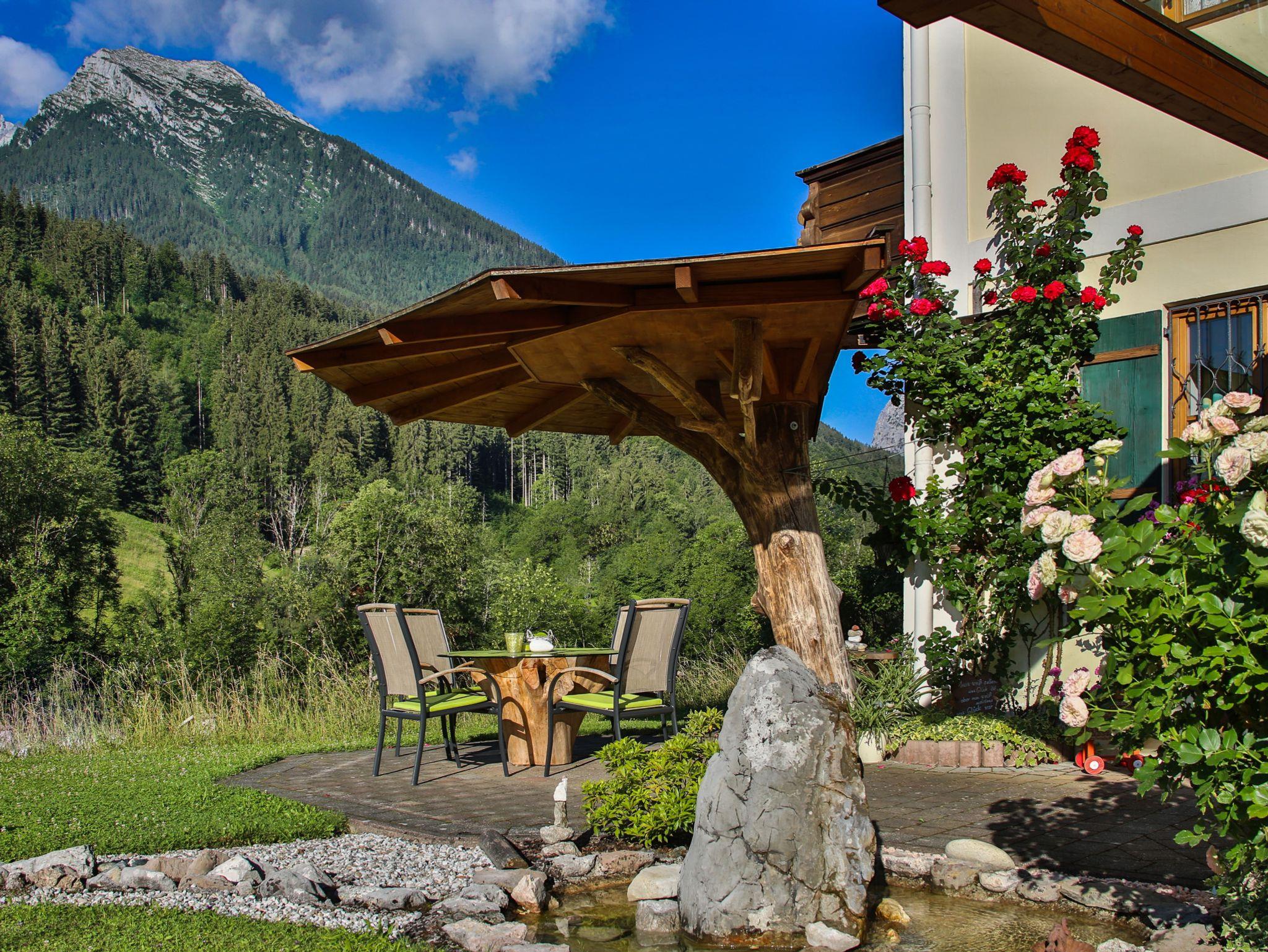 Erleben Sie Ihre Ferien Bei uns Daheim. Unser sehr gepflegtes Gästehaus liegt in sonniger Südlage und Sie haben einen herrlichen Panoramablick auf unsere Ramsauer Berge. Ihr Auto kann geparkt bleiben, bei uns haben Sie einen idealen Ausgangspunkt für verschiedene Wanderungen oder Sie nutzen unseren kostenlosen Panorama-Wanderbus. Es erwarten Sie hochwertige Ferienwohnungen mit abgetrennten Wohn- und Schlafbereich, großzügigen neuen Bädern und mit eigenem Balkon. Zur Erholung bieten wir Ihnen ein Kneippbecken gespeist mit eigenem Quellwasser, Gartenhaus mit Freisitz, Sonnenterrasse und Liegewiese.