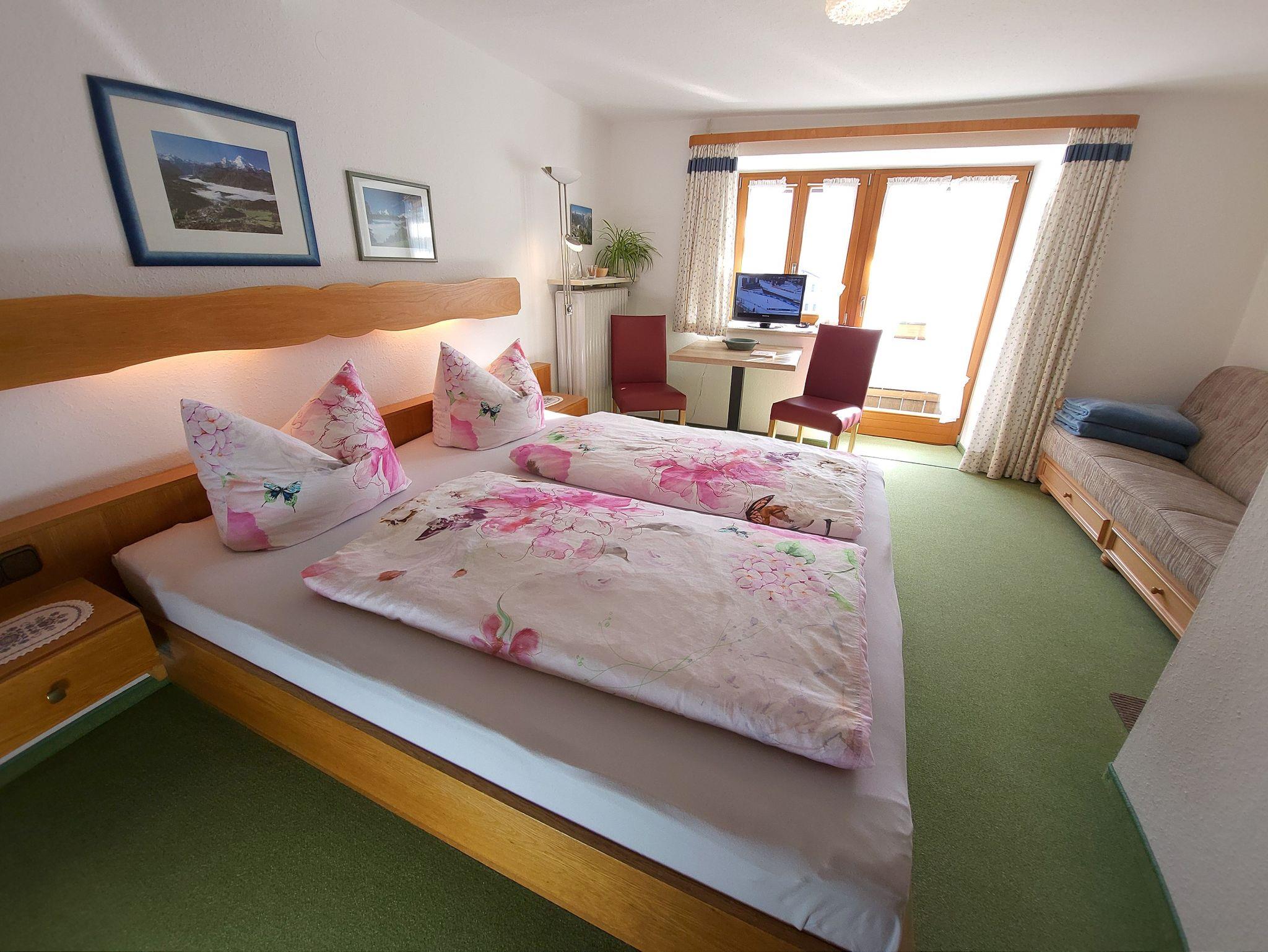 Unsere gemütlich eingerichteten Zimmer mit Dusche, WC und Balkon bieten einen herrlichen Blick auf die umliegende Bergwelt.Zum Frühstücksbuffet erwartet Sie ein reichhaltiges Angebot, wobei wir auch gerne auf Sonderwünsche eingehen.Zimmer 6: 20 qm, im 1. Stock gelegen, Balkon nach Süden mit herrlichem Bergblick. Teppichboden, Tisch und 2 Stühle, zusätzliche Schlafcouch vorhanden.