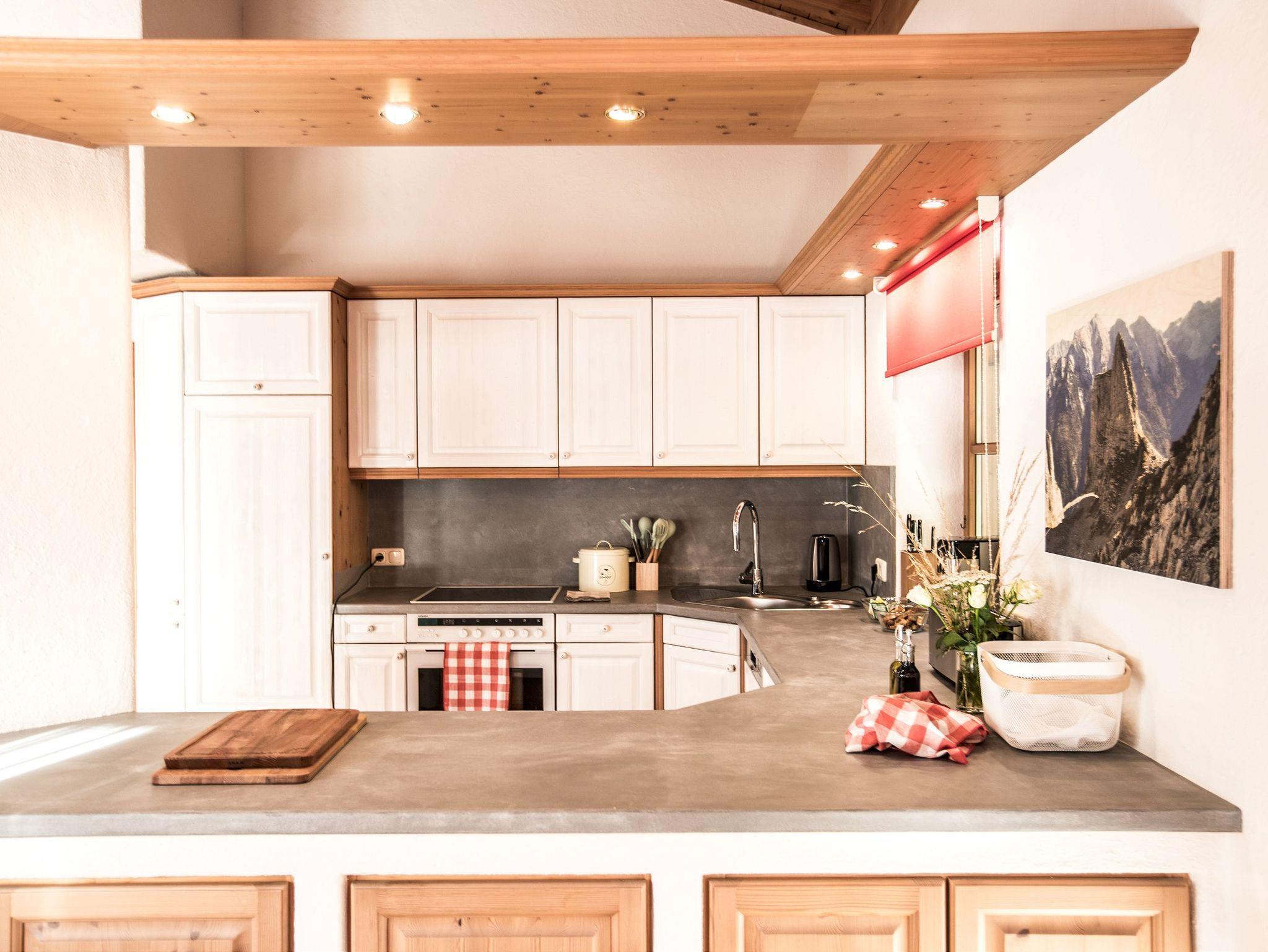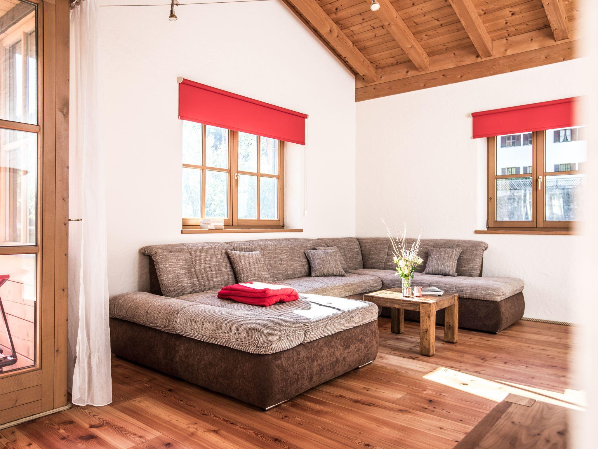 Das Berg - Loft Ramsau: Komfort für Ihren Urlaub im Berg - Loft für 1 - 6 Personen. Das „Berg - Loft“ ist eine Komfort-Ferienwohnung im 1. Stock und bietet mit 2-3 Schlafzimmern und einer Größe von 130-170 qm viel Platz für bis zu 6 Personen. Die Ferienwohnung für bis zu 6 Personen ist aufgeteilt in: • Wohnbereich mit großer Wohnlandschaft, Couchtisch, TV mit Radio, Bluetooth Lautsprecher, W-LAN Internetzugang • Holz beheizter Kachelofen mit kleiner Ofenbank und Lesetisch • Balkon mit Freisitz und Abendsonne (Bergblick) • Essbereich mit großem Esstisch und 6 Stühlen • Küchenbereich, Küche komplett ausgestattet mit 4-Platten-Kochfeld, Backrohr, Dunstabzug, Mikrowelle, Spülmaschine, Kühlschrank mit Gefrierfach, Filterkaffeemaschine, Espressokocher, Kapselmaschine, Milchschäumer, Toaster, Wasserkocher • 3 Schlafzimmer mit je einem Doppelbett (180x200) komplett ausgestattet inkl. Bettwäsche, einmal mit Balkon (Ostseite mit Morgensonne). • Bad mit Waschbecken, Bad Schrank, Dusche, WC, Fön, Handtücher • Großer Abstell- und Trockenraum mit Waschmaschine • Gästeparkplatz • Liegewiese. Für Ihre Wertsachen ist ein Zimmersafe vorhanden. Haustiere können nicht mitgebracht werden. Nichtraucherwohnung.