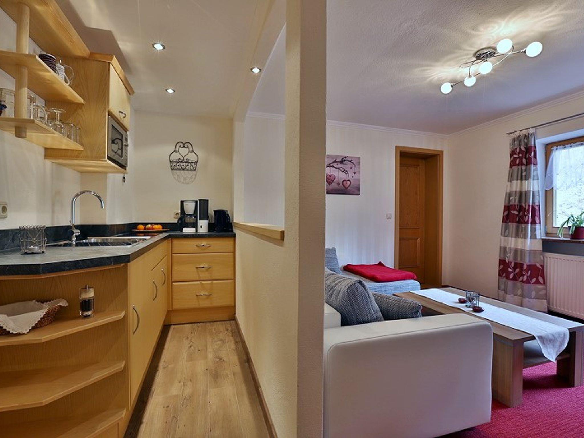 Haus Almfrieden, 2-Zimmer Romantik-Appartement mit Bergblick, 2-3 Personen, 45 qm, Balkon, Küche