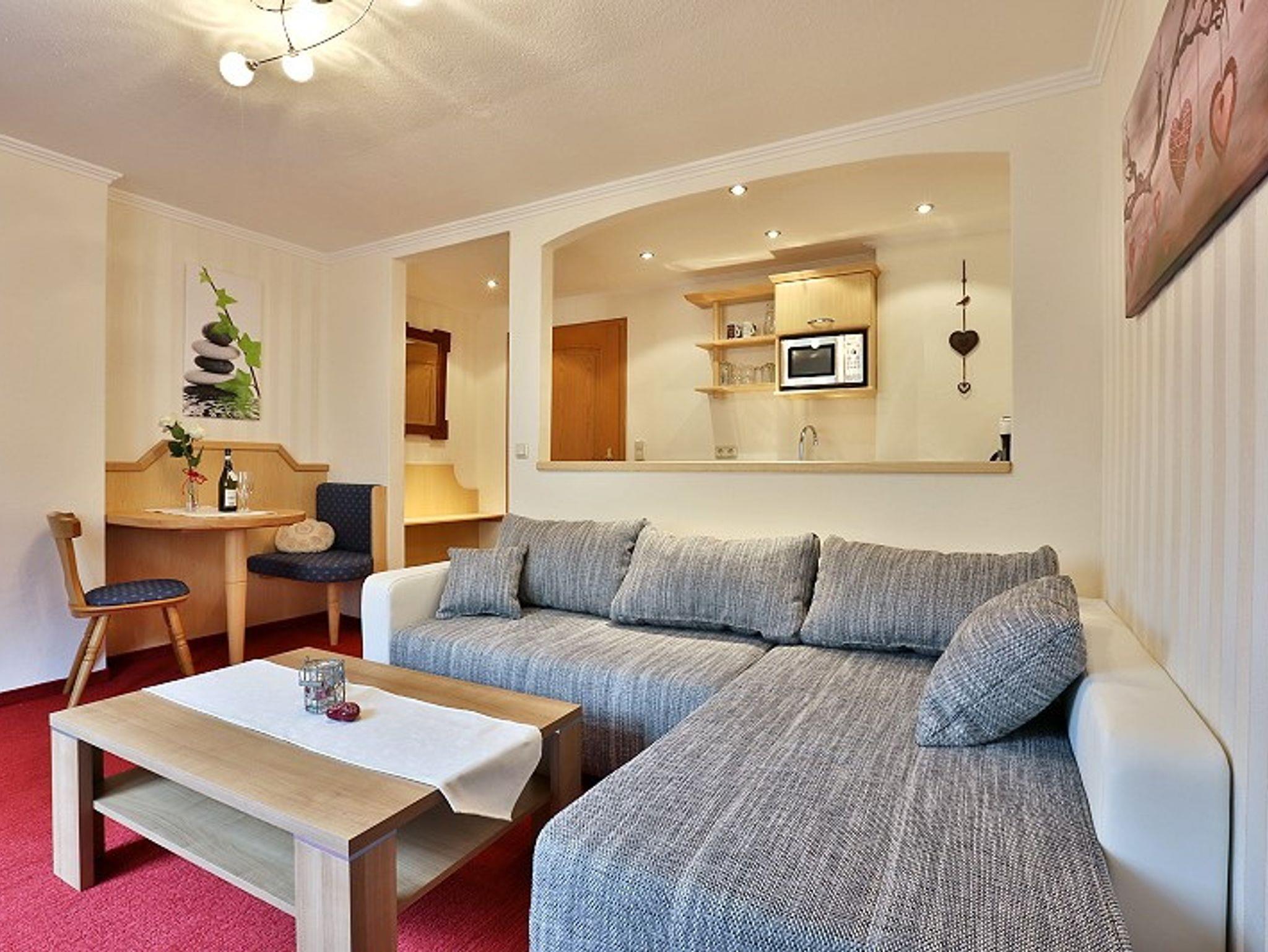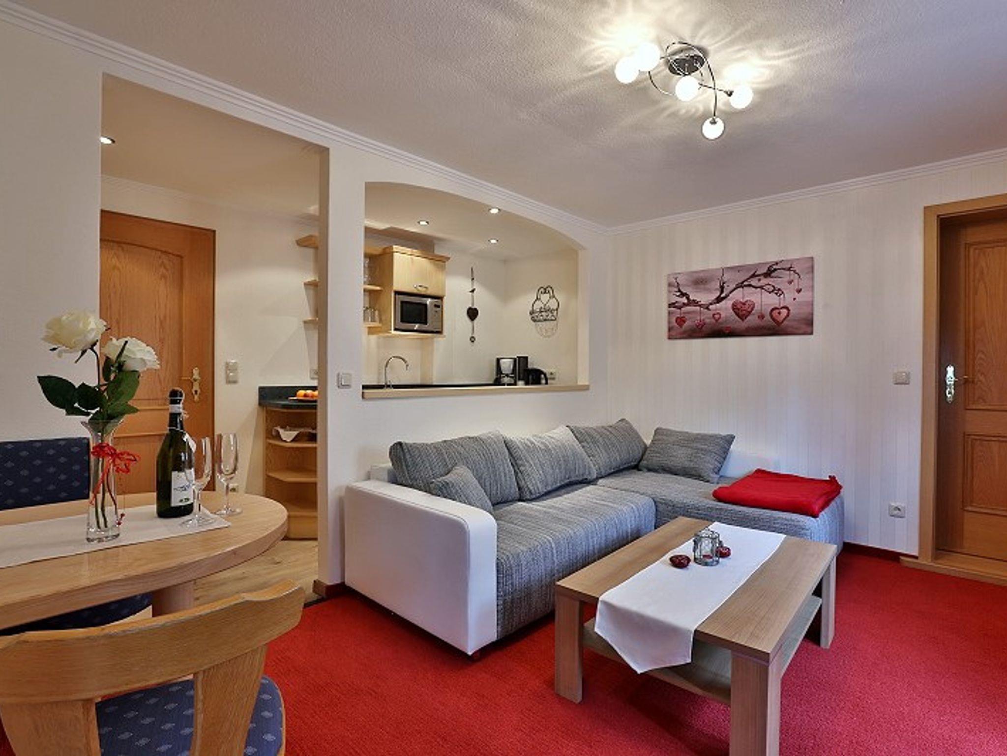 Unser großzügiges 2-Zimmer-Romantik-Appartement wurde hochwertig renoviert und neu gestaltet. Es bietet Ihnen von den beiden Balkonen (Süd-Ost) einen traumhaften Blick auf die Ramsauer Berge. Das Wohnzimmer verfügt über eine große, gemütlichen Sitzcouch mit Schlafgelegenheit für 1 Person, Flachbildschirm mit Sat-TV, einen Esstisch sowie eine Garderobe. Im separaten Schlafzimmer erwartet sie ein Doppelbett, ein Ganzkörperspiegel sowie ein weiterer Flachbildschirm mit SAT-TV. Das neue Badezimmer ist mit Dusche/WC, Kosmetikspiegel, Haarfön und Handtuchwärmer ausgestattet.