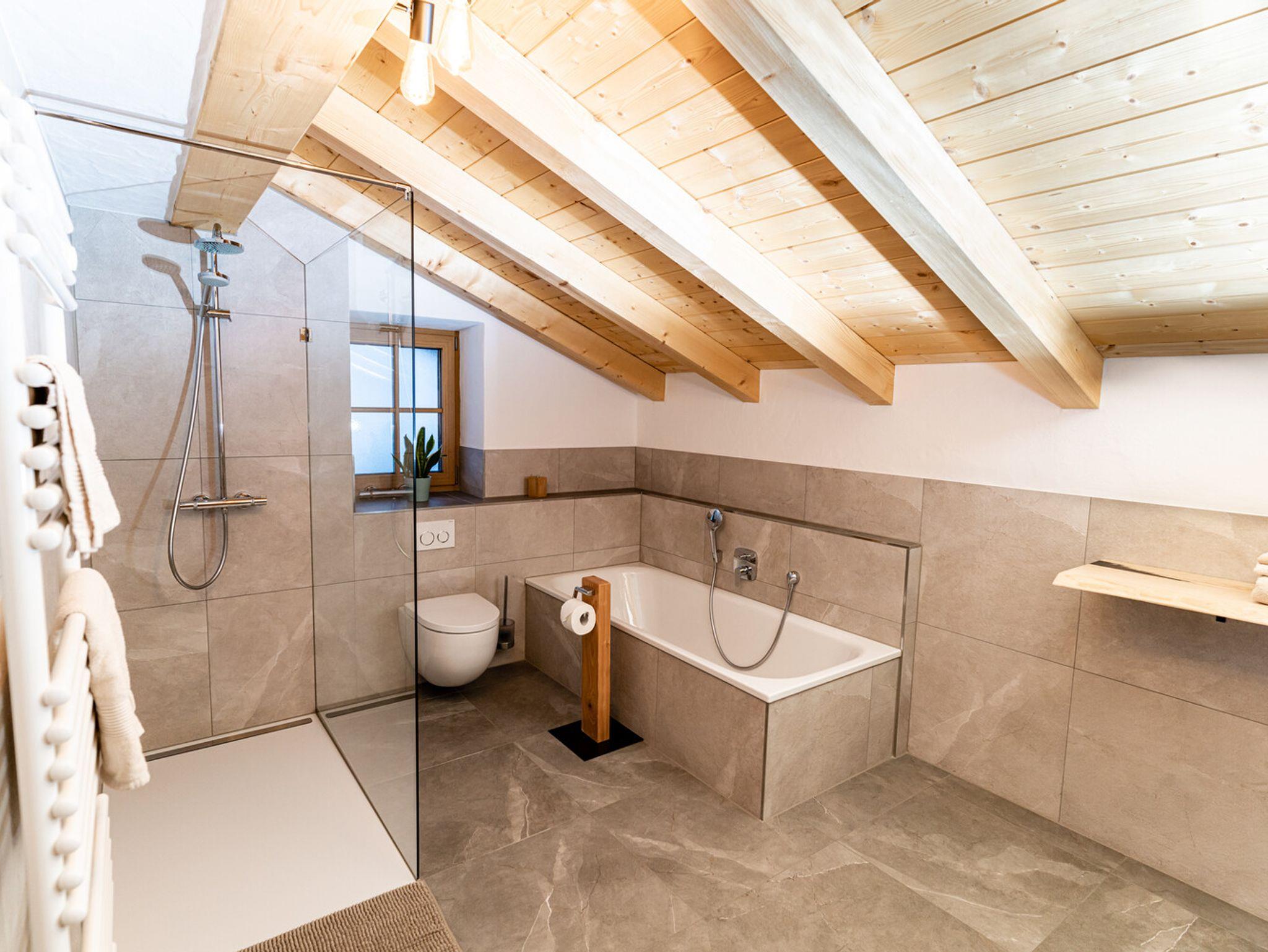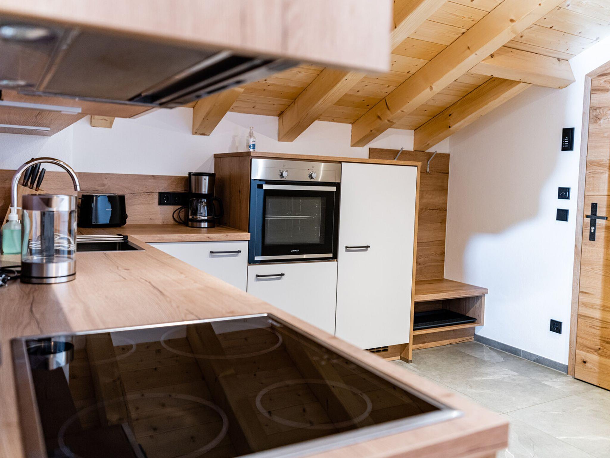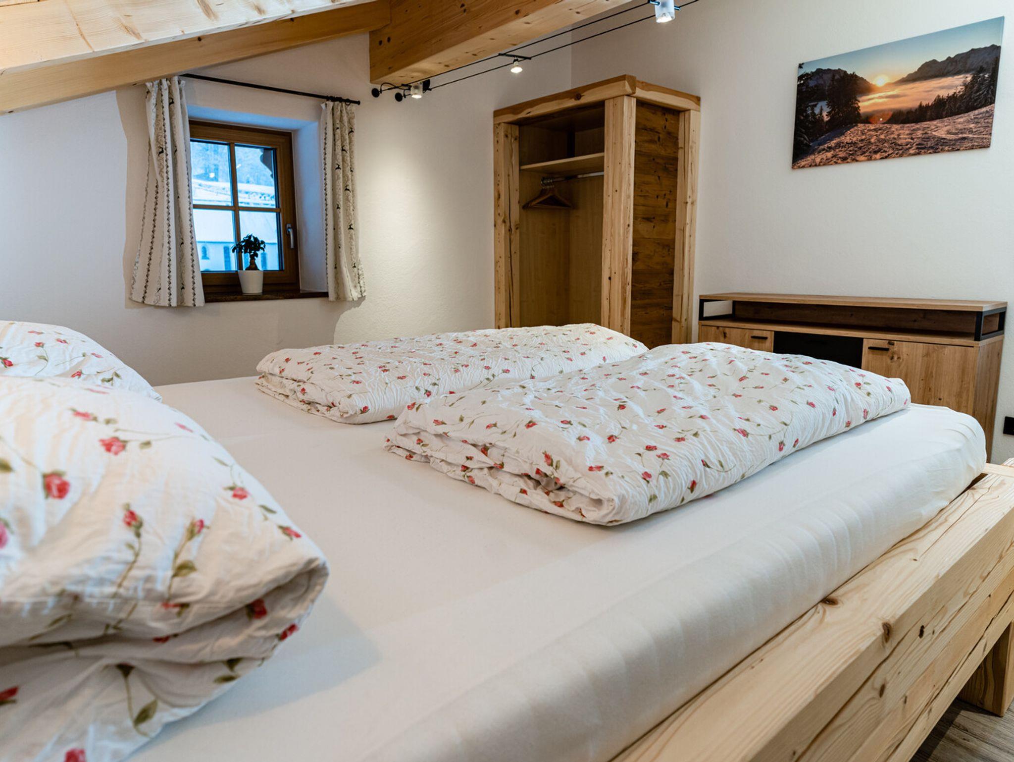 Die Ferienwohnung 'Beim Sepperl' befindet sich im 2. Stock mit Sichtdachstuhl, angenehmer Raumhöhe und möbliertem Balkon mit wunderschönem Ausblick zur Pfarrkirche St. Sebastian. Voll ausgestattete Küche mit Geschirrspüler und Essbereich. Separates Schlafzimmer mit Doppelbett und ein Wohn- / Essbereich mit ausziehbarem Schlafsofa und TV. Fußbodenheizung in der kompletten Wohnung und Badezimmer mit großer Regendusche und Badewanne. Parkplatz direkt am Haus, abschließbarer Abstellraum für Fahrräder, Ski, Schlitten, etc.