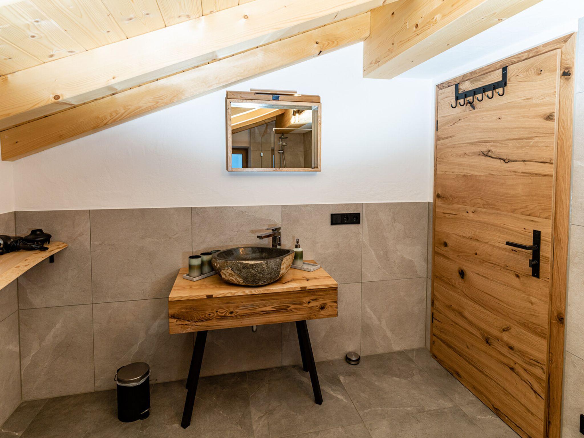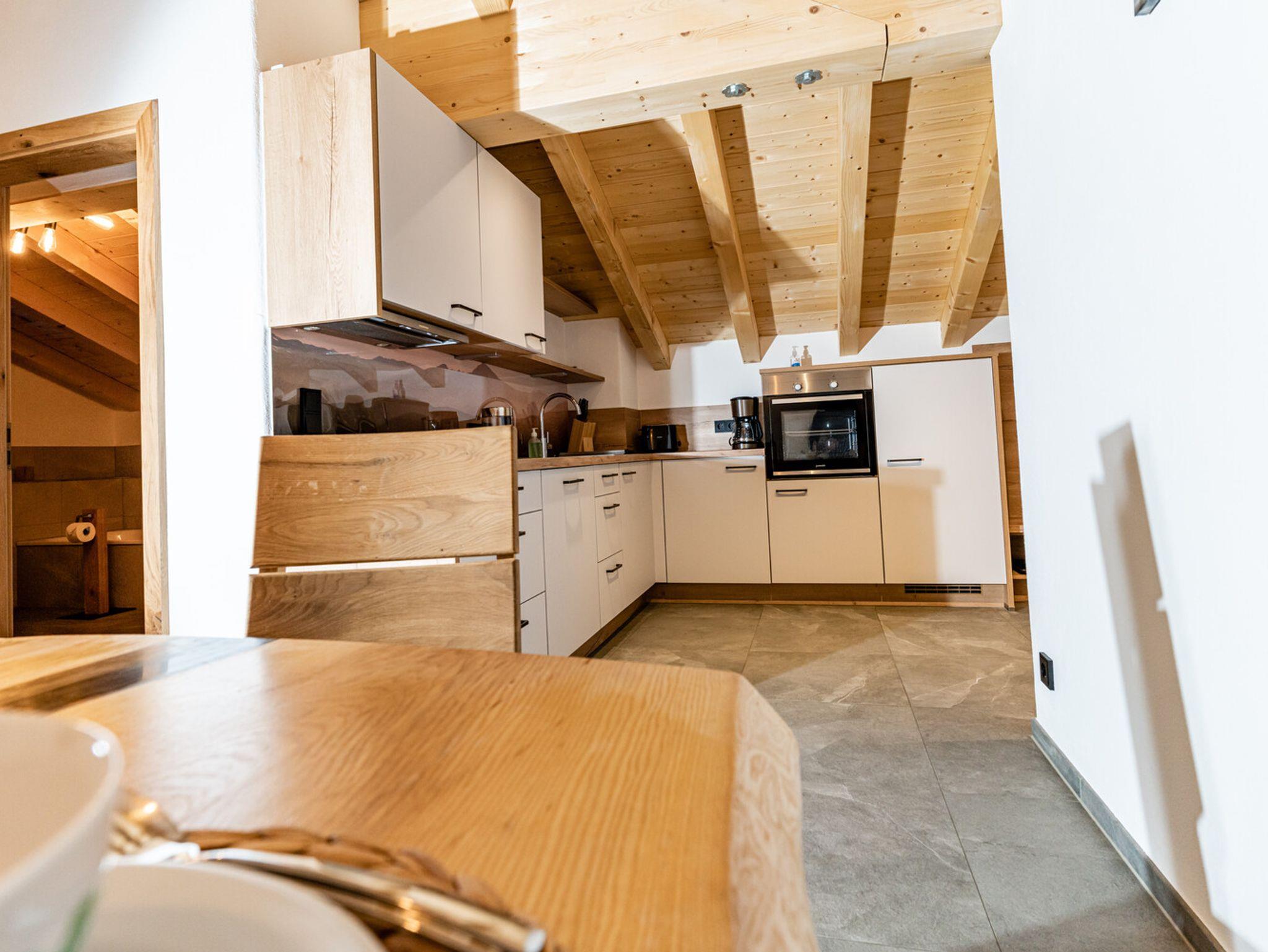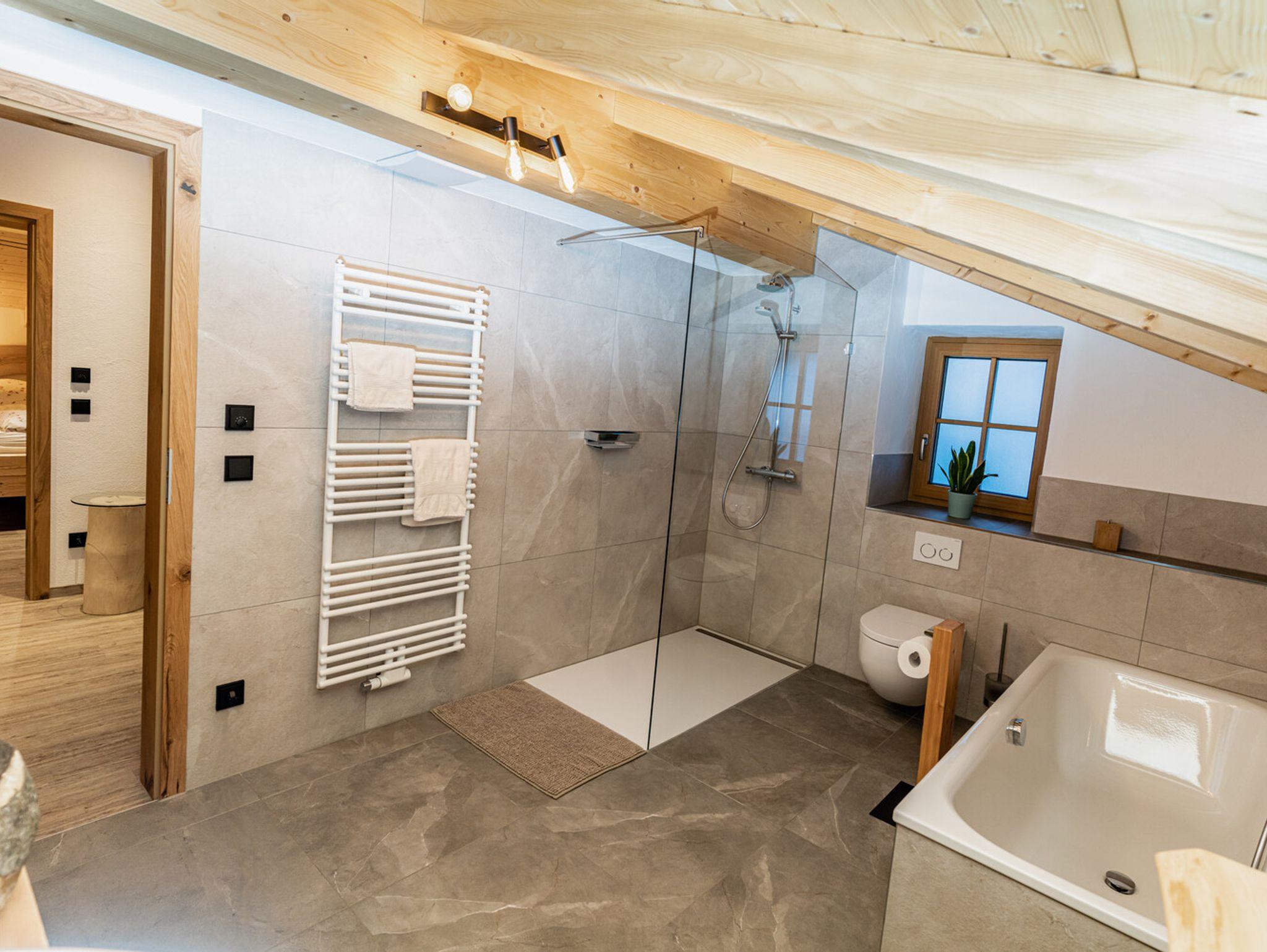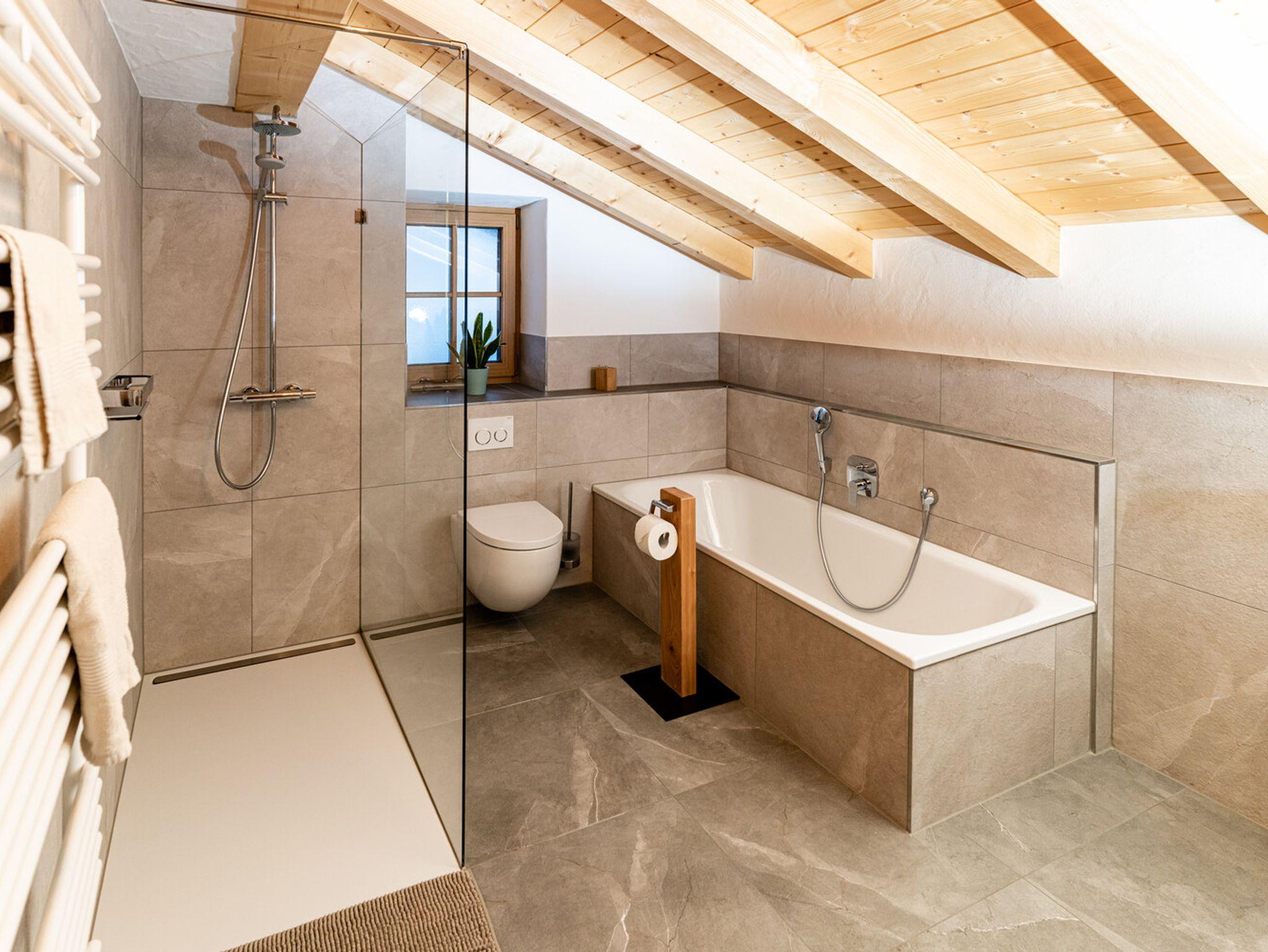 Die Ferienwohnung 'Beim Sepperl' befindet sich im 2. Stock mit Sichtdachstuhl, angenehmer Raumhöhe und möbliertem Balkon mit wunderschönem Ausblick zur Pfarrkirche St. Sebastian. Voll ausgestattete Küche mit Geschirrspüler und Essbereich. Separates Schlafzimmer mit Doppelbett und ein Wohn- / Essbereich mit ausziehbarem Schlafsofa und TV. Fußbodenheizung in der kompletten Wohnung und Badezimmer mit großer Regendusche und Badewanne. Parkplatz direkt am Haus, abschließbarer Abstellraum für Fahrräder, Ski, Schlitten, etc.
