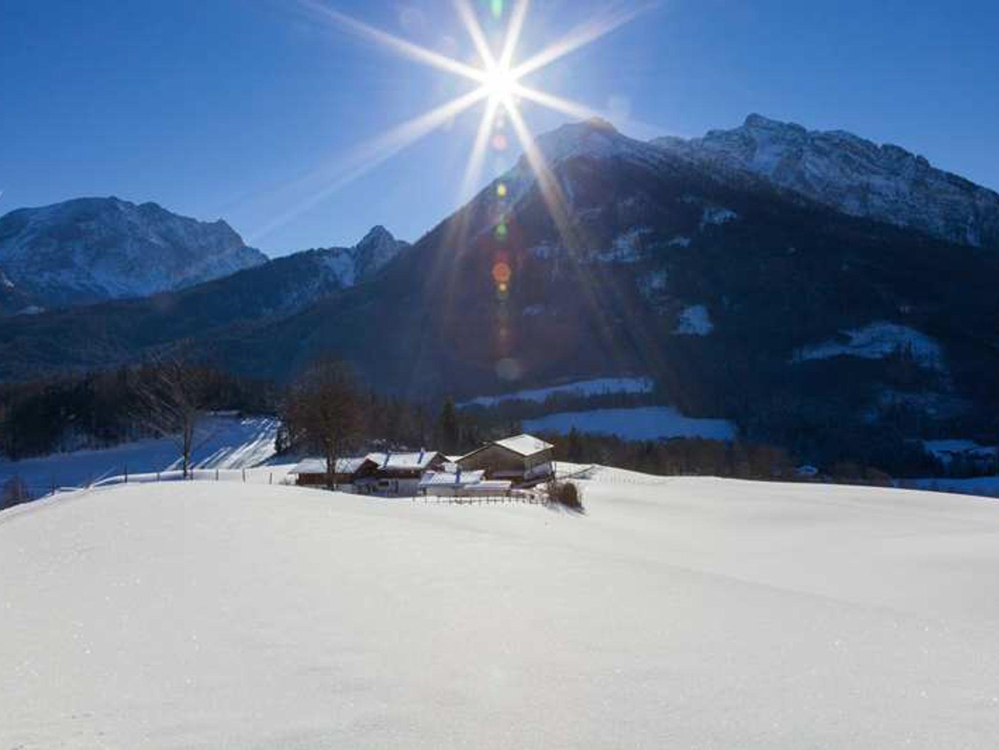Unser Biobergbauernhof liegt oberhalb des Bergsteigerdorfes Ramsau auf der Sonnenseite, mit Blick über herrlichen Wiesen und auf die Bergkulisse des Nationalparks Berchtesgaden. Idealer Ausgangspunkt für Wanderungen mit Almerlebnis und hochalpine Touren mit Gipfelglück. Auch im Winter gut erreichbar. Zum Skigebiet Hochschwarzeck 5 Minuten mit dem Auto. Langlaufloipe in der Nähe. Gäste für eine Nacht willkommen.