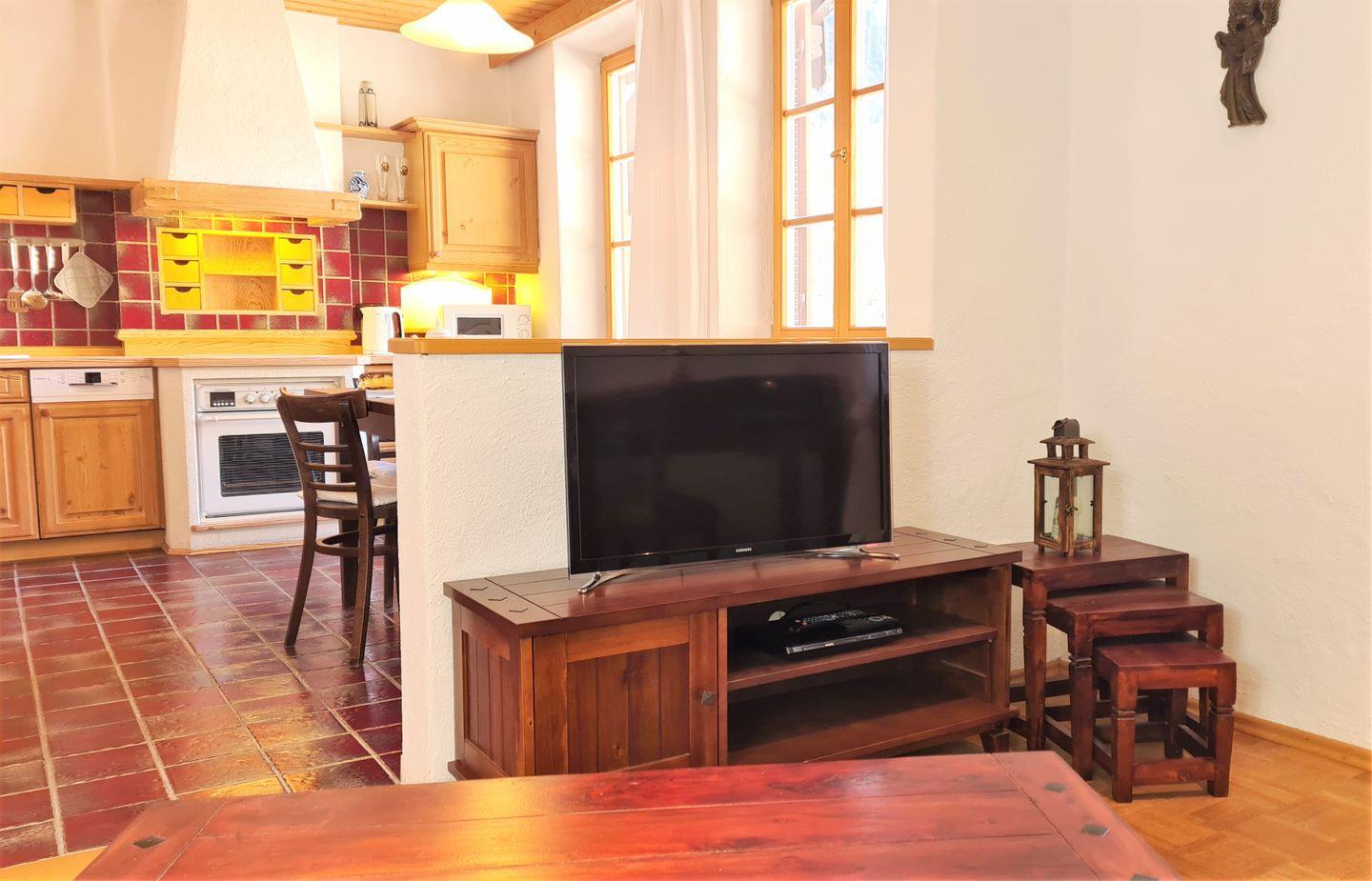 Die Ferienwohnung befindet sich im Ortszentrum von Ramsau bei Berchtesgaden. Der Wohnbereich mit gemütlicher Couch und Flatscreen ist zu Küche und Essbereich offen gestaltet, aber dennoch optisch getrennt. Das separate Schlafzimmer ist neu eingerichtet und die hochwertigen Betten sind mit verstellbaren Lattenrosten ausgestattet. Im Badezimmer befinden sich sowohl Dusche als auch Badewanne. Der Balkon mit Blick auf die Berge lädt zum Verweilen ein. Ihr Hund ist willkommen!
