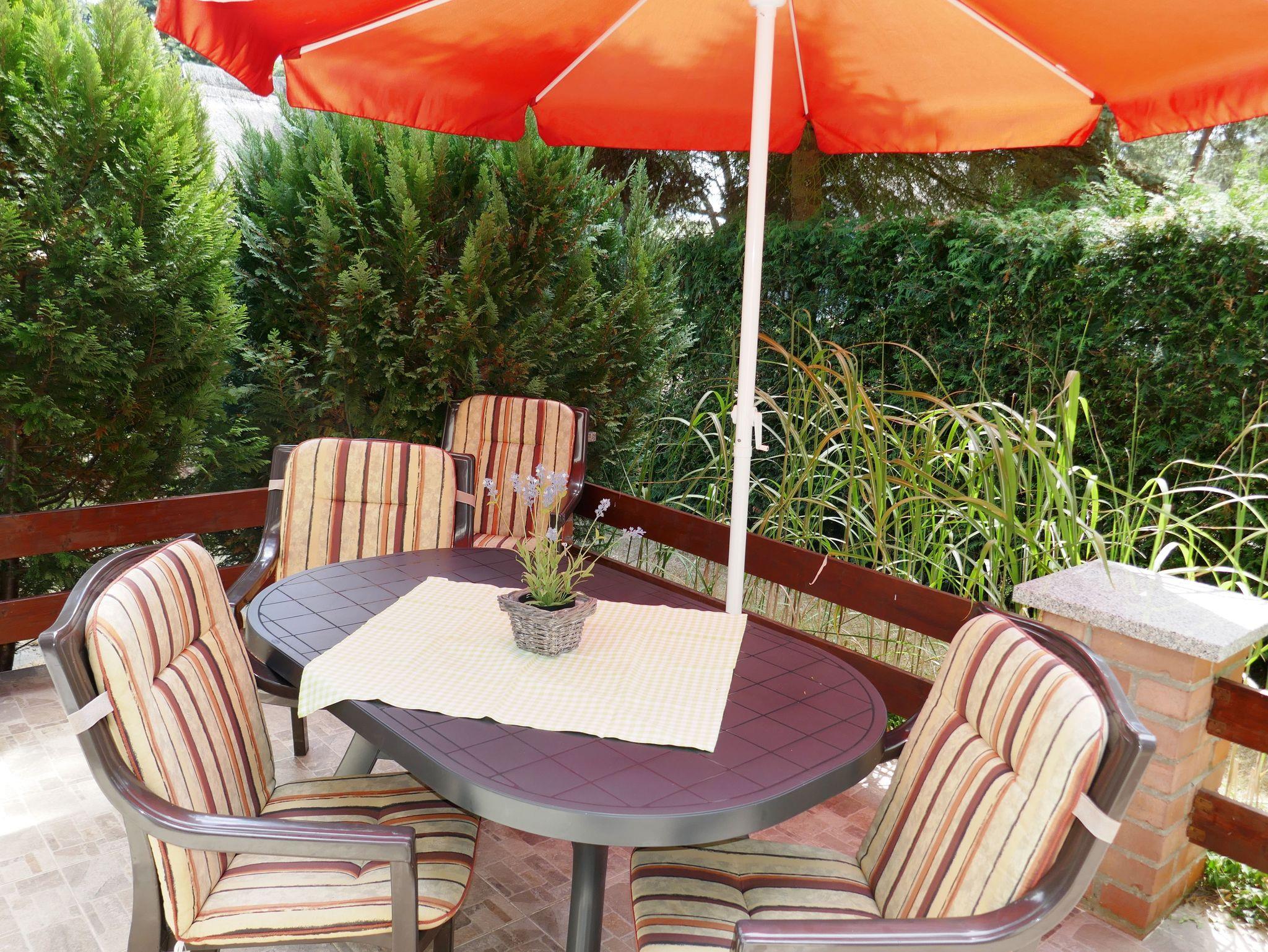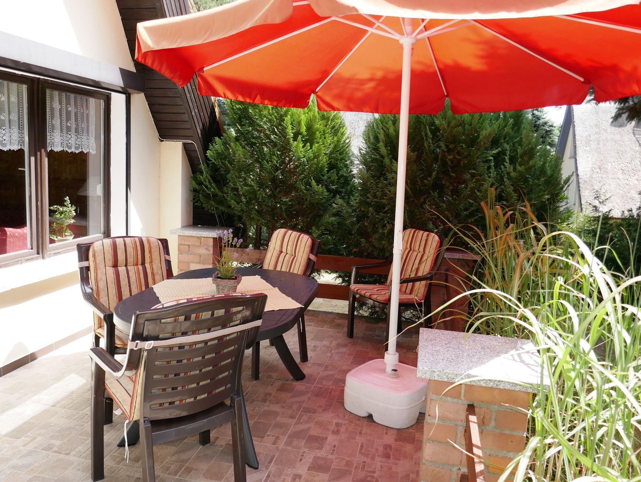 Zum Grillen können Sie gern den Elektrogrill auf der möblierten Terrasse nutzen.