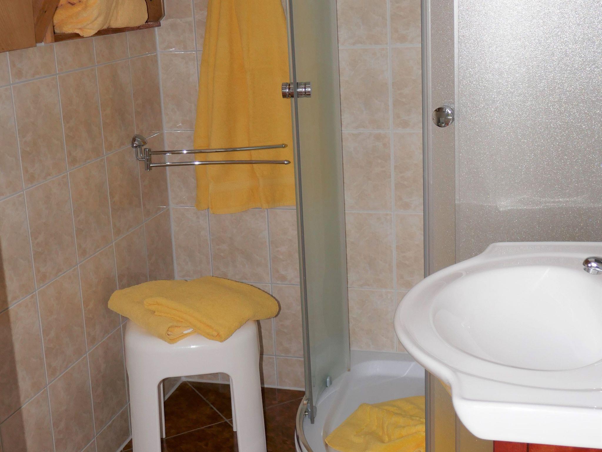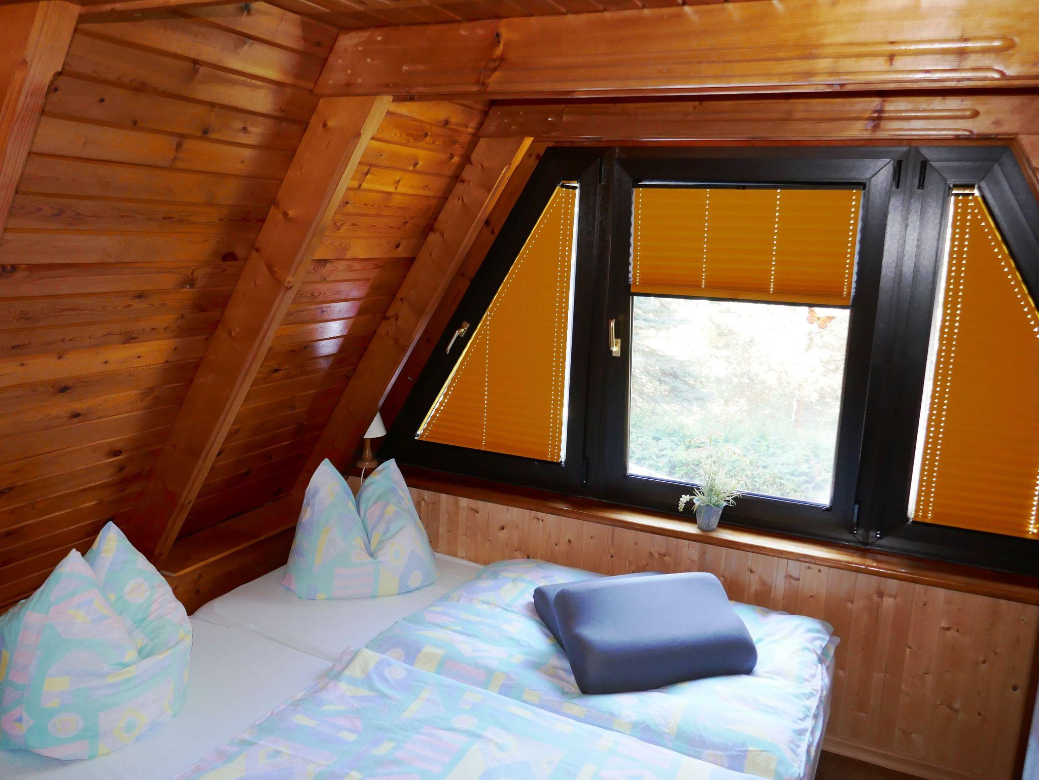 2 Schlafräume befinden sich im Obergeschoß, einmal mit zwei zusammenstehenden Betten und einmal mit zwei getrennt stehenden Betten (Größe 90x200 und 2 mit 75x180).