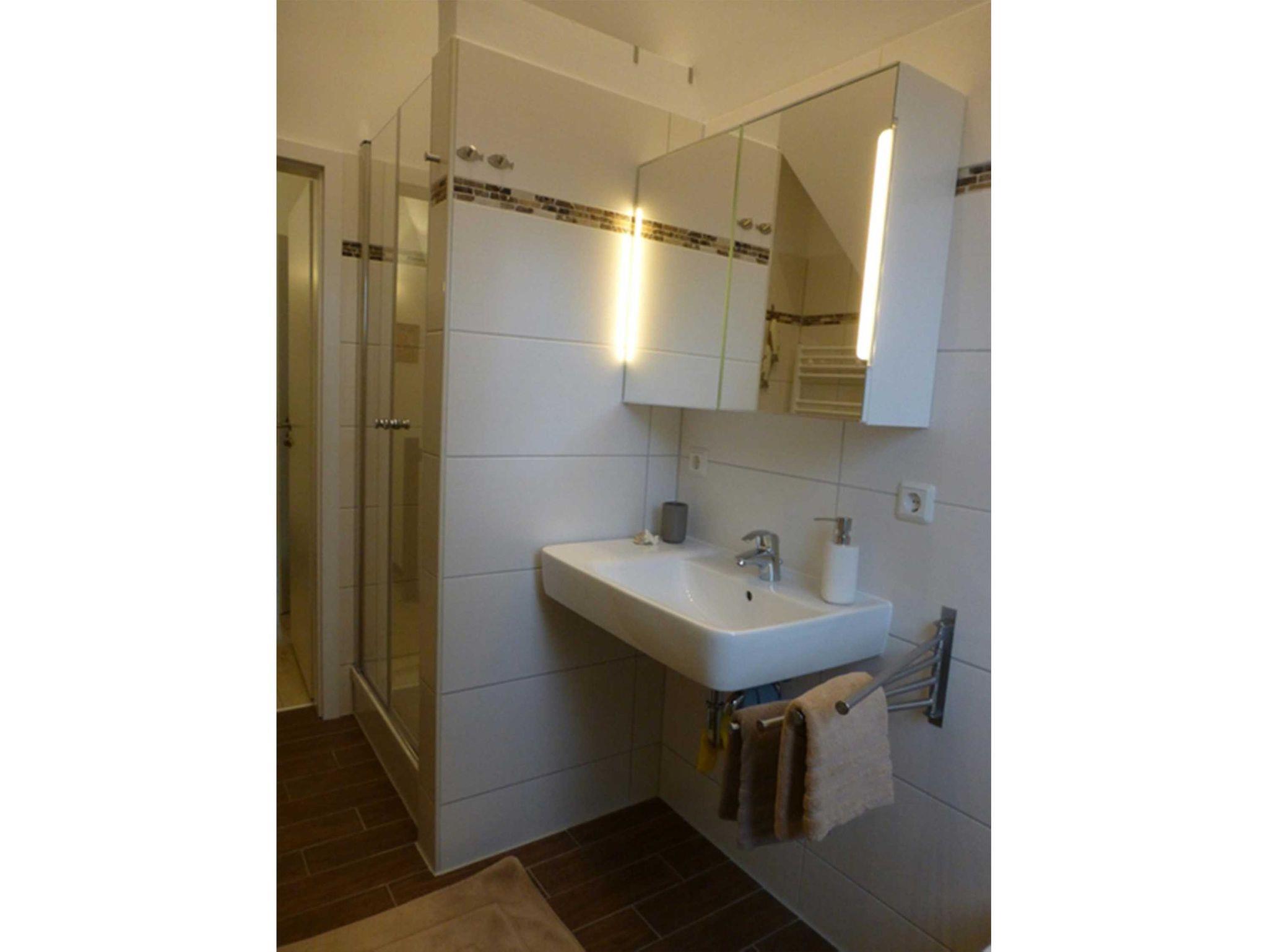 Das moderne Bad verfügt über: