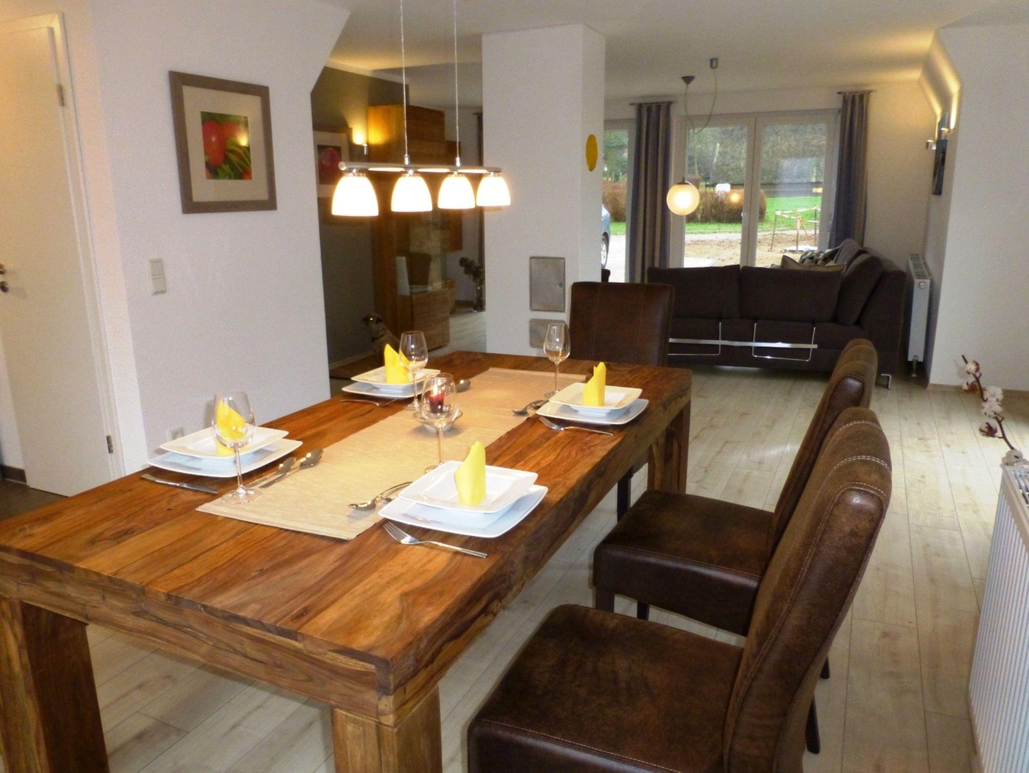 Im großzügigen Wohn- und Essbereich erwarten Sie hochwertige Massivholzmöbel und eine warme, einladende Atmosphäre: