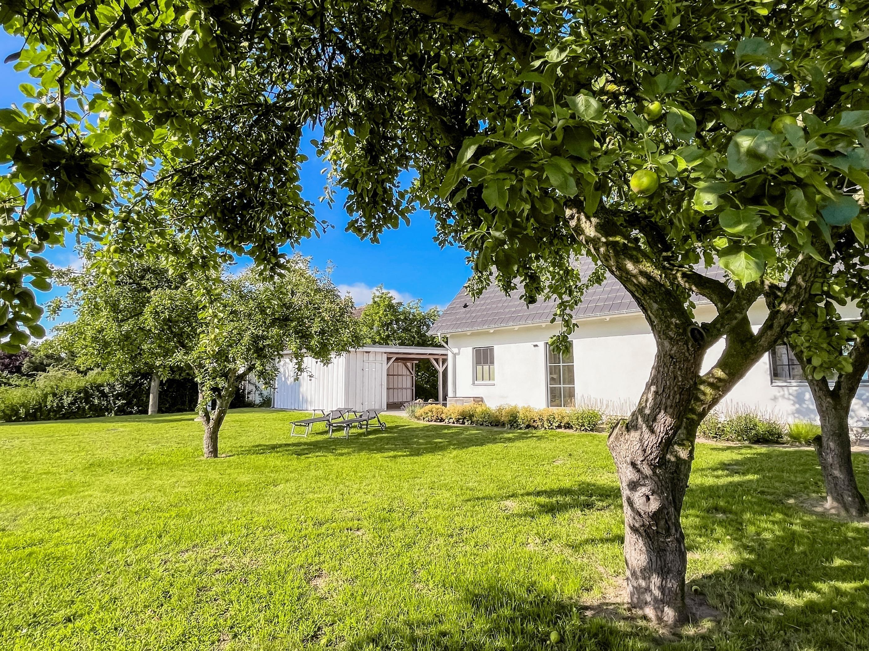 Der weitläufige Garten mit liebevoll angelegten Bereichen lädt zum Entspannen ein.
