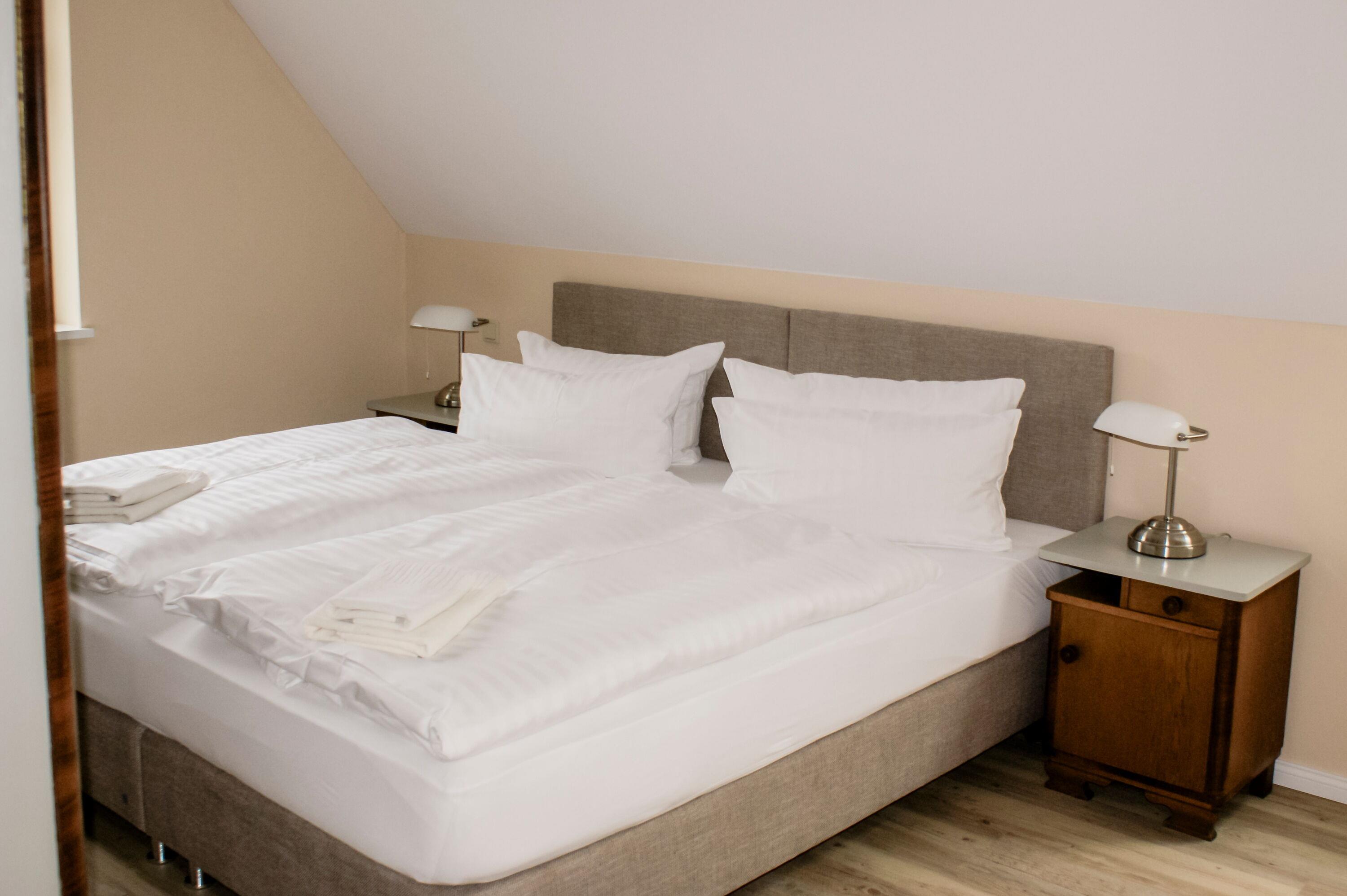 1 Schlafzimmer mit großem Doppelboxspringbett