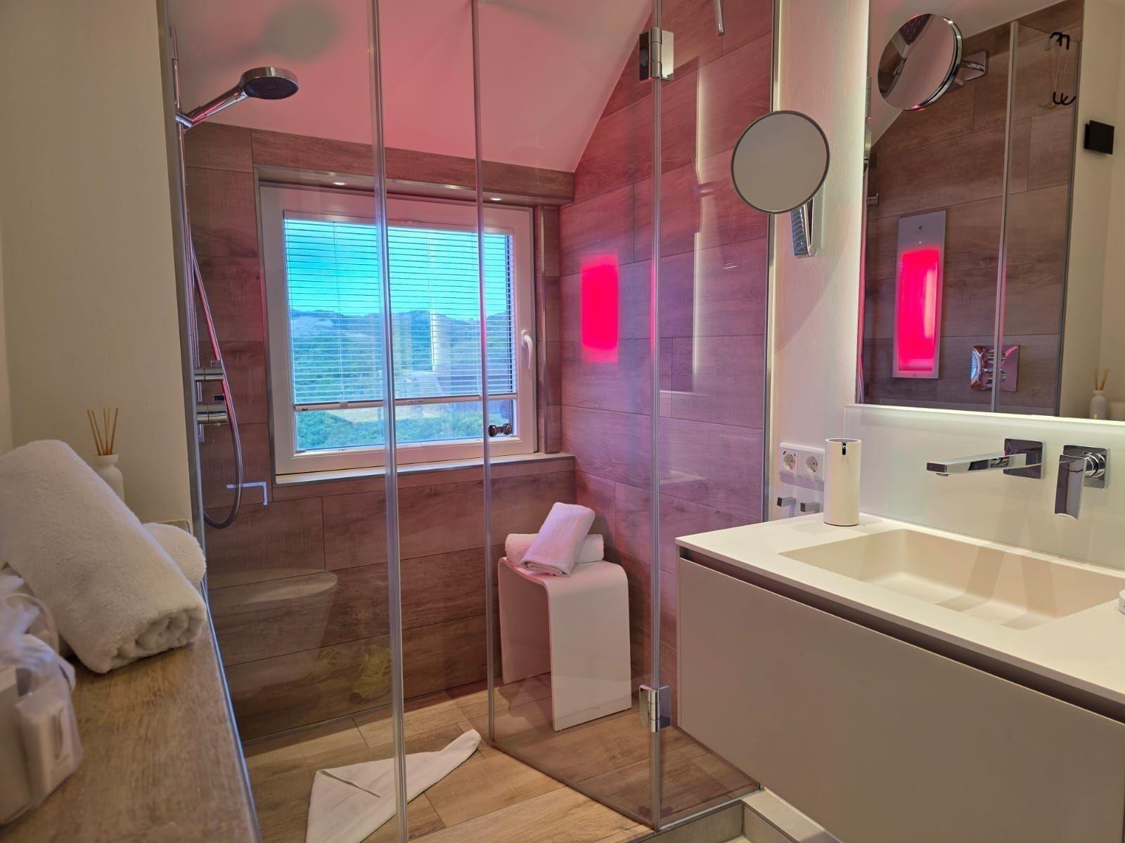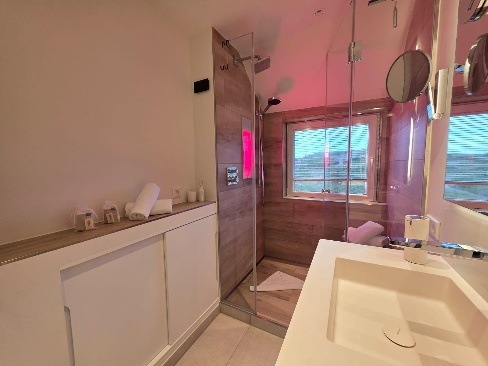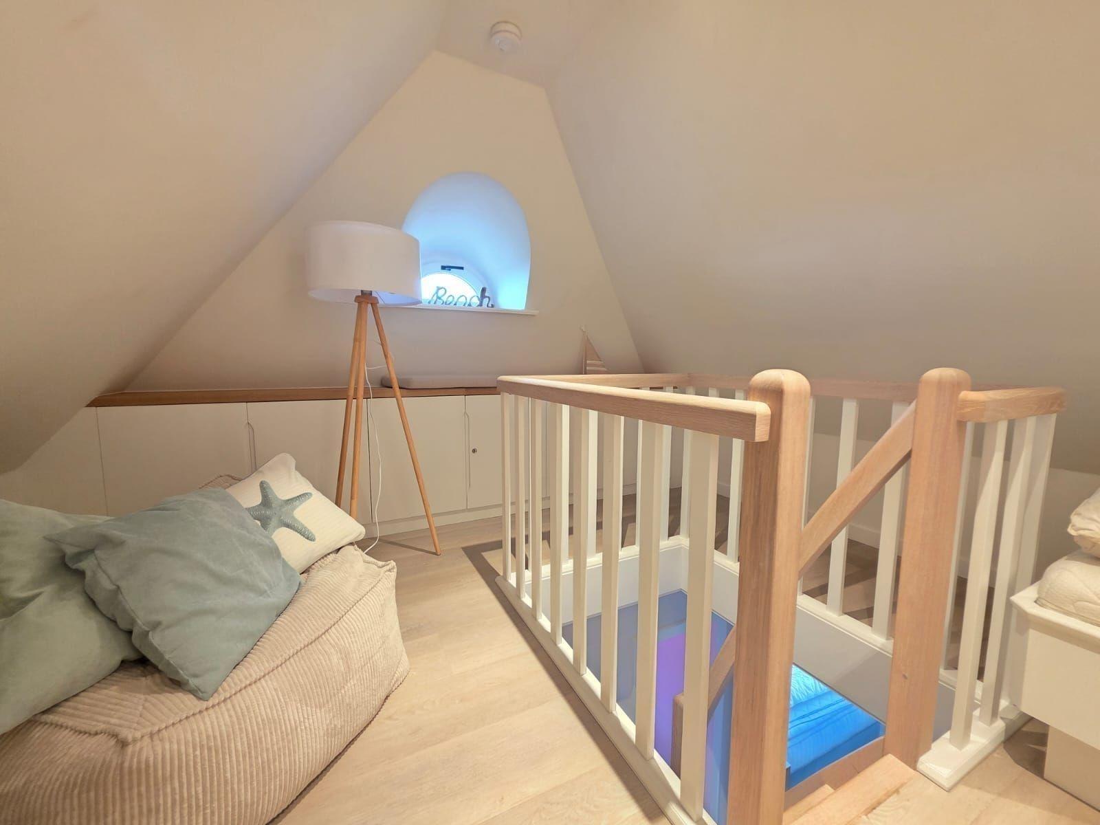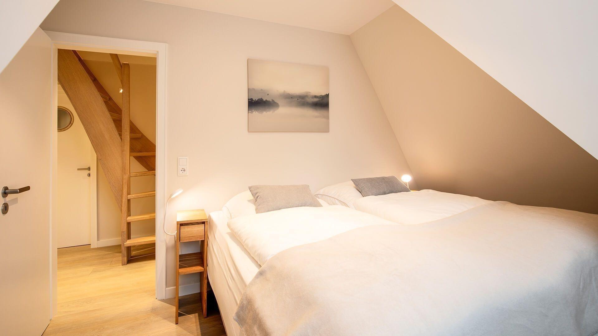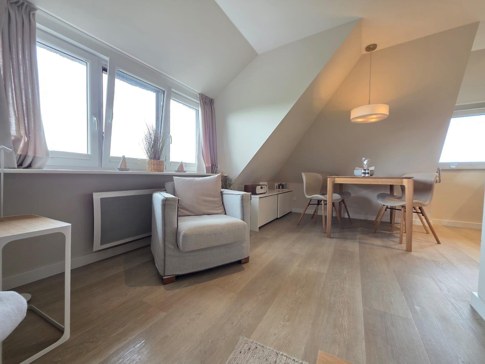 Die Ferienwohnung bietet ein modernes und einladendes Ambiente für erholsame Tage. Sie verfügt über zwei Schlafzimmer, eines mit einem komfortablen Doppelbett und das andere mit zwei Einzelbetten. Die offene Küche ist mit hochwertigen Geräten wie einem Geschirrspüler, Elektro-/Gasherd, Backofen und Kühlschrank ausgestattet, um das Kochen zu einem Vergnügen zu machen. Für die kleinen Gäste steht ein Kinderhochstuhl bereit. Das Badezimmer ist mit einer bodengleichen Dusche und einem Fenster ausgestattet, außerdem sorgt ein Haartrockner für zusätzlichen Komfort.