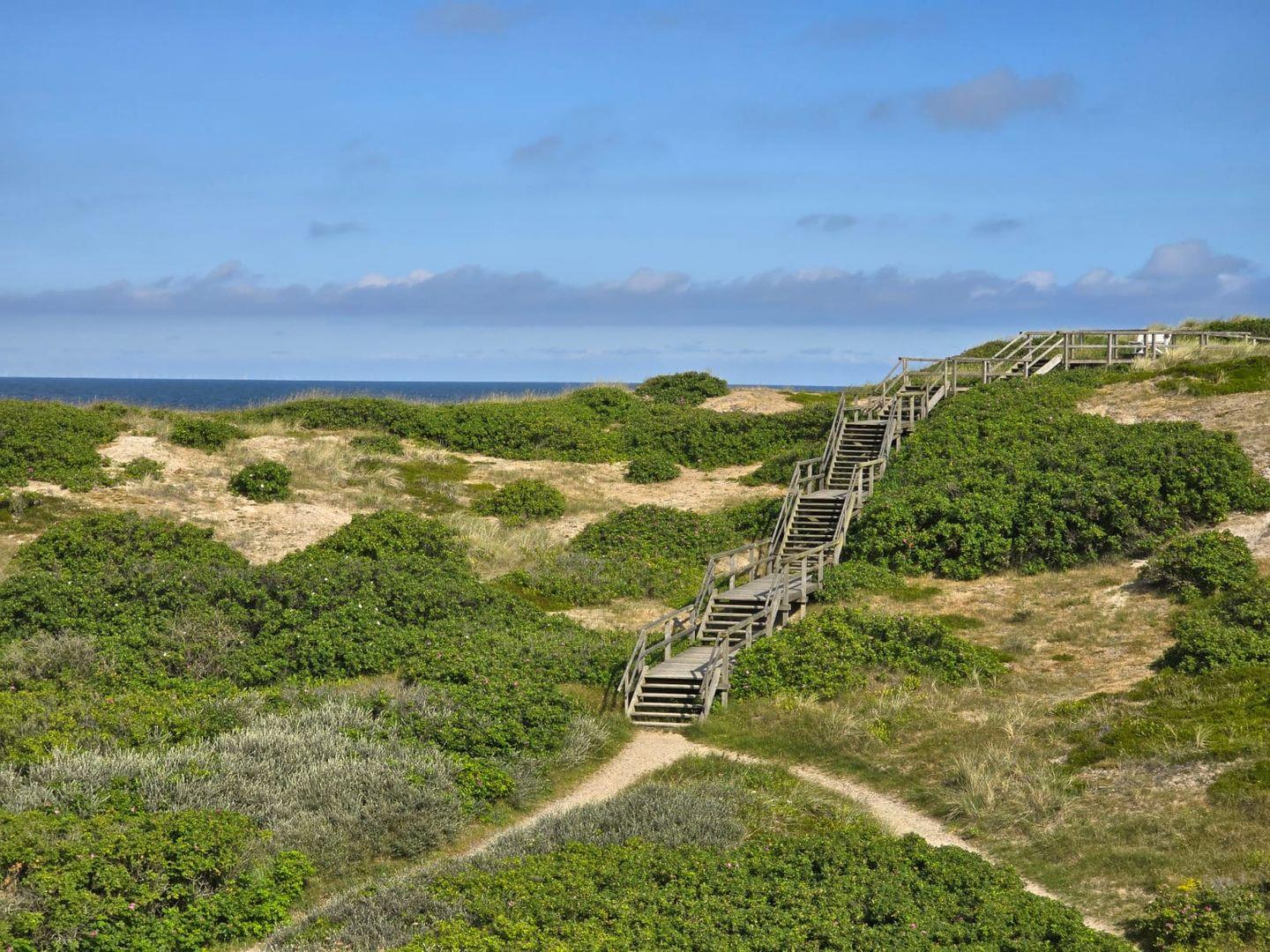 Keine 100 m entfernt befindet sich der Weststrand. Sie gehen einmal um das Haus, zwischen den Dünen über den Holzsteg und schon sind Sie direkt am Meer, das beruhigende Meeresrauschen ist stets bei Ihnen. Mehr Sylt geht nicht.