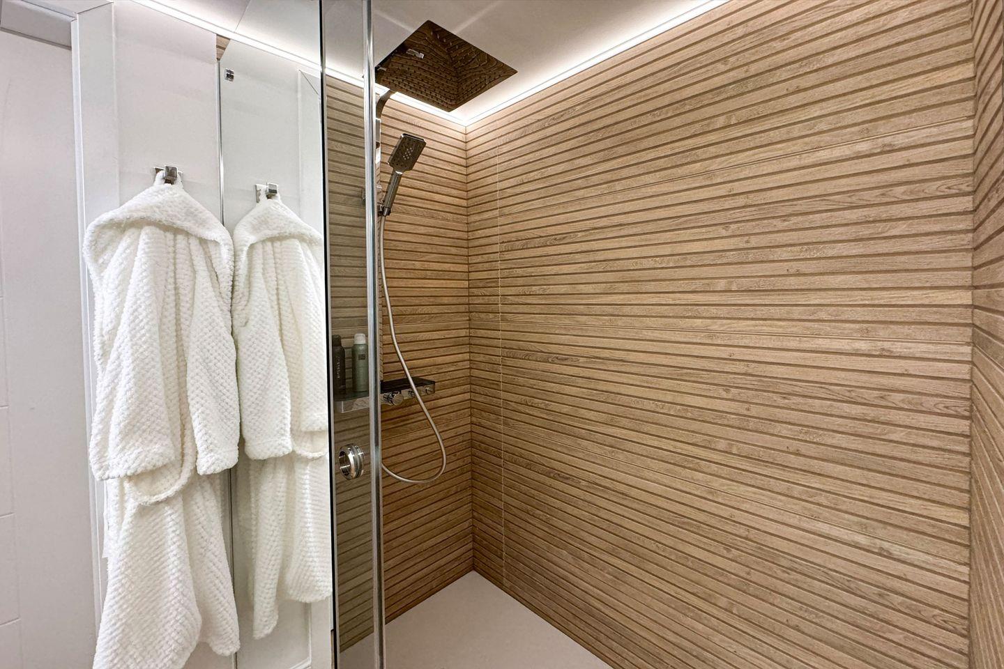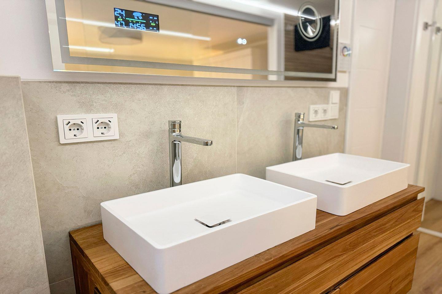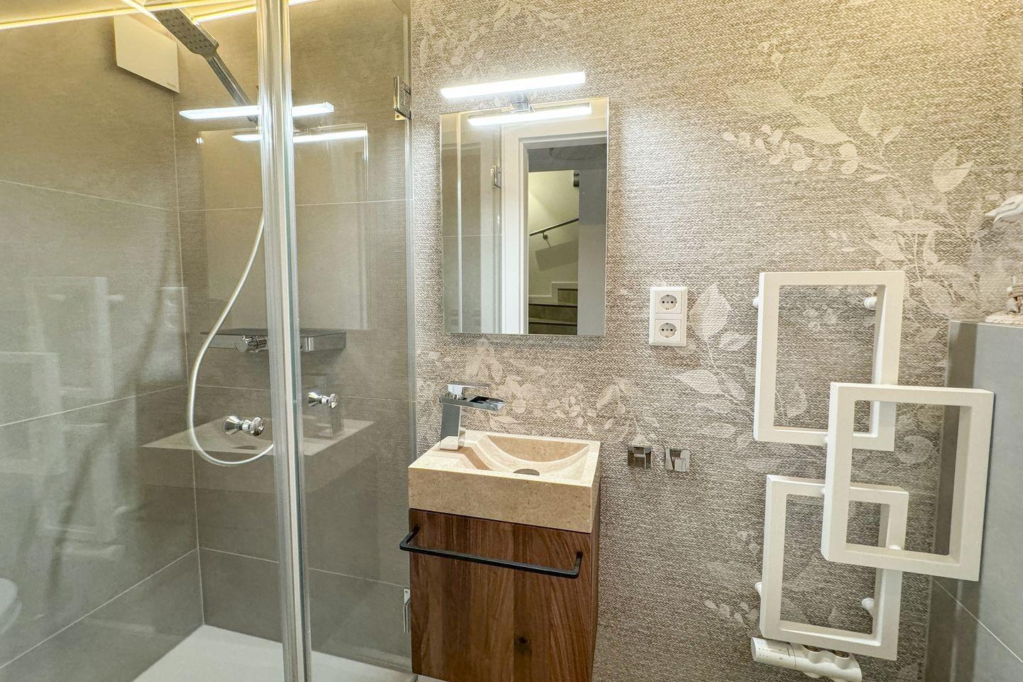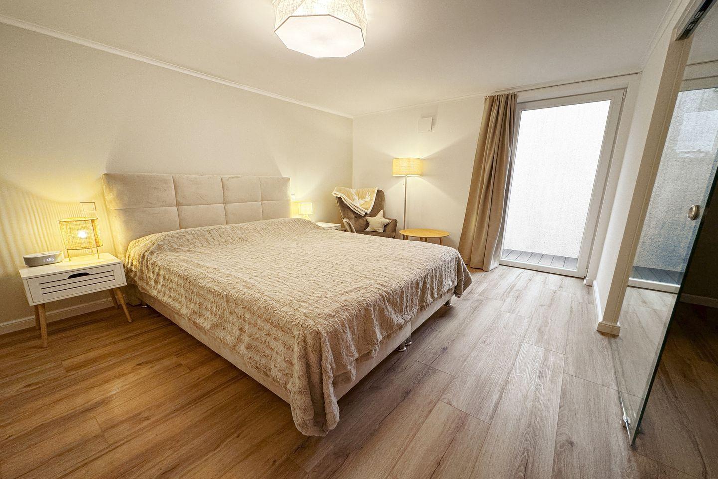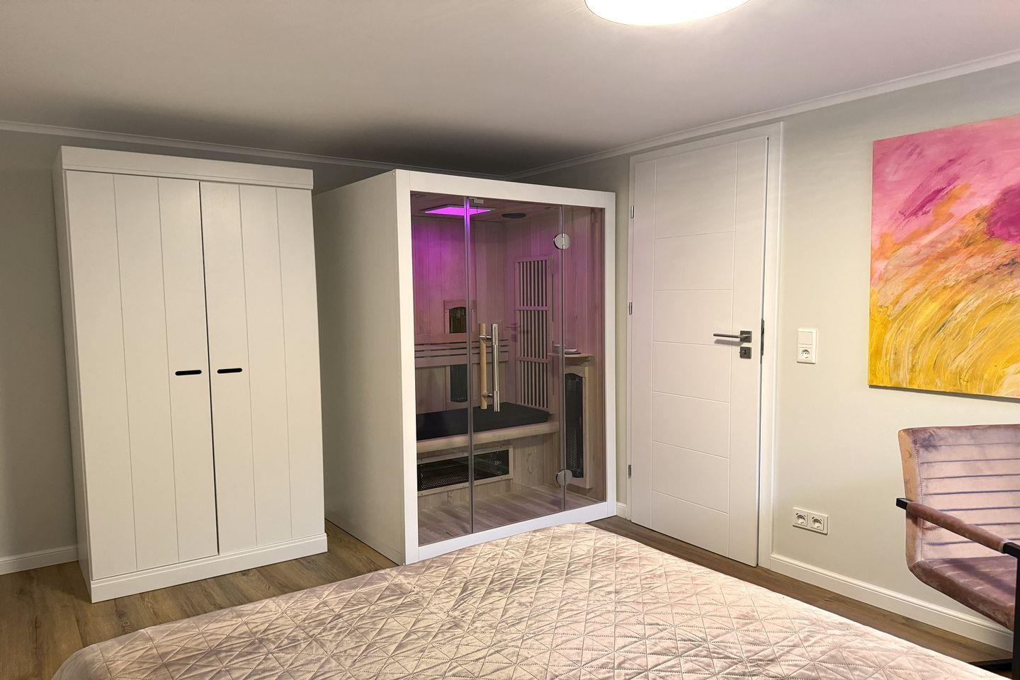 Im Untergeschoss befindet sich das stilvoll eingerichtete Hauptschlafzimmer, das direkt an ein modernes Bad angrenzt. Ein besonderes Highlight ist die Infrarotkabine, platziert im Durchgangsschlafzimmer, das zusätzlich mit einem weiteren Doppelbett ausgestattet ist und sich ideal für Familie oder Freunde eignet. Die Infrarotkabine bietet nicht nur entspannende Wärme, sondern auch therapeutisches Licht und Musik für Ihr Wohlbefinden. Ein 2. Badezimmer mit einer weiteren Dusche ist ebenfalls im Untergeschoß untergebracht. WLAN vorhanden (Ohne Gewähr)