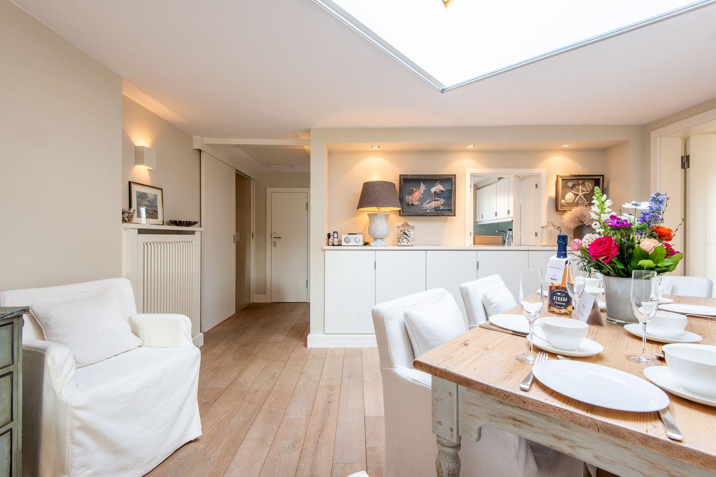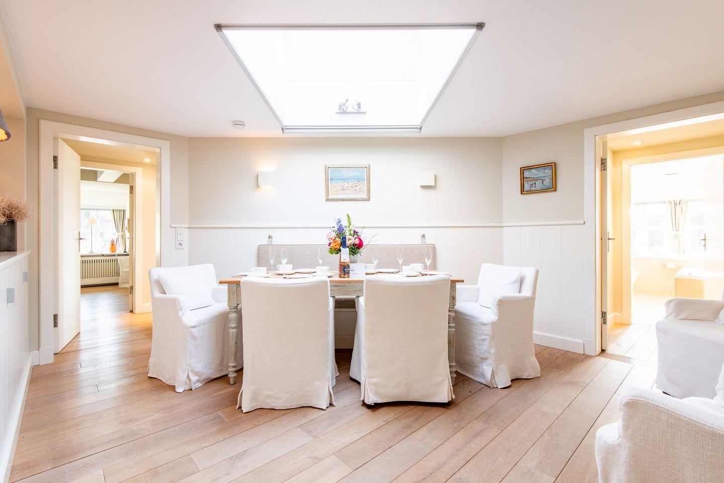 Die separate, gut ausgestattete Küche bietet alles, was das Herz begehrt: Induktionsherd, Elektrobackofen, Mikrowelle, Espressomaschine und Gefrierschrank stehen bereit, um kulinarische Ideen Wirklichkeit werden zu lassen. Zaubern Sie Ihr Lieblingsgericht, brühen Sie sich morgens einen aromatischen Espresso und nehmen Sie anschließend im angrenzenden Essbereich Platz. Durch das Dachfenster fällt sanftes Tageslicht auf den Tisch und schafft eine freundliche, einladende Atmosphäre für lange Frühstücke oder gesellige Dinnerabende.