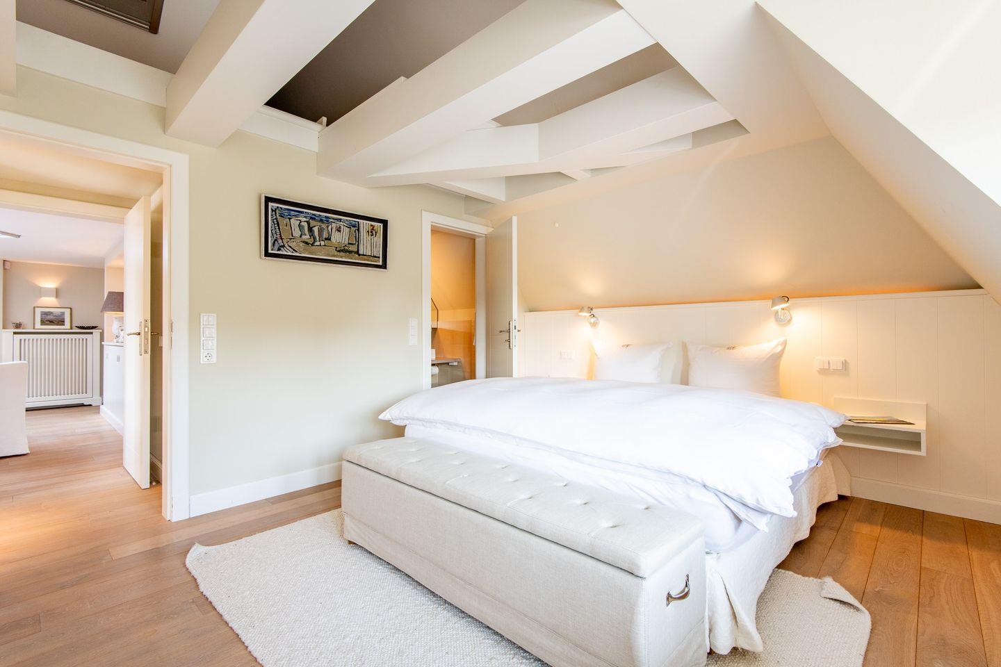 Die drei Schlafzimmer sind wahre Rückzugsorte. Jedes Zimmer ist mit einem komfortablen Boxspringbett (180x200 cm) ausgestattet und verspricht erholsame Nächte nach einem Tag am Meer. Besonders angenehm: Jedes Schlafzimmer verfügt über ein eigenes Bad en suite. So starten alle Gäste entspannt und ungestört in den neuen Urlaubstag. Ein zusätzliches Gäste-WC sorgt für weiteren Komfort.