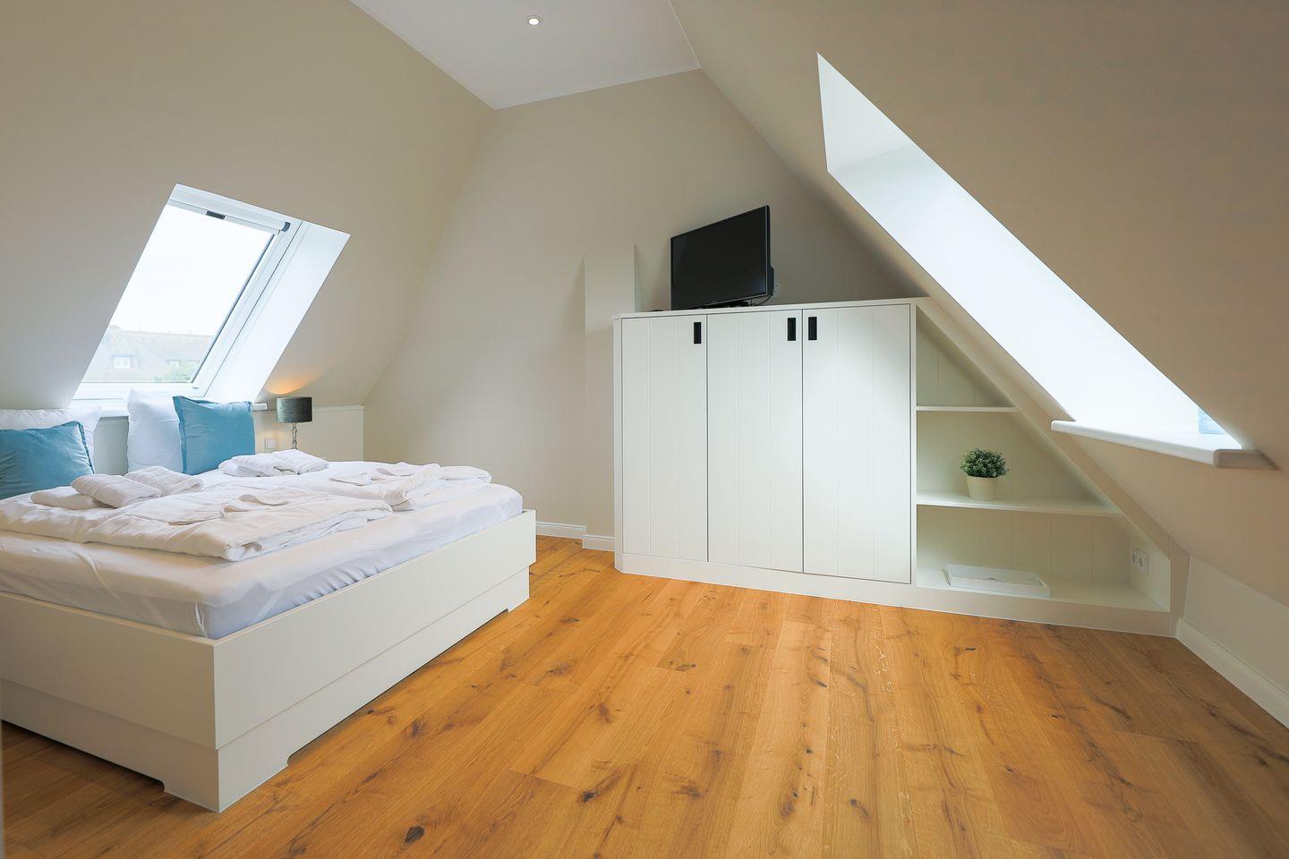 Im Erdgeschoss laden der Wohn- und Essbereich inklusive Kamin, Smart-TV und Internet-Radio zum gemütlichen Beisammensein ein. Die offene Küche setzt nicht nur mit ihrer Ausstattung (u.a. Nespresso-Maschine, BORA-Kochfeld), sondern auch mit ihrer Farbe ein starkes Statement. Eine Terrasse mit Übergang in die Grünfläche bis hin zum Watt bildet das i-Tüpfelchen dieses traumhaften Refugiums. Im Obergeschoss des Hauses befinden sich ein Schlafzimmer mit einem kuscheligen Einbaubett und Smart-TV sowie das helle Duschbad und - nicht zu vergessen: die Sauna, die wie ein Privat-Spa anmutet. Himmlisch weiter geht es im Dachgeschoss, wo sich ein weiteres Schlafzimmer mit Smart-TV und hochwertigem Einbaubett befindet. Doch wer will schon fernsehen, bei dem traumhaften Blick aus dem Fenster? Wer auf der Suche nach seinem Happy-Place ist, wird im Haus Wattsonne garantiert fündig!