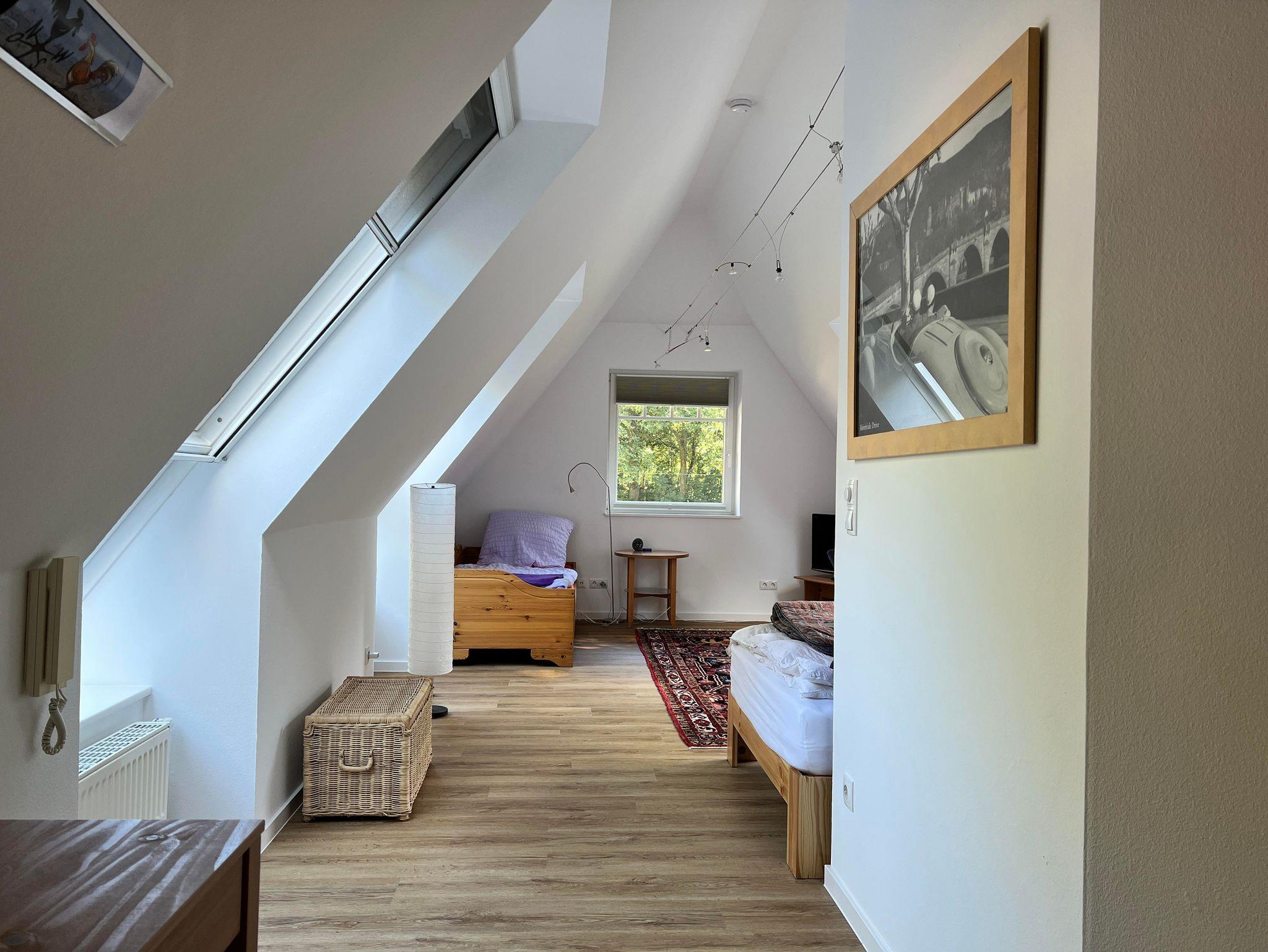 Das Appartment erstreckt sich über zwei Etagen und verfügt über einen seperaten Eingang, mit Terrasse und Zugang zum Garten. Von der Terrrasse und diversen Fenstern im Obergeschoss aus haben Sie einen wunderbaren Blick auf die namensgebende Rotbuche.