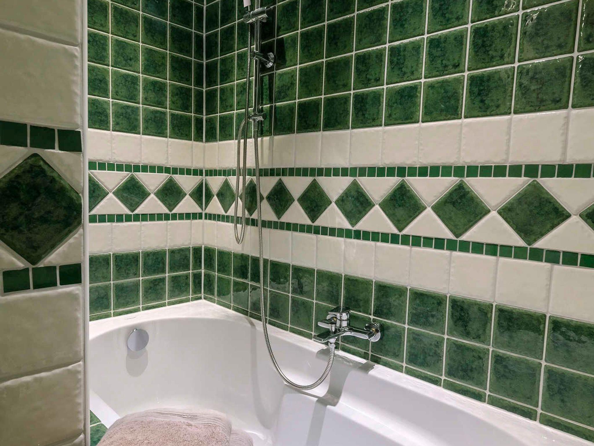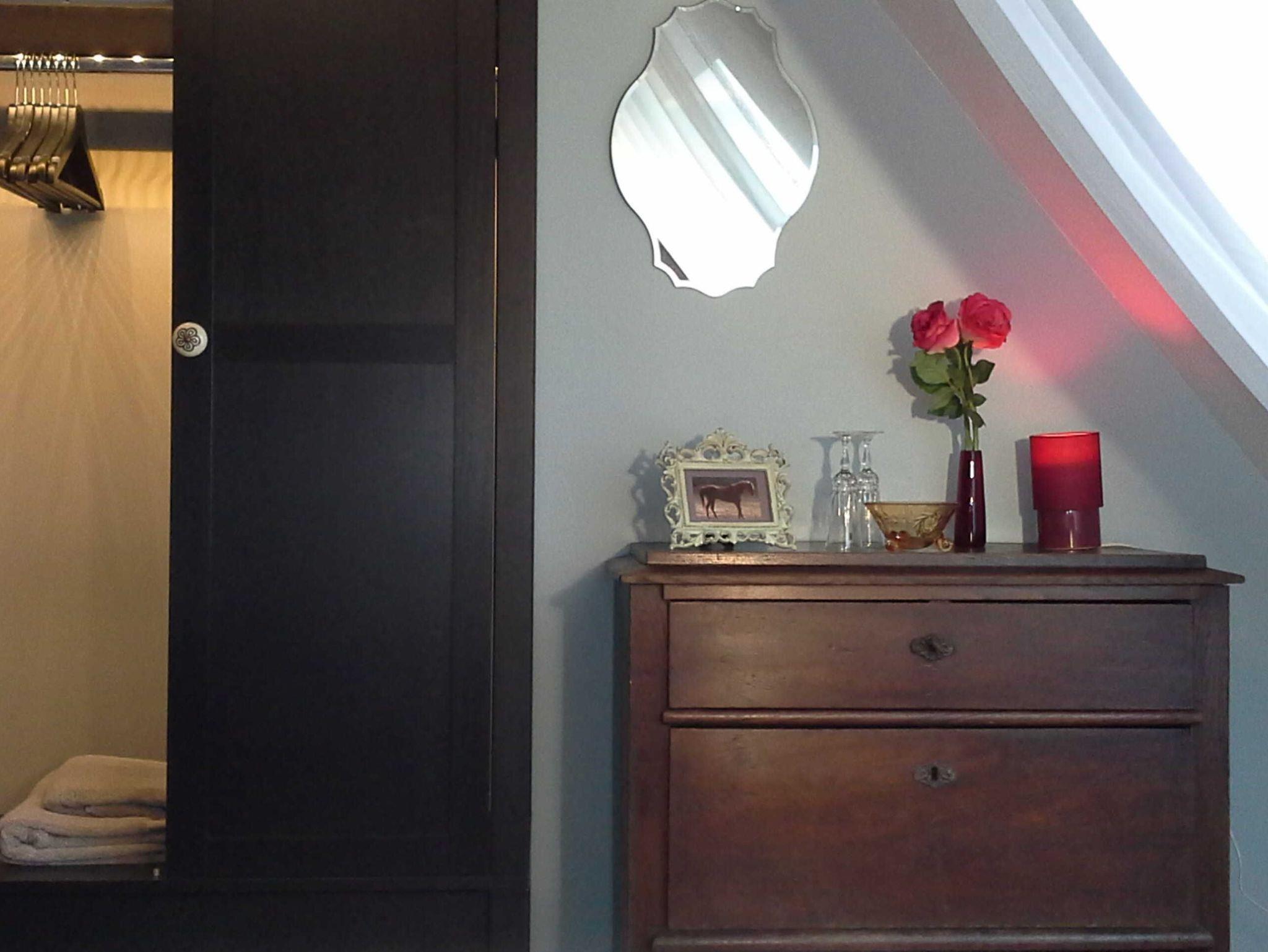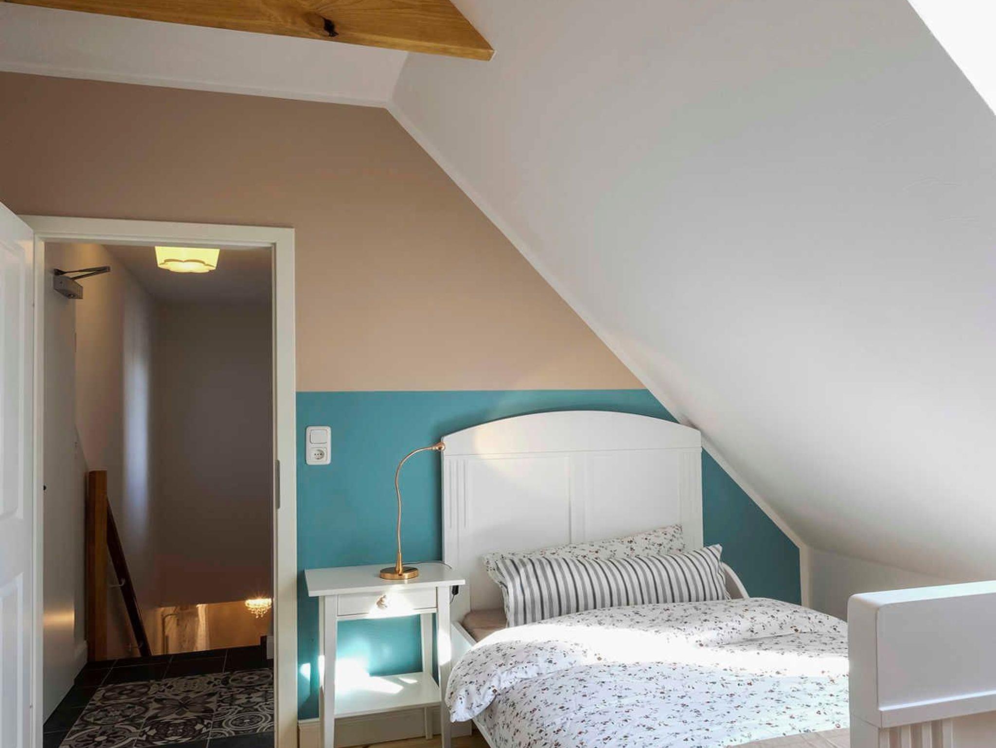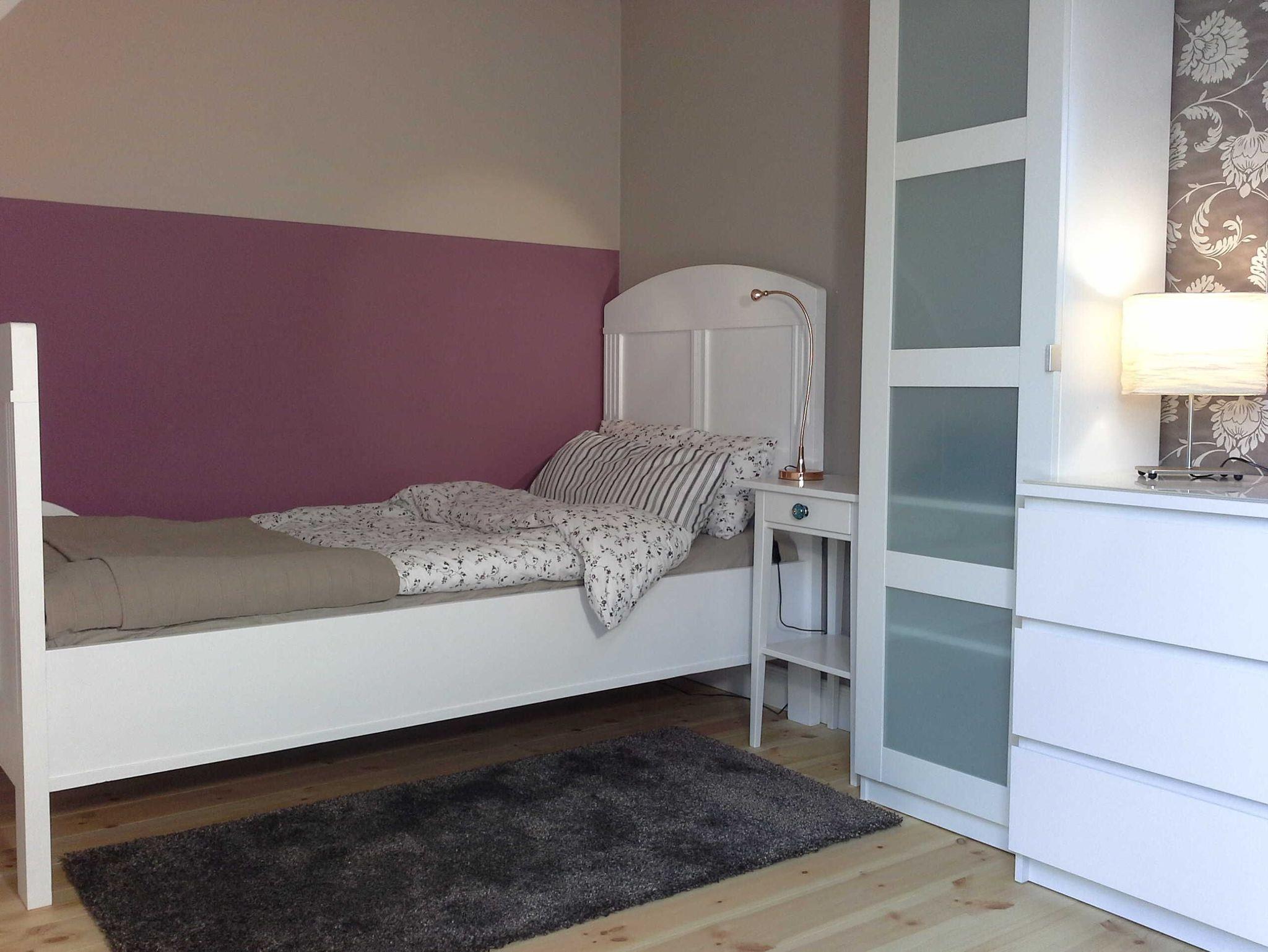 Der Parkplatz liegt unmittelbar vor der 35 m² großen umzäunten Terrasse die mit Holzmöbeln und Kissen ausgestattet ist. Die ca. 60 m² große Wohnung erstreckt sich über 3 Etagen. Im Erdgeschoß der Wohnung befindet sich der Wohnraum mit Küche und Esstisch. Der Wohnraum hat einen abgetrennten Bereich für ein gemütliches Sofa mit Blick auf den 48 Flachbildfernseher. Eine Musikanlage mit CD-Player und USB-Anschluss sorgen für Unterhaltung und gemütliche Entspannung. Die Hochglanzeinbauküche ist zweizeilig mit Kochinsel. Kühlschrank inkl. Gefrierfach, Spüle und Geschirrspüler befinden sich auf einer Seite und darüber erstrahlt die beleuchtete Vitrine mit Geschirr und Gläsern. Der Herd mit Cerankochfeld und Tastbedienung, einem Backofen sowie zwei Unterschränke mit Schubladen bilden die Kochinsel. Der Essbereich grenzt an die Kochinsel. Über dem Holztisch mit 5 antiken Stühlen thront ein wunderschöner Kronleuchter mit 12 Leuchten, der stufenlos gedimmt werden kann. In die 1. Etage führt eine Holztreppe in einen kleinen Flur von dem das Bad und das erste Schlafzimmer erreicht werden. Das Badezimmer mit nostalgischen grün-weißen Fliesen ist ausgestattet mit einer Badewanne und Regendusche, einem Waschtisch mit zwei Schubladen, einem großen Spiegel mit zwei zusätzlichen Leuchten und einem Handtuchheizkörper. Es liegt ein Föhn mit Diffuser bereit, ebenfalls pro Person ein Bade- und ein Handtuch. Das Schlafzimmer hier ist ausgestattet mit einem Doppelbett (160 x 200) und einer wundervoll dicken Matratze. Jede Bettseite hat einen Nachttisch mit einer Leselampe und davor einen flauschigen Teppich. Neben dem Kleiderschrank mit Innenbeleuchtung steht eine antike Kommode mit 3 Schubladen. Ein stilvoller Spiegel, eine nostalgische Glasschale und eine zusätzliche Tischlampe mit gedimmten Licht sorgen für Wohlfühlatmosphäre Die Betten sind mit toller Bettwäsche frisch bezogen. In die 2. Etage führt eine Holztreppe in einen kleinen Flur von dem die zwei weiteren Schlafräume abgehen. Das zweite Schlafzimmer ist ausgestattet mit zwei antiken Einzelbetten. Jedes Bett hat einen Nachttisch mit einer Leselampe und davor einen flauschigen Teppich. Zwei hohe Kleiderschränke in der Mitte mit Innenbeleuchtung bieten viel Stauraum. Dazwischen stehen zwei Kommoden mit 3 Schubladen mit einem XXL Spiegel darüber und einer dekorativen Tischlampe. Das dritte Schlafzimmer gleicht einer Puppenstube. Das antike Schwedenbett (90 x 190) sowie eine ebenfalls antike Kommode und ein antiker Kinderstuhl verströmen nostalgischen Charme. Zusätzlich ist es mit einem Nachtisch mit Leselampe und einem Kleiderschrank ausgestattet.