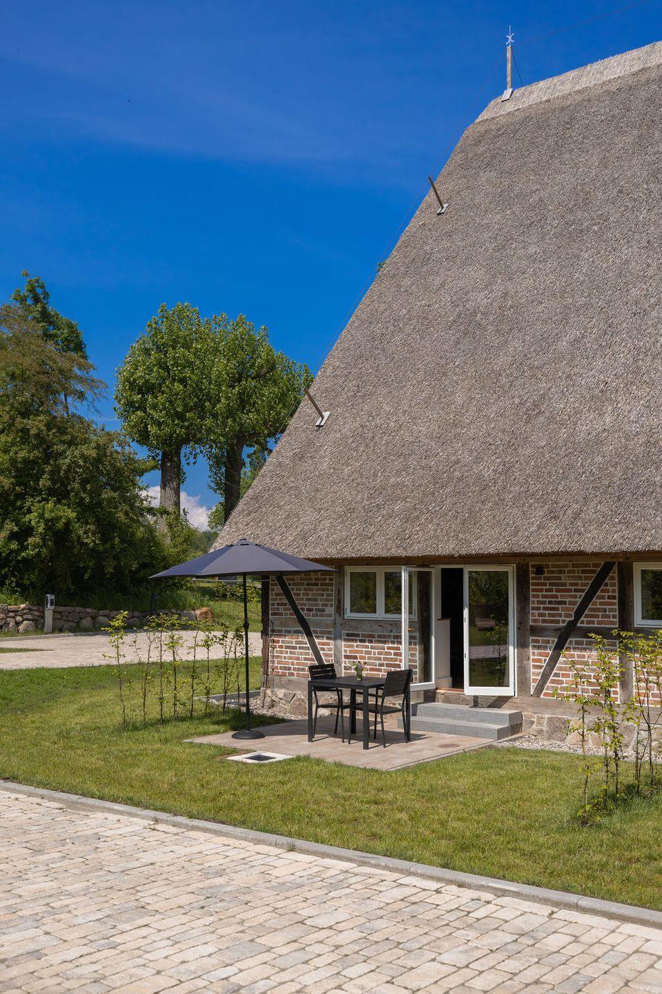 Entspanne auf der privaten Terrasse mit Gartenblick
