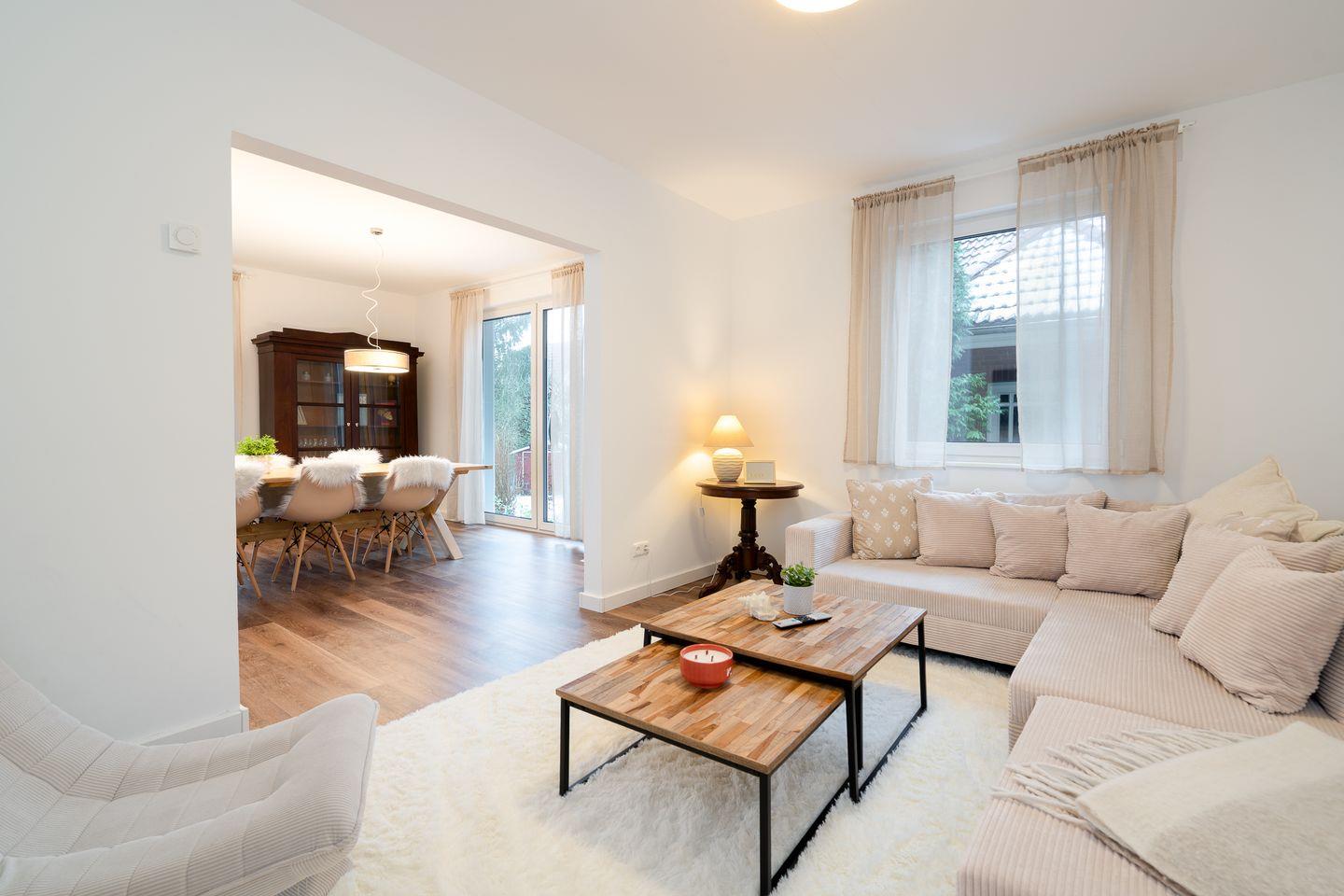 Es erwartet Sie ein lichtdurchfluteter Wohnbereich mit zwei gemütlichen Sofas und einem Essbereich, der zu geselligen Mahlzeiten einlädt. Die offen zum Ess- und Wohnzimmer gestaltete Küche ist vollständig ausgestattet und verfügt unter anderem über einen Backofen, Herd, Heißluftfritteuse, Kühlschrank mit Eiswürfelspender, Gefrierschrank, Spülmaschine, Kaffeemaschine, Wasserkocher und Toaster. Ein absolutes Highlight in der Küche ist der neue Thermomix, mit dem Sie kurzerhand und ganz unkompliziert leckere Mahlzeiten zaubern können. Für die morgendliche Dosis Vitamine sorgt die elektrische Saftpresse. Sämtliches Geschirr, Besteck und Küchenutensilien sind in ausreichender Anzahl vorhanden. Die Einrichtung wurde so gewählt, dass Familien mit Kindern, Eltern und Großeltern gleichermaßen ihren Aufenthalt genießen können. Zwei Babybetten und zwei Kinderhochstühle stehen für die jüngsten Gäste bereit.