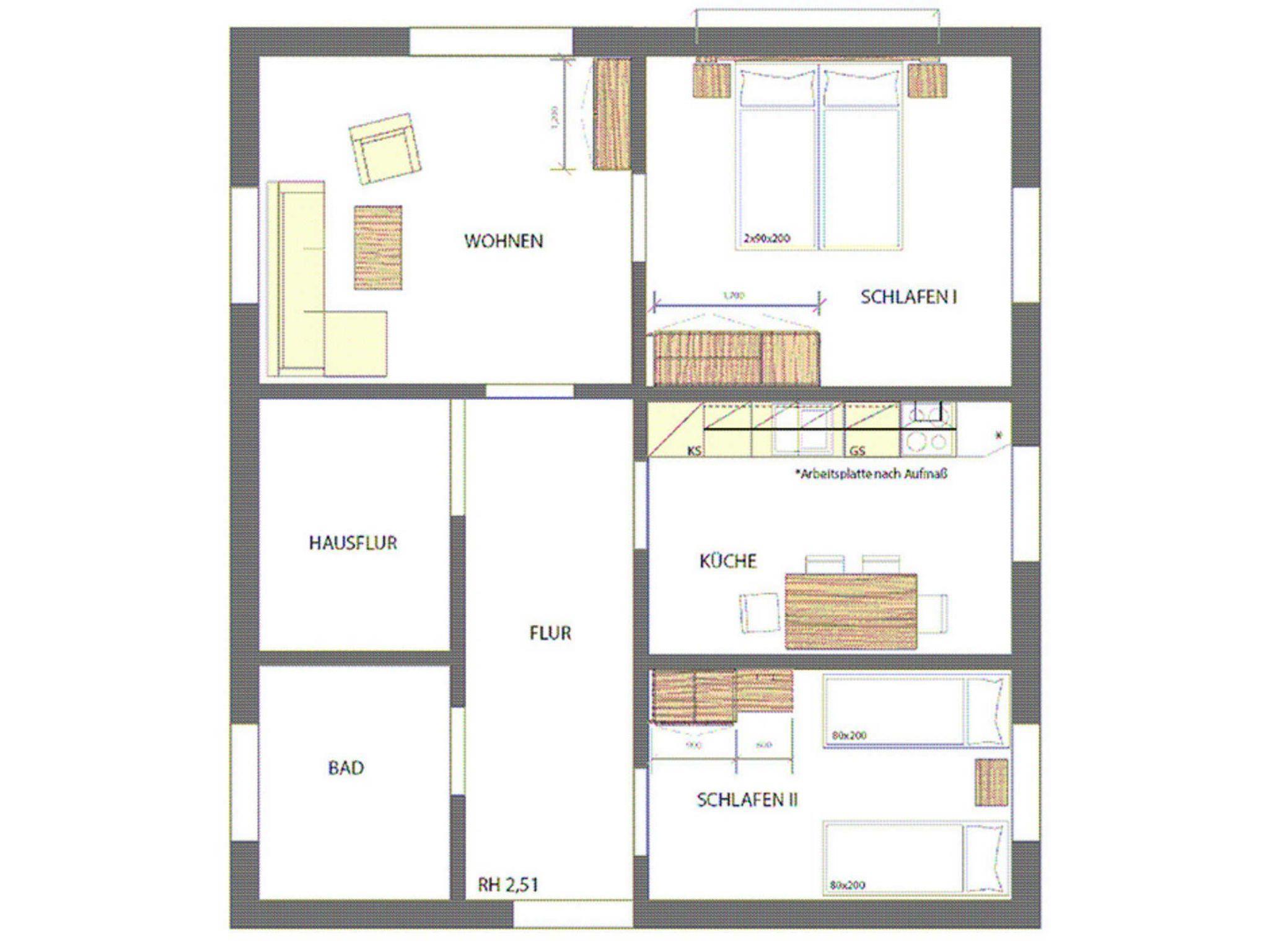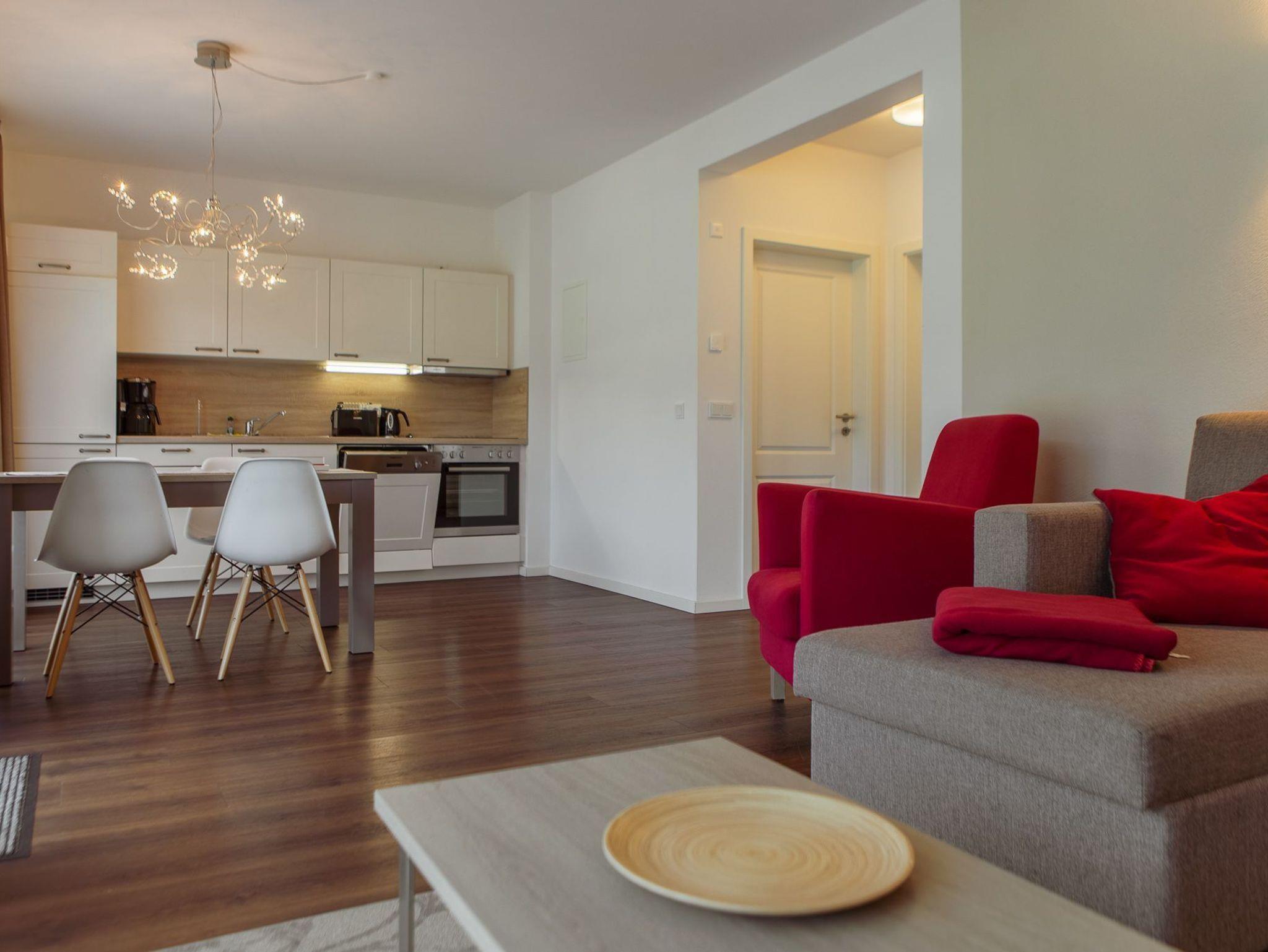 Die Ferienwohnung mit Gartenblick im Paterre ist mit 2 Schlafzimmern, einem Wohnzimmer, Küche, Badewanne, WC, TV, WLAN und einer Terrasse ausgestattet.