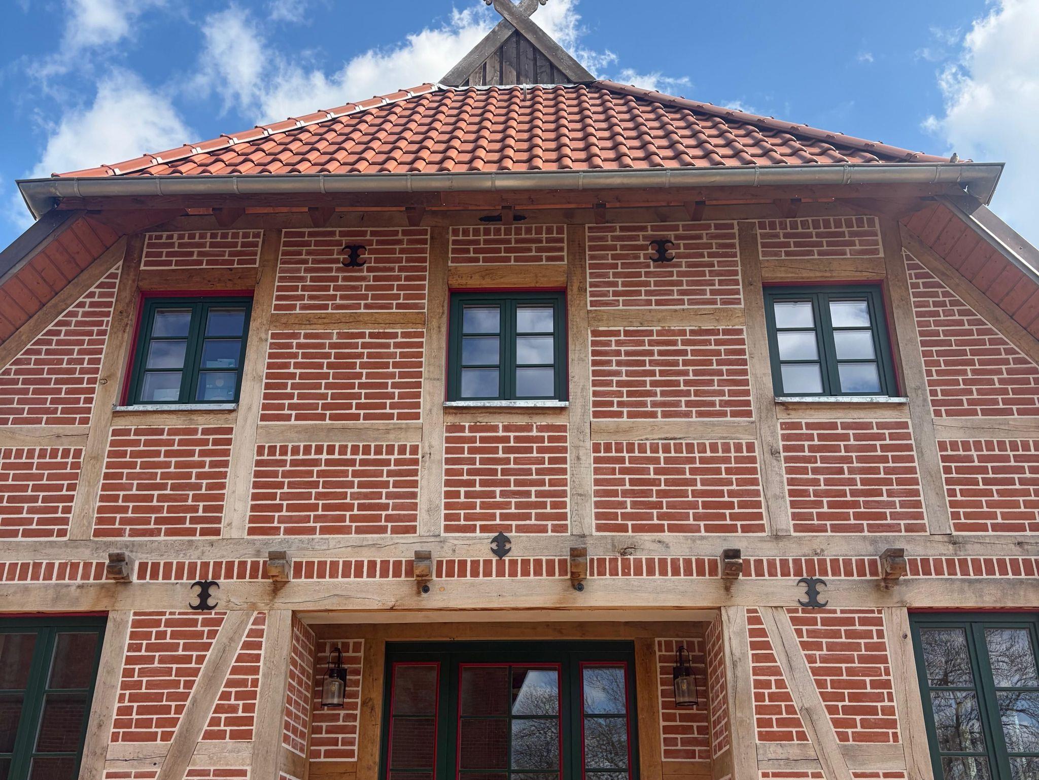 Eröffnung Frühjahr 2026. Neubau im traditionellen Fachwerk- und Backsteinstil. Rustikales Gruppenhaus mit Ferienwohnungen bis 24 Personen mit Sauna und urigem Gemeinschaftsraum mit Kamin zum Feiern, Spielen und Essen.