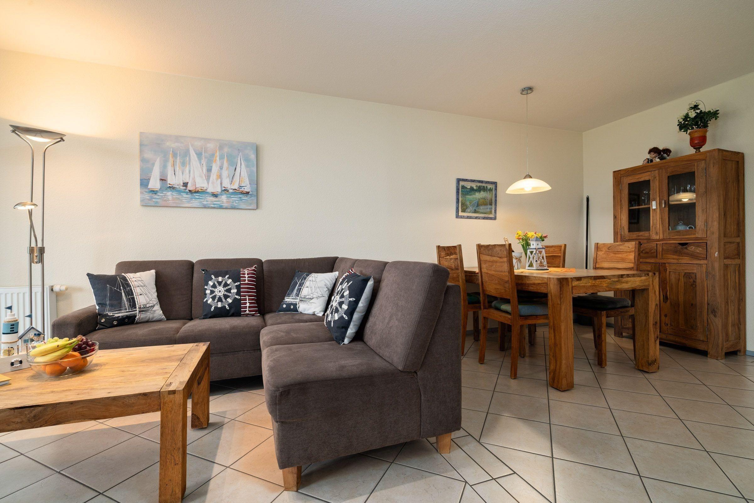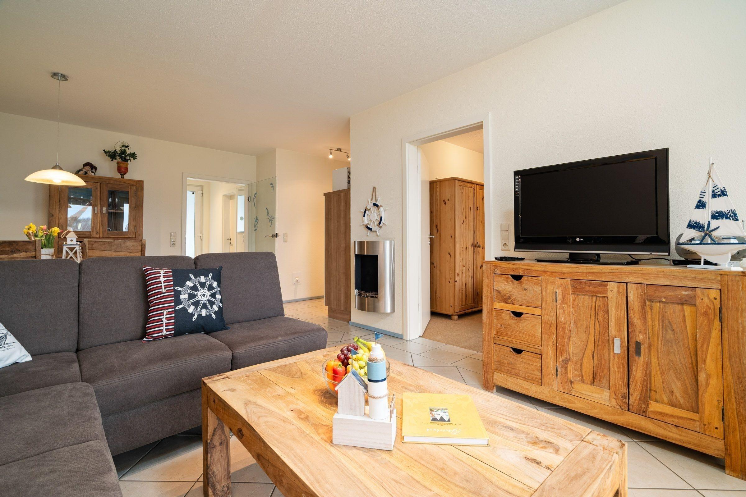 Das App Gartendeck 402 im Hafendorf Müritz präsentiert sich auf 65 m² als ideale Unterkunft für bis zu 4 Personen und überzeugt mit einer durchdachten Raumaufteilung. Die Unterkunft besteht aus einem offenen Wohnbereich mit Sofaecke, Esstisch und TV sowie einer vollständig ausgestatteten offenen Küche mit 4-Platten-Herd, Backofen, Mikrowelle, Kühlschrank mit Gefrierfach, Spülmaschine und weiteren Küchenutensilien. Zwei Schlafzimmer bieten ausreichend Platz, und das Badezimmer verfügt über eine Dusche mit Wanne, WC, Bidet sowie zwei Duschmöglichkeiten. Ein besonderes Highlight ist die private Sauna. Die Fußbodenheizung und der Ofen sorgen für zusätzlichen Komfort. Allergikerfreundliche Ausstattung macht das Appartement besonders geeignet. Gemeinschaftliche Bereiche sind im Ferienpark vorhanden, und ein kostenloser Privatparkplatz im Carport ist ebenfalls vorhanden.
