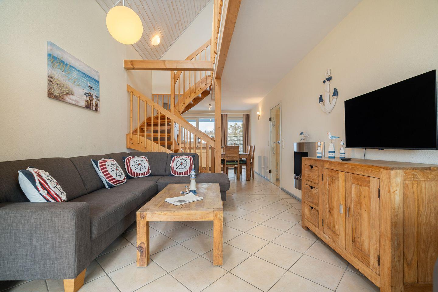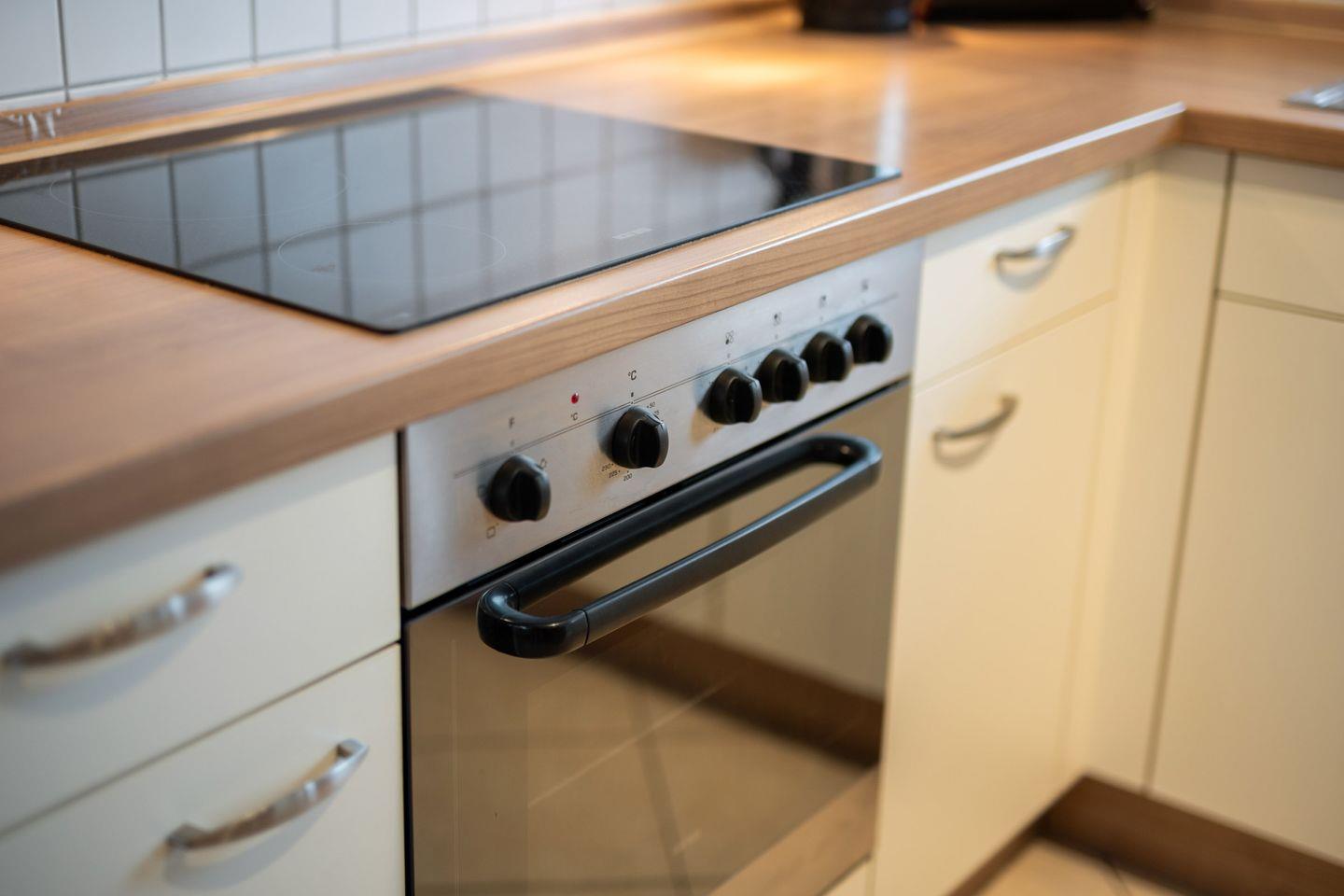 Zur Ausstattung gehören ein Wohnzimmer mit Sofaecke, Sofa, Sessel und TV sowie ein separater Essbereich mit Esstisch. Die vorhandene Küche unterstützt Sie dabei, Mahlzeiten bequem selbst zuzubereiten. Für ein angenehmes Wohngefühl sorgen Zentralheizung und Fußbodenheizung, zusätzlich schafft ein Ofen eine wohnliche Atmosphäre. Fliesen im Wohnzimmer und Teppichboden in den Schlafzimmern ergänzen den wohnlichen Charakter der Unterkunft.