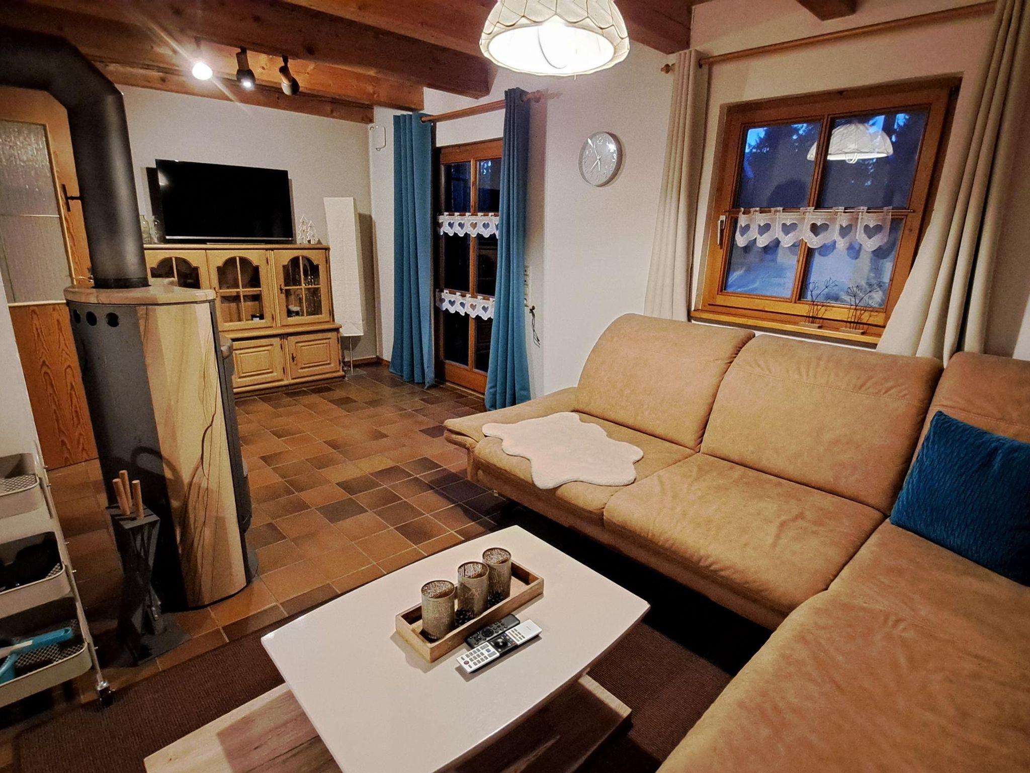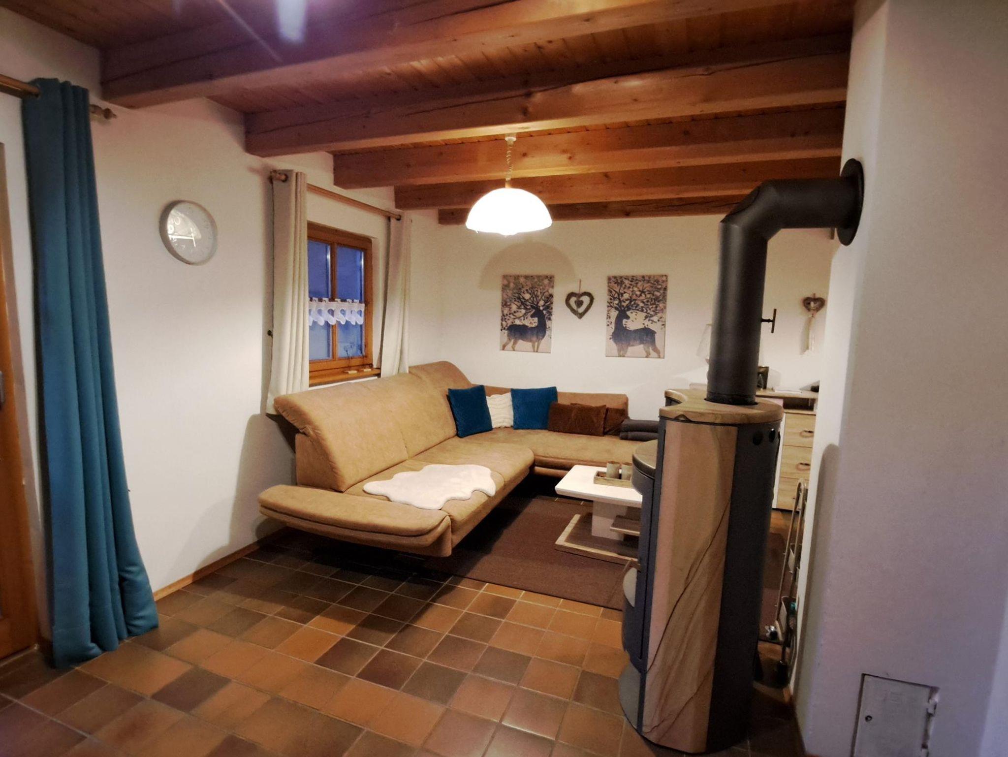 Erdgeschoss finden Sie ein sehr gemütlich eingerichtetes Wohnzimmer mit einem Holzofen zum