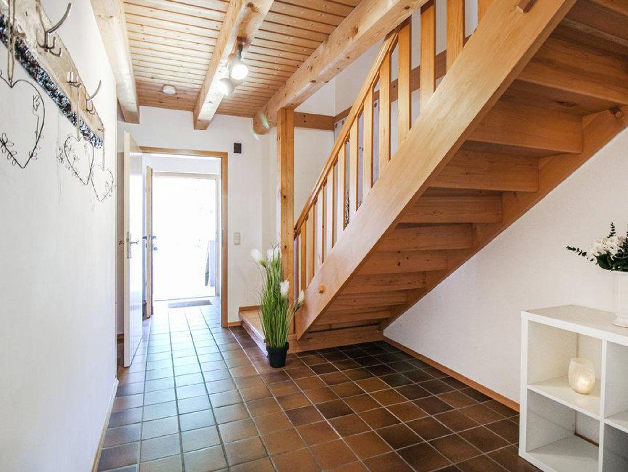 Räume sind hell und haben Sichtbalken, was dem Haus seine besondere Note