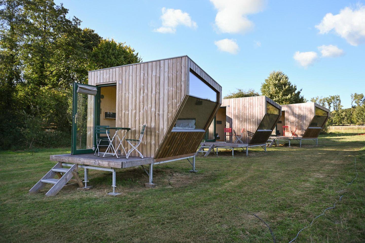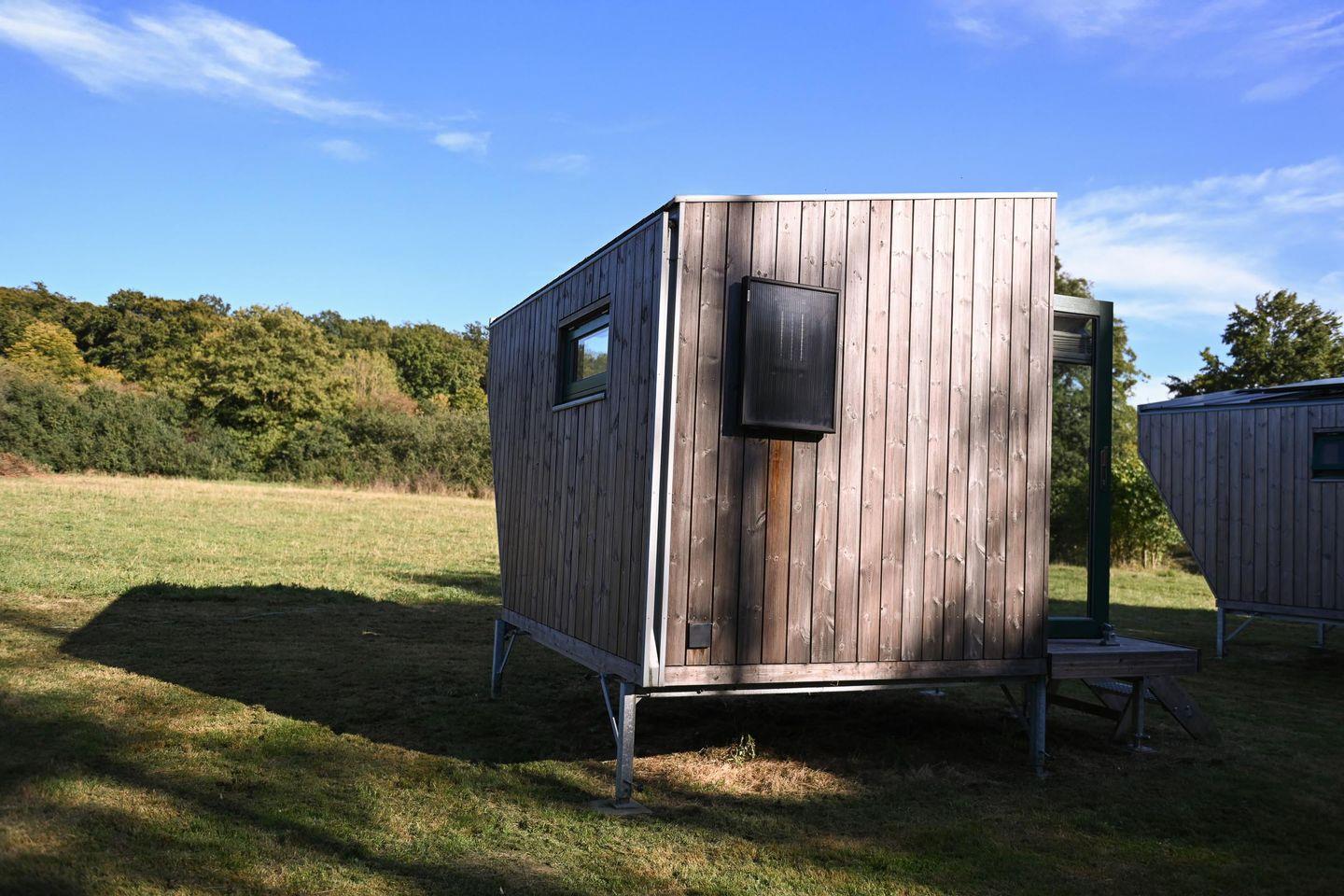 Das Sleep Space 2 am Green&Tiny Spot Rehburg an der Schafweide ist dein kleiner Rückzugsraum in der Natur. Auf nur 5 m² bietet das Cabin auf dem Campingplatz LieblingsGrün in Rehburg-Loccum Platz für bis zu 2 Personen: mit einem 1,40 × 2,00 m Bett, Lounge & Panoramafenster, Stauraum und einer ausgestatteten Kochnische. Genieße die Ruhe in der Nähe des Steinhuder Meeres, übernachte stilvoll in einem nachhaltig gebauten Space und entspanne auf der Mini-Terrasse mit Blick über die Weide.