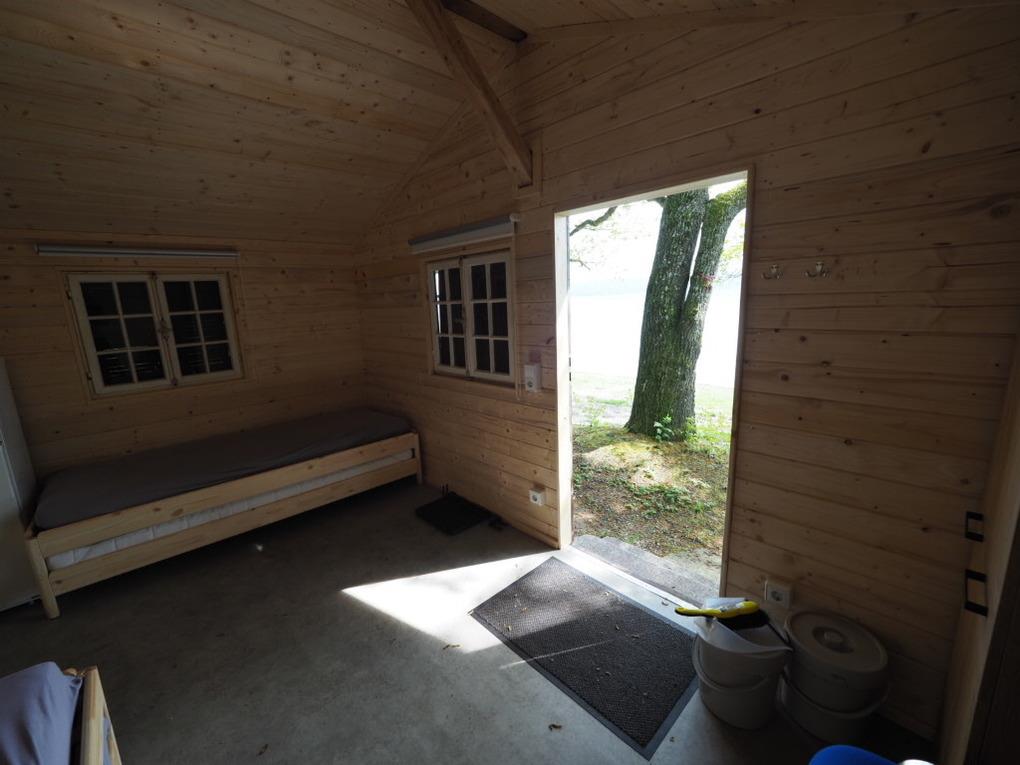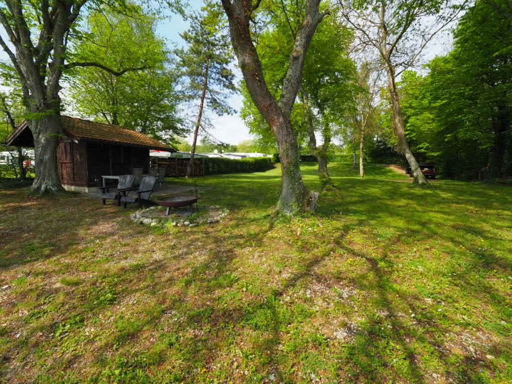 Neben dem kleinen Sommerhäuschen bietet das Grundstück mehr als genug Platz, um weitere Begleitpersonen, Freunde oder Familienangehörigen, die mit Camper, Bus, Zelt oder kleinem Wohnwagen anreisen, zu beherbergen.