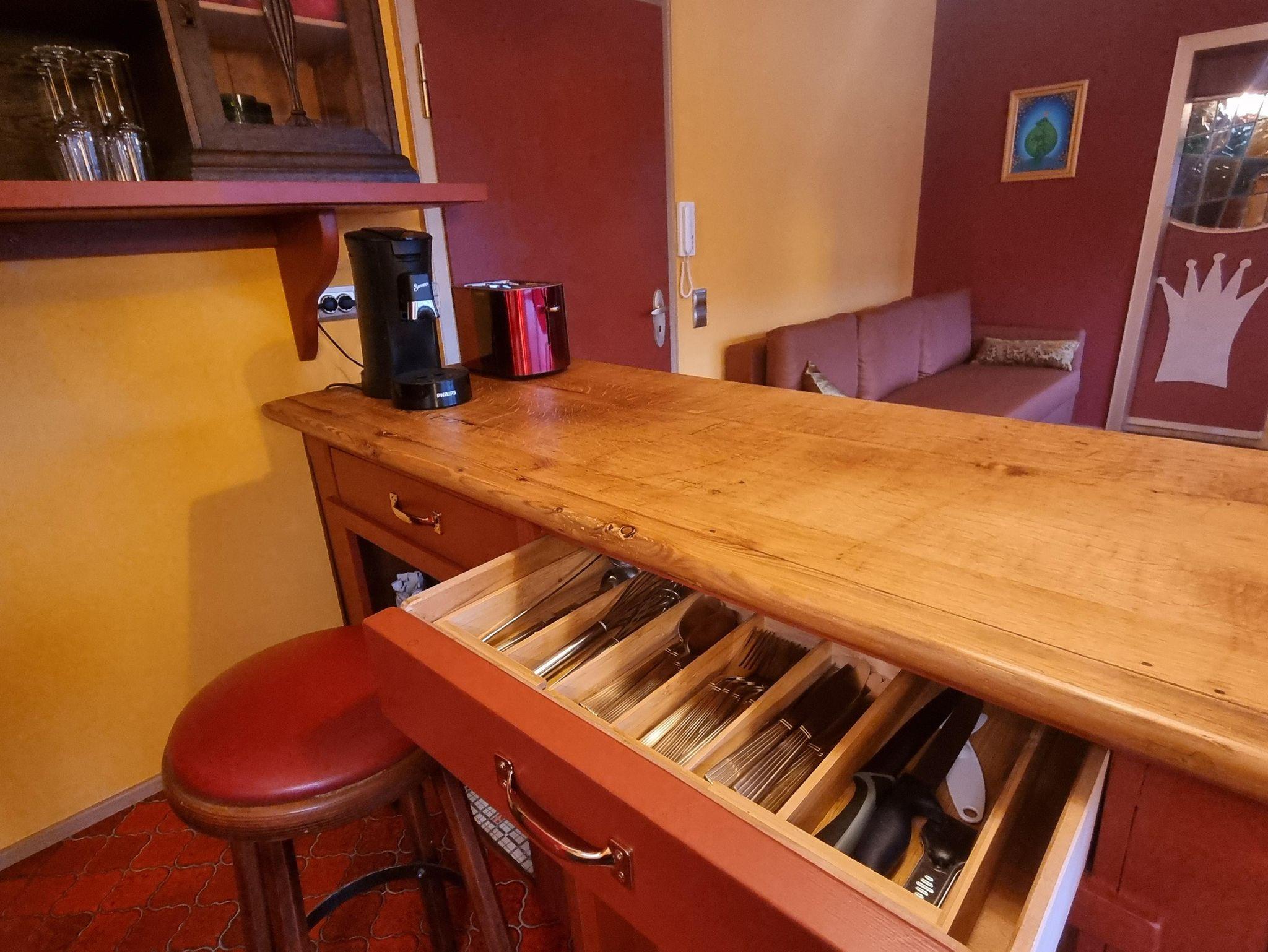 Gemütliche große Wohnküche mit eigener Terrasse, elektrische Markise, moderner Gasgrill.