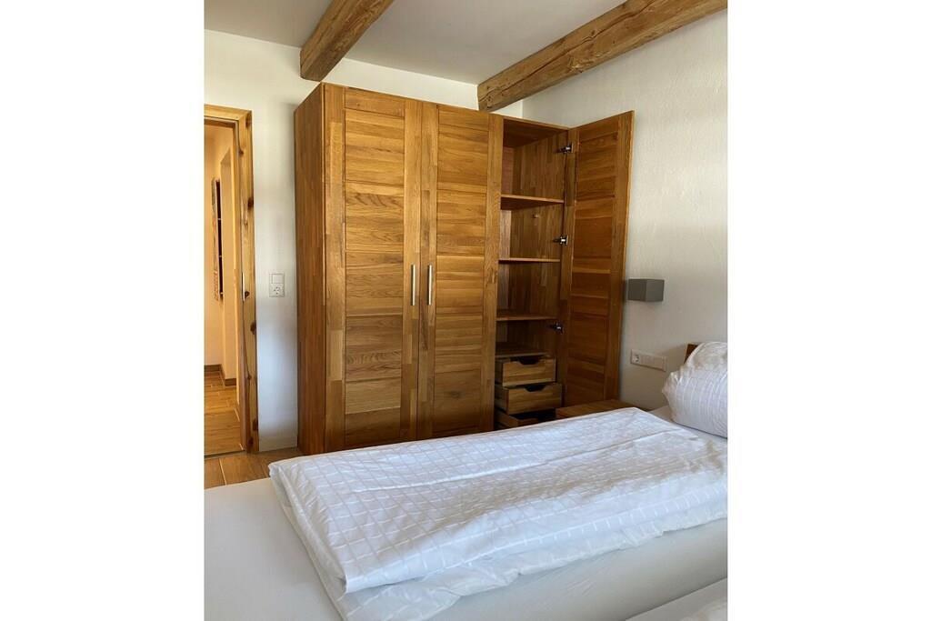 Der Wohnraum ist ca. 60 qm groß und alle Böden sind ökonomisch hergestellt als auch verarbeitet. Die Möblierung ist modern und nach Öko-Richtlinien ausgewählt worden. Dementsprechend auch für Allergiker geeignet. Der Living-Room verfügt über eine schöne Essecke sowie ein hochwertiges Ledersofa und einen Fernseher mit Kabelanschluss. Per WLAN haben Sie in der gesamtem Wohnung Internetzugang. Die amerikanische Küche ist mit einem 4-Zonen-Induktion-Ceranfeld ausgestattet. Der Kühlschrank mit Gefrierfach besitzt das Siegel „3 Sterne, Energieeffizient AAA“. Außerdem befinden sich in der Küche ein Geschirrspüler, eine Dunstabzugshaube und ein Backofen. Es sind ausschließlich WMF Küchengeräte vorhanden: Kaffeemaschine/Thermoskanne, Wasserkocher, Toaster, Töpfe, Mixer. Ein weiterer Vorteil ist die besonders große Ablagefläche und der ausgiebige Stauraum. Für die kleinen Gäste stehen Kinderhochstühle von Tripp Trapp® bereit. Das kleine, funktionale Duschbad ist frisch saniert. Es besitzt eine bodengleiche Schwalldusche, einen Haartrockner, ein Hänge-WC mit Absenkautomatik, Handtücher, eine Handtuchheizung, ein Tritthocker für Kinder und einen Baby-Toilettenaufsatz. Im Elternschlafzimmer ist ein Doppelbett vorhanden und ebenfalls ein Fernsehgerät mit Kabelanschluss und DVD-Player. In dem geräumigen Kleiderschrank befindet sich zusätzlich ein Safe für Ihre Wertsachen. Für einen komfortablen Aufenthalt befindet sich im Kinderzimmer ein Doppel-Etagenbett, wo bis zu 3 Personen (á max. 130 Kg) schlafen können. Für Kleinkinder sind ein Babybett und ein Bettgitter verwendbar. Der Fernseher ist mit einem Kabelanschluss versehen und ein DVD-Player ist integriert. Zudem ist eine Nintendo Wii Spielkonsole installiert. Auf dem Balkon können Sie sonnige Abende ausklingen lassen und entspannt grillen. Der Grill beinhaltet das dafür vorgesehene Grillbesteck. Die Markise beschert auch bei heißen Tagen ein angenehmes Beieinandersein auf dem Balkon sowie Sonnenschutz für den Wohnraum. Im Keller können Sie Waschmaschine, Trockner und Bügeleisen nutzen. Ansonsten steht Ihnen ein Kinderwagen, ein Bobby Car, eine Tischtennisplatte und ein Schlitten für Rodelspaß im Winter zur Verfügung. Unsere Gesellschaftsspiele können Sie nutzen, als auch Spiele für draußen. Damit Ihr Aufenthalt in der Ferienwohnung in Reit im Winkl perfekt wird, erhalten unsere Gäste die „Reit im Winkl inklusiv Card“ kostenlos. Diese beinhaltet unter anderem die Nutzung von Frei- und Hallenbädern, der Benz-Eck-Lifte und eine Vergünstigung der Skipässe in Seegatterl. Der Ort überlegt sich jedes Jahr ein attraktives Programm mit viel Spaß in der freien Natur für die großen und kleinen Gäste. Vom Ponyreiten bis zum Hochseilgarten ist alles dabei. Hinweis: Die Ferienwohnung in Reit im Winkl wird auch von Privat – einer kinderfreundlichen Familie OHNE Haustiere – genutzt. Daher sind Haustiere nicht willkommen.