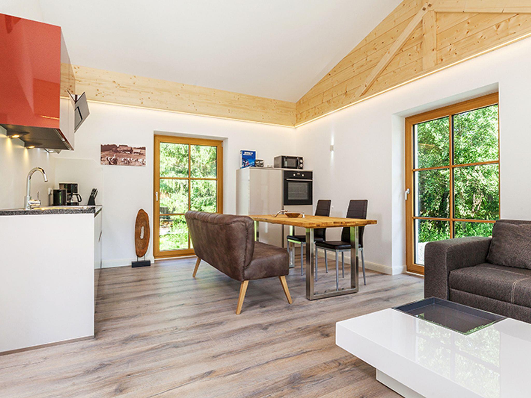 Entspannen sie in unserer gemütlichen und sonnendurchfluteten ca. 50 qm großen Nichtraucherwohnung. Die Wohnung wurde im Jahr 2017 komplett neugestaltet und bayerisch, modern/chic eingerichtet. Die Wohnung befindet sich im Erdgeschoss des Hauses Alpina. Die gesamte Etage wiederum ist mit einer für jeden Raum eigens zu steuernden Fußbodenheizung ausgestattet. Die komfortabel, hell und freundlich eingerichtete Wohnung verfügt über freies W-LAN, Kabel-TV inkl. Internetzugang und Radio.