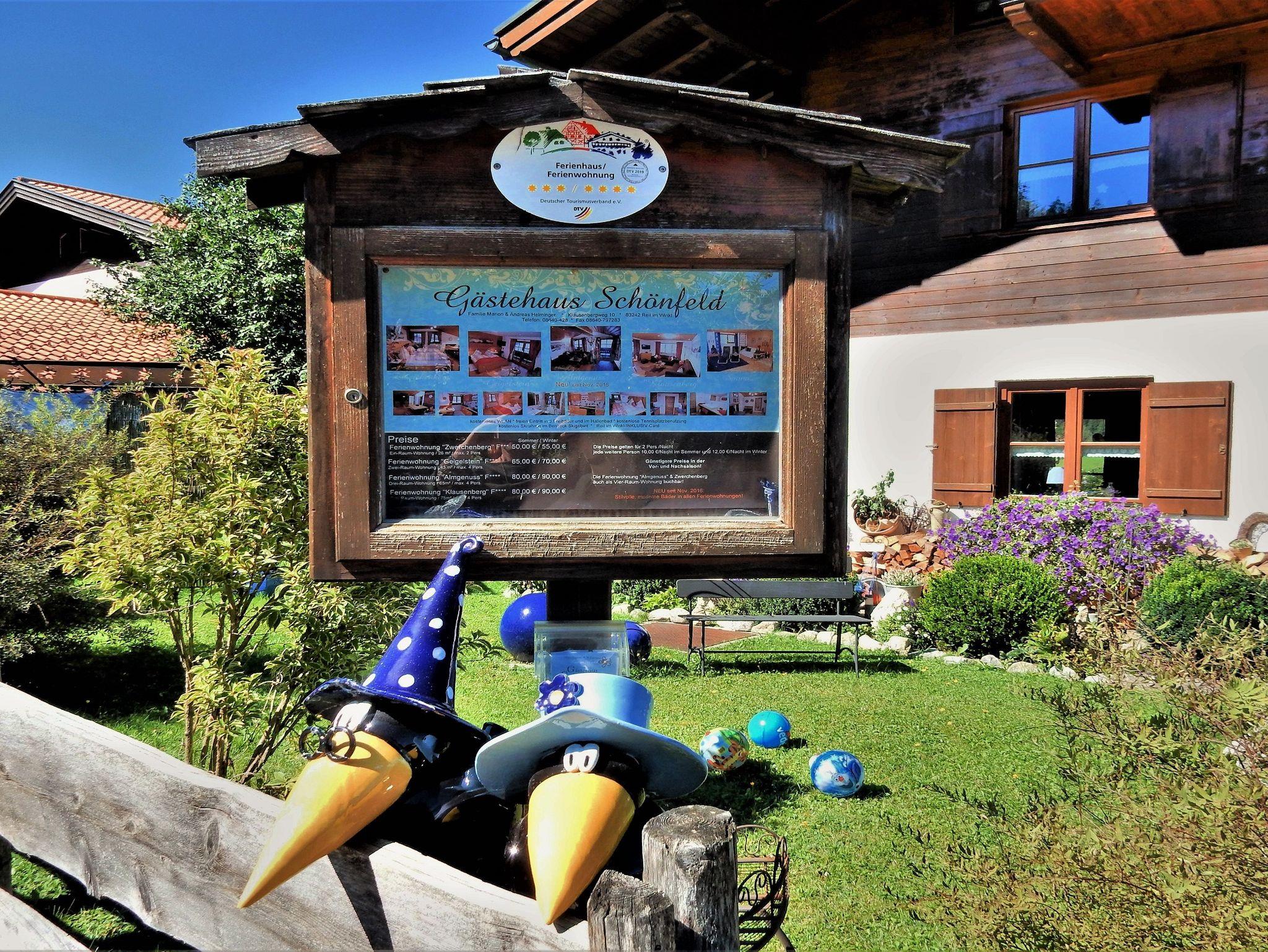 Erleben Sie Reit im Winkl´s bezaubernden Charme in unserem wunderschön idyllisch und herrlich ruhig gelegenen kleinen aber feinen Gästehaus Schönfeld. Stilvolle und bestens ausgestattete Wohlfühl-Ferienwohnungen mit großen lauschigen Balkonen und traumhaften Bergblick sowie hauseigener Sauna erwarten Sie. Kostenlose Parkpätze mit E-Ladestation befinden sich direkt am Haus und kostenloses WLAN ist in allen Ferienwohnungen vorhanden. Kuschelige Bettwäsche und ausreichend Hand-/ Dusch-/ Spültücher sowie Bademäntel werden bereitgestellt.