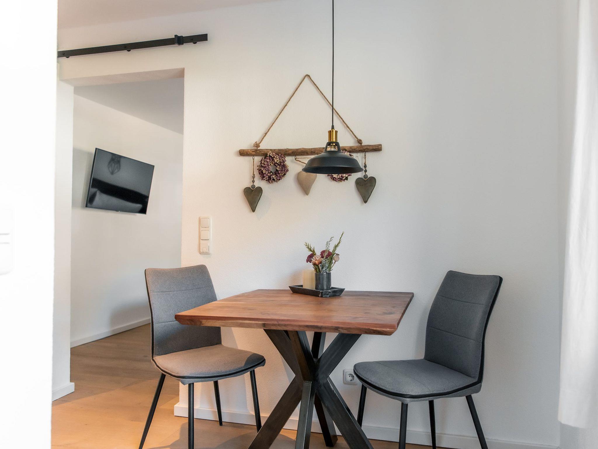 Die Ferienwohnung Steinröschen liegt im Erdegschoss und verfügt über einen wunderschönen Blick zum Schwarzberg und in den benachbarten Kurpark. Die Wohnung hat ein großes separates Schlafzimmer.