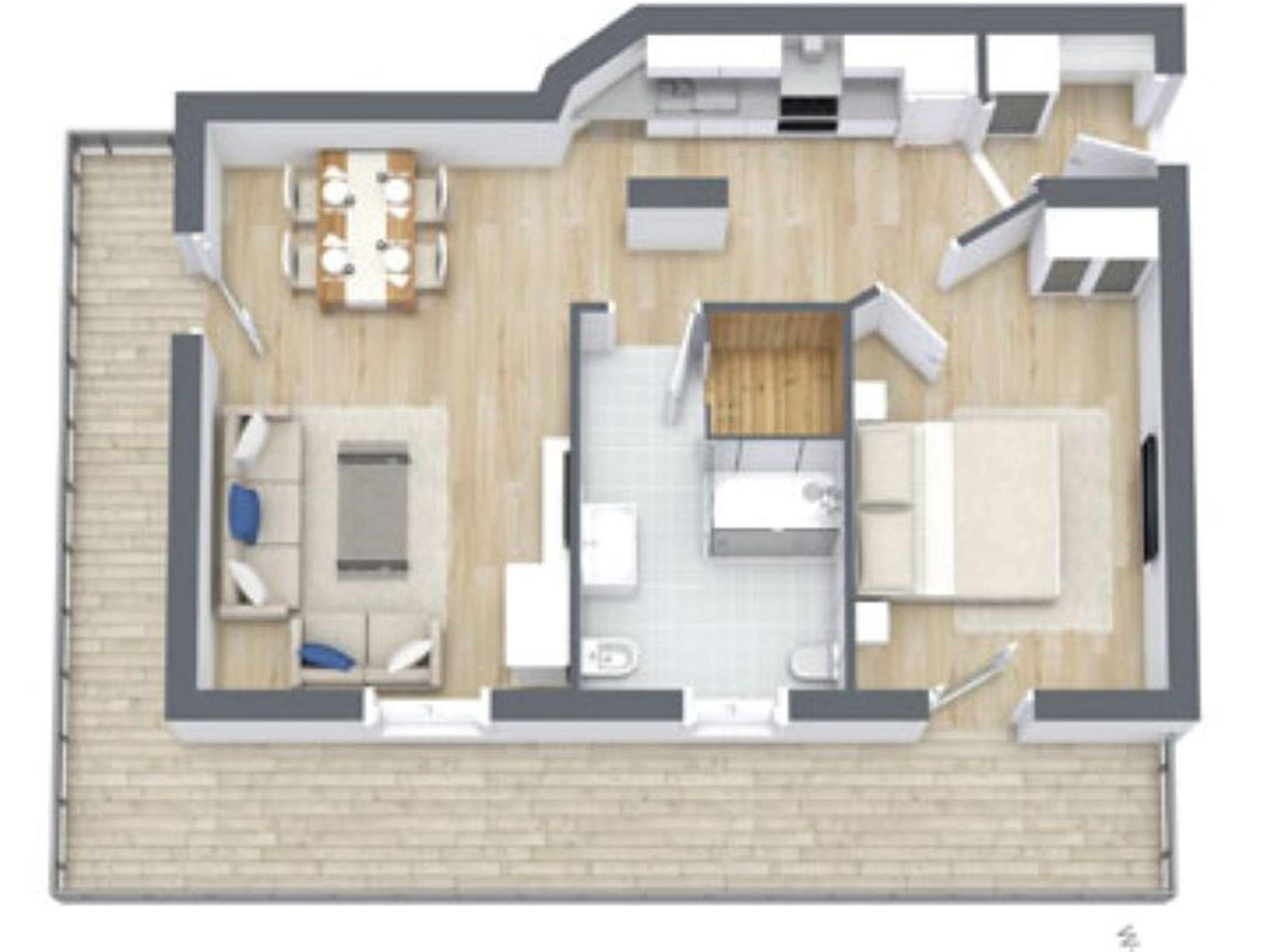 Ausrichtung nach Süden und Westen. Vom eigenem Balkon aus, der sich über die gesamte Wohnung erstreckt genießen Sie die Mittag-, Nachmittag- und Abendsonne. Das luxuriöse Badezimmer mit Außenfenster verfügt über ein Bidet. In der voll eingerichteten Küche mit Mikrowelle und Geschirrspüler, lassen sich leckere Mahlzeiten zubereiten. Im Wohnzimmer erwartet Sie eine gemütliche Couch, Flat-TV und Telefon. Im separaten Schlafzimmer befindet sich ebenfalls ein TV Gerät.
