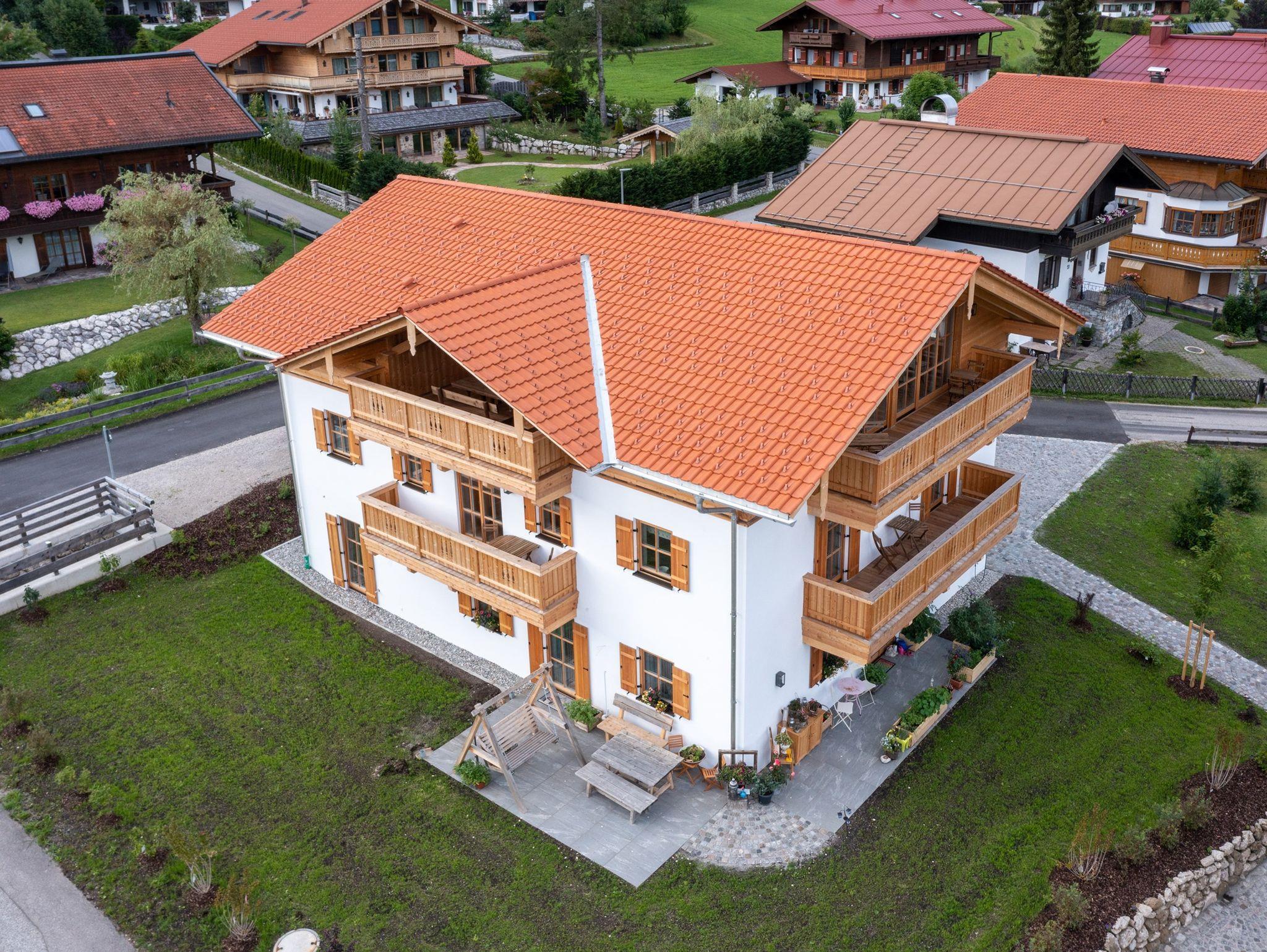 Von der großzügigen Loggia im Dachgeschoss aus hat man einen herrlichen Blick auf den Zahmen und den Wilden Kaiser und kann, geschützt vor Niederschlag und Kälte, seine Zeit genießen. Zudem gibt es noch 5 weitere Balkone, die alle einen anderen Blick auf die Umgebung Reit im Winkls zulassen.