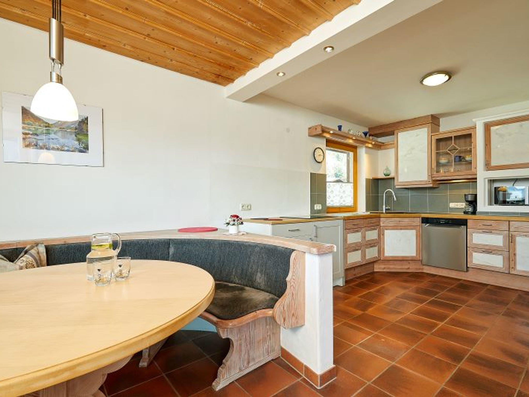 Die großzügig, im bayerischen Stil ausgestattete 4-Zimmer-Ferienwohnung verfügt über sehr geräumige, sonnige Balkone. In der komplett eingerichteten separaten Wohn-Küche mit Spülmaschine können Sie bequem Ihre Mahlzeiten zubereiten. Die helle gemütliche Ferienwohnung hat ein großes Wohnzimmer, zwei Schlafzimmer, große Diele mit Kachelofen, Holz-Innentreppe, ein Bad mit Dusche und WC. Die Handtücher werden von uns gestellt. Die kuscheligen Oberbetten haben Überlänge. Für Allergiker ist diese Wohnung empfehlenswert, da Sie in der Ferienwohnung nur ein natürlicher Holzboden oder Fliesenboden erwartet. In der Küche, Diele und im Badezimmer sind Fliesenböden.