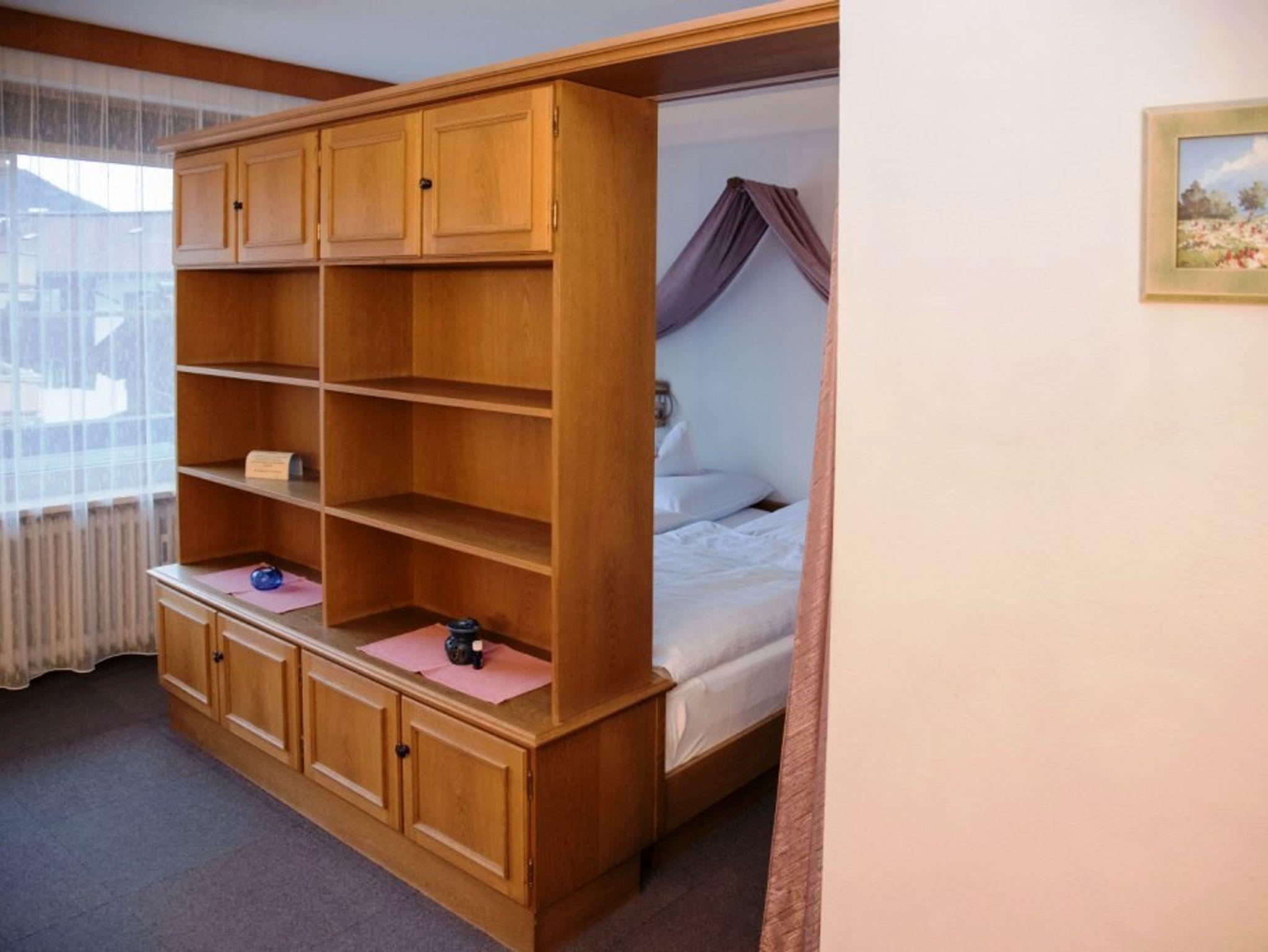 Großer Wohn-Schlafraum mit abgetrennter Schlafnische, gemütliche Sitz- und Essecke, Zimmersafe. Separate Küche u. Dusche/WC. Vom Ost- und Westbalkon haben Sie den Blick zum Dorfplatz bis zum Unterberg/Kaisergebirge mit ganztägiger Sonne.