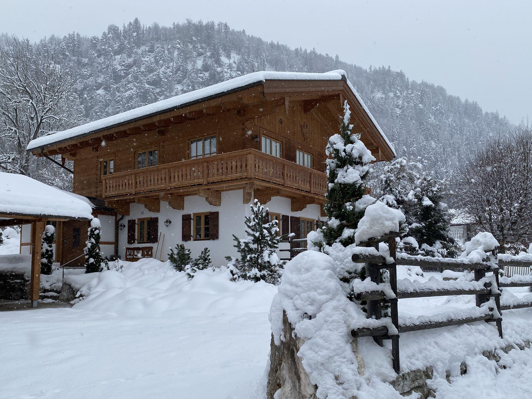 Unser „Chalet unter weiß-blauem Himmel“ ist ein luxuriöses Ferienhaus für bis zu 8 Personen. Das 2018 erbaute Haus ist von einem großen Garten umgeben, mit Liegewiese, Terrasse, Grillecke und Freisitz aus Naturstein, angrenzend an einen kleinen Gebirgsbach. In mehreren gemütlichen Sitz-Bereichen sowohl im Erdgeschoss als auch im Obergeschoss können Sie in einem bayrisch traditionellem aber doch zeitgemäßen Ambiente entspannen. Vom Balkon blicken Sie auf die grandiose Berglandschaft sowie das Kaisergebirge und das Unterberghorn, zur weiteren Ausstattung gehören Fußbodenheizung (Naturwärme aus Reit im Winkl) und Wlan. Ein Schlafzimmer befindet sich im Erdgeschoss, zwei weitere im Obergeschoss, alle in unterschiedlichem klarem Design mit verschiedenen Holzarten; zu jedem gehört ein angrenzendes Badezimmer. Auch unser Wellnessbereich ist ein Hingucker: vier speziell entworfene Physiothermliegen sorgen in einer Wald-und-Alm-Atmosphäre dafür, dass Verspannungen und Rückenschmerzen gelindert und das allgemeine Wohlbefinden gestärkt werden. Praktisch für Ihren Winterurlaub sind Skischuh-Trockner, Platz für die Ski-Ausrüstung und die Winterkleidung. Außerdem stellen wir unseren Gästen Waschmaschine, Wärmepumpentrockner und einen Carport für zwei Fahrzeuge zur Verfügung.