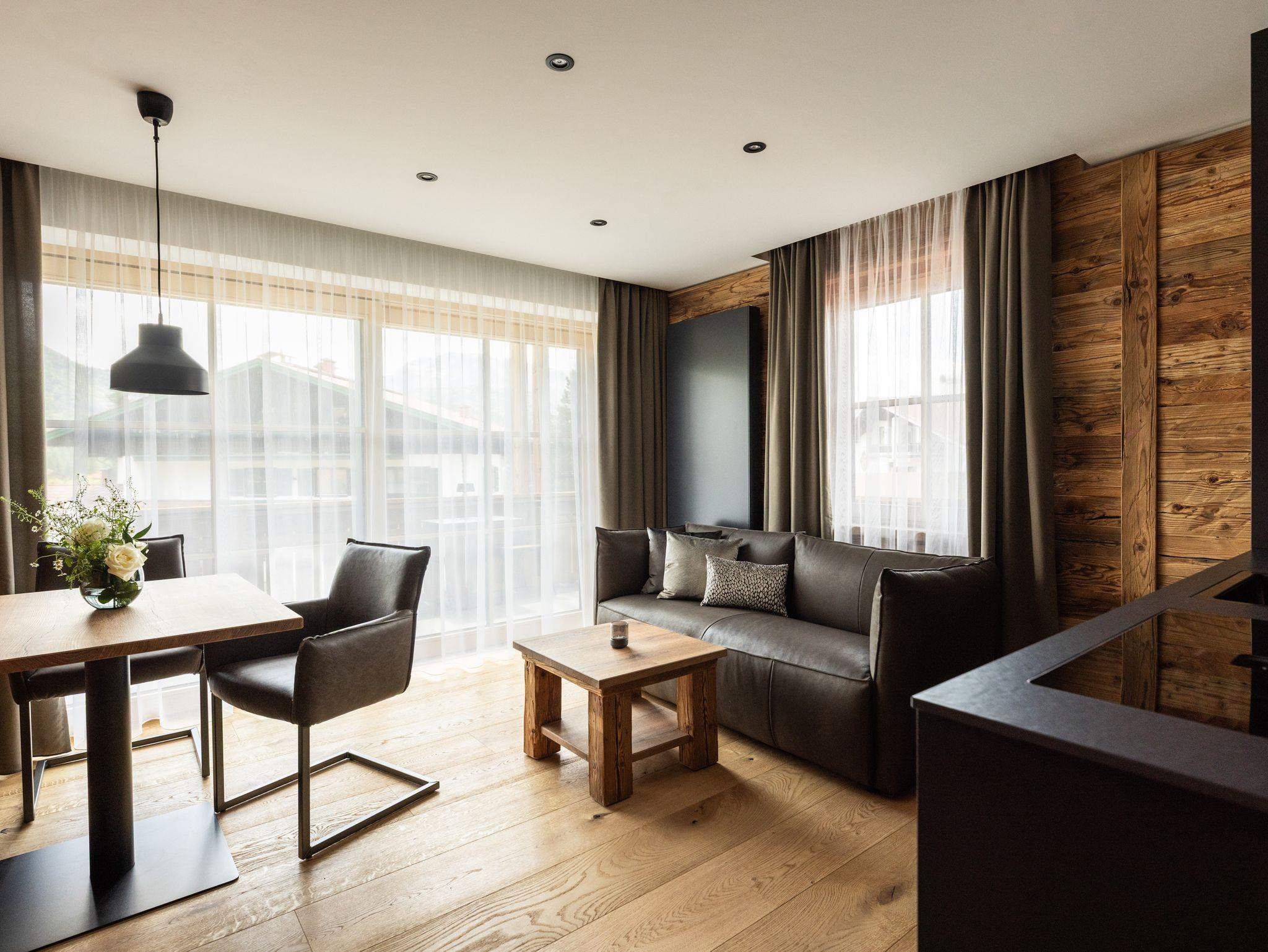 Für alle, die Ruhe mit Stil und Natur mit Komfort verbinden möchten: Sobald Sie Das Denisl betreten, stellt sich ein tiefes Gefühl der Erholung ein. Mitten im Herzen von Reit im Winkl, zentral an der Sonnenloipe, wartet ein neues Apartmenthaus mit 14 stilvollen, hellen Ferienwohnungen voller Flair auf Ihre unvergessliche Zeit im Chiemgau. Viel Altholz, gedeckte Farben, indirekte Beleuchtung, schwarze Armaturen und große Türen zu Balkon oder Terrasse machen Ihre Urlaubstage zu einem echten Design-Erlebnis. Freuen Sie sich auf bestens ausgestattete Küchen, einladende Essbereiche, gemütliche Ledersofas, große Waschtische, kuschelige Boxspringbetten und Regenduschen, die Sie rundum verwöhnen und entspannen lassen. Im Haus zählt der großzügige Aufenthalts- und Eventraum mit 120?m² zu einem beliebten Treffpunkt, um gemütlich zusammenzusitzen, gemeinsam zu feiern oder Tagungen durchzuführen – ausgestattet mit Küche, Theke, Tontechnik, Getränke-/Snackautomat und einer großen Sonnenterrasse mit Blick ins Grüne. Für Aktive Urlauber beginnen direkt vor der Tür idyllische Wanderwege, tolle Biketouren und gepflegte Skiloipen im Winter. Ihre Ausrüstung ist dabei bestens aufgehoben: im großen Skikeller mit Spinden und Skiwerkstatt sowie im Radlhäusl mit Fahrraddusche, Werkstatt und Spinden. Für entspannte Momente sorgt die charmante Sauna im Garten – Ihr Rückzugsort für Körper und Geist. Familien freuen sich über den Spielplatz und das Freibad ganz in der Nähe, aktive Urlauber schätzen schätzen die Haltestelle für den Wanderbus direkt hinter dem Haus. Kostenlose Parkplätze sind in ausreichender Anzahl im Hof vorhanden und wer elektrisch unterwegs ist, findet eine E-Ladestation bei der nahen Tourist-Info.
