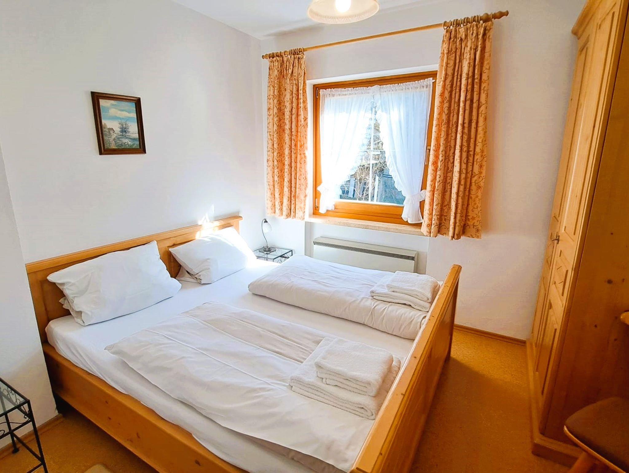 Das Wohnzimmer verfügt über eine Essecke im Landhausstil sowie eine bequeme Couch und verspricht gemütliche Abende. Die beiden Schlafzimmer sind jeweils mit einem Doppelbett und einem Schrank möbliert. Zur voll ausgestatteten, modernen Küche gehören neben einem Kühlschrank auch ein 4-Plattenherd, ein Backofen und eine Mikrowelle. Weiters verfügt die Wohnung über ein modernes Bad mit WC und Dusche, sowie eine separate extra Toilette. Der sonnige Südbalkon lädt jederzeit zum Verweilen ein und bietet eine Aussicht zum Genießen. Für unsere Gäste steht zudem freies WLAN, Kabel TV, eine Stereoanlage, ein eigener Parkplatz und ein beheizter Skiraum zur Verfügung.