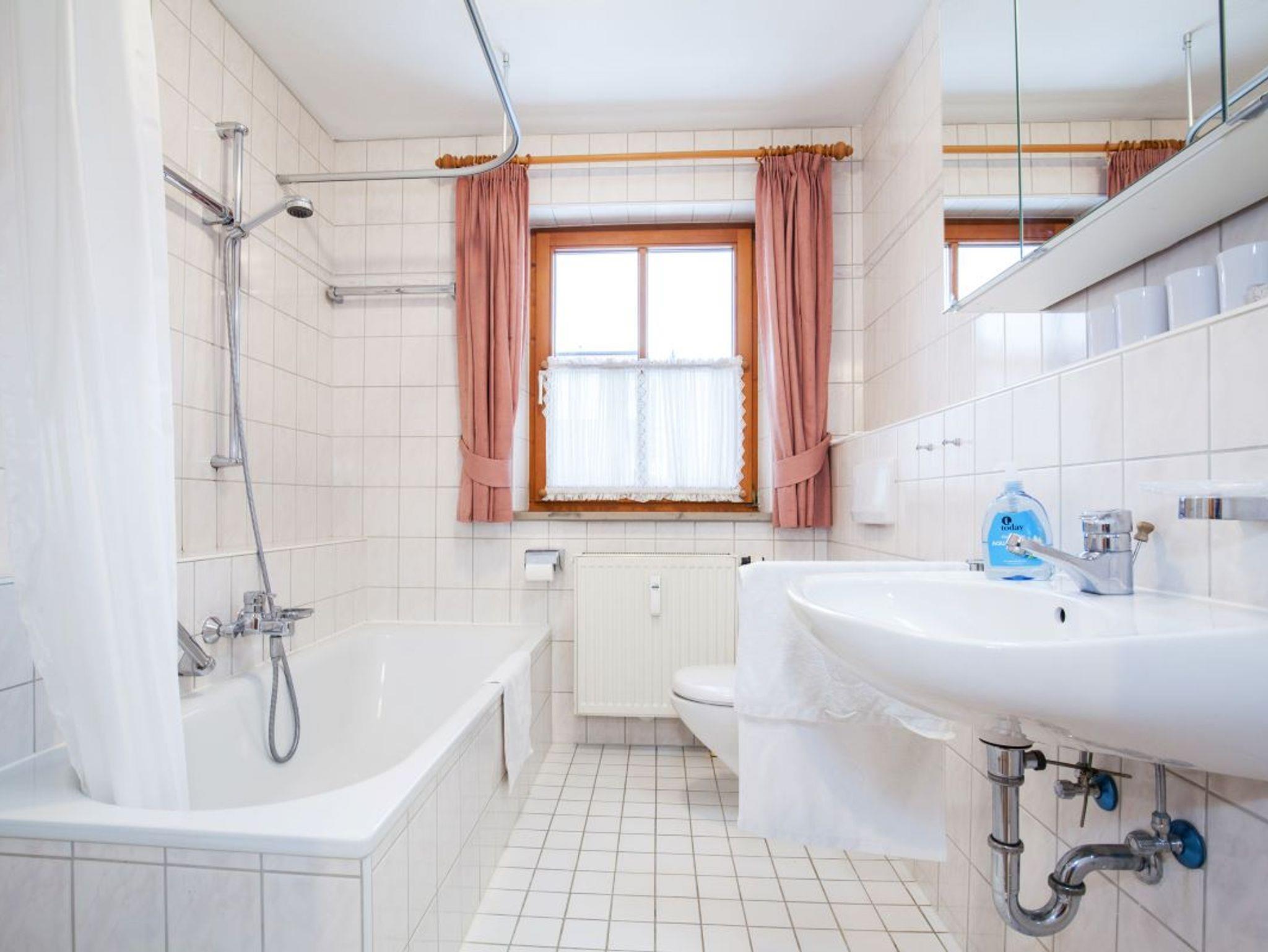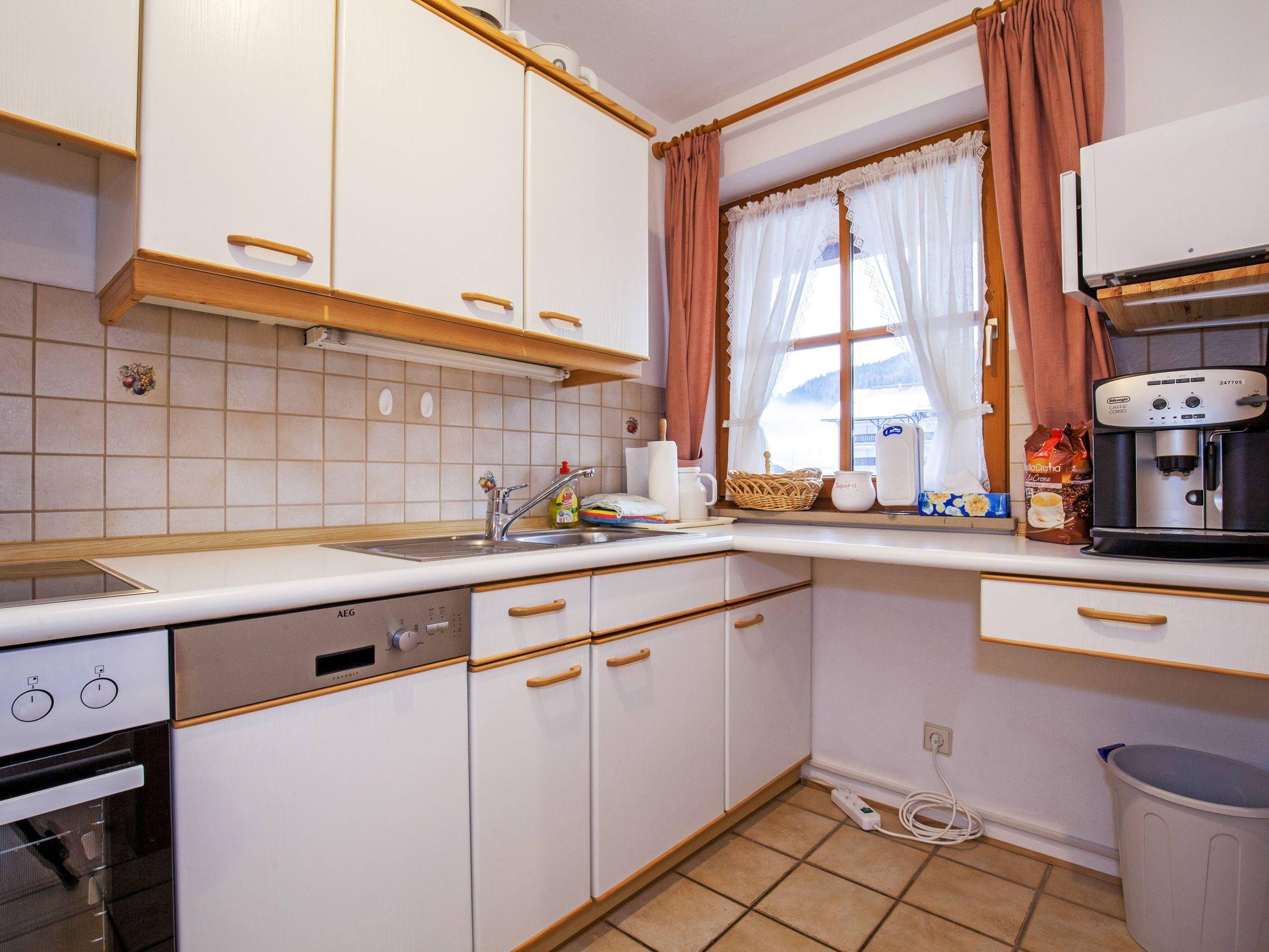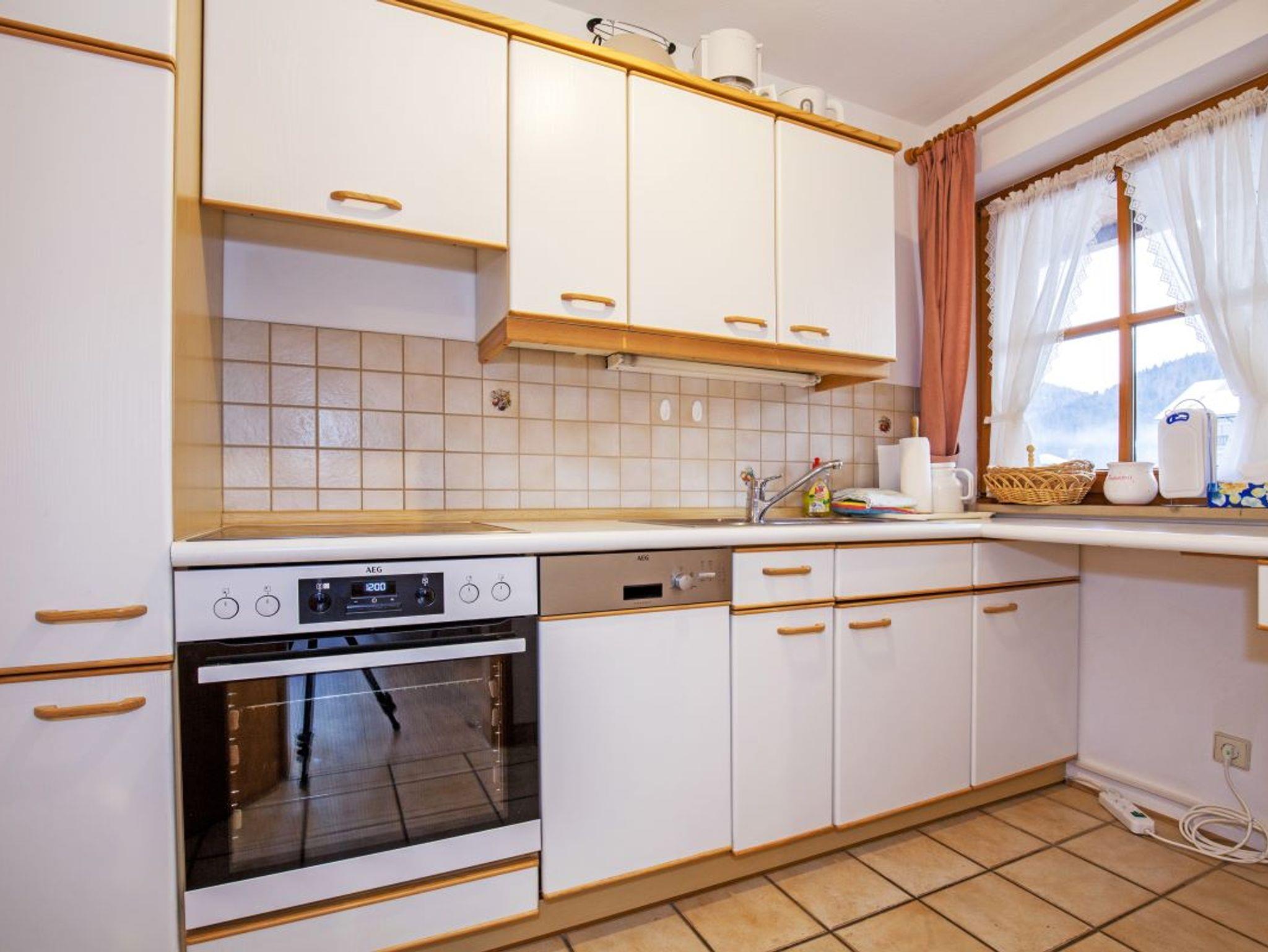 Am anderen Ende des Raumes befindet sich eine vollausgestattete Küchenzeile mit neuwertigen Elektrogeräten wie ein Kühlschrank mit Tiefkühlfach, Geschirrspüler, Ceranfeld mit 4 Platten, und ein Backofen. Zudem gibt es einen Toaster, Eierkocher, Wasserkocher, Kaffeemaschine, Kaffeevollautomat von DeLonghi (Bohnen) und eine Mikrowelle. Das Schlafzimmer verfügt über ein Doppelbett, ein TV-Gerät (32 Zoll) und einen großen Schrank aus Echtholz. Der etwa 25 m² große möblierte Balkon mit Süd- und Ostausrichtung, ist mit einem Fliesenboden ausgestattet. Der Balkon ist sowohl vom Wohnzimmer als auch vom Schlafzimmer aus begehbar und bietet einen herrlichen Ausblick auf die umliegende Bergwelt. Genießen Sie entspannte Momente in der Badewanne. Im Badezimmer gibt auch eine Duschmöglichkeit, ein Waschbecken mit Spiegelschrank und ein WC. Gerne können unsere Gäste die zur Wohnung gehörende Waschmaschine und den Wäschetrockner im Keller benutzen.