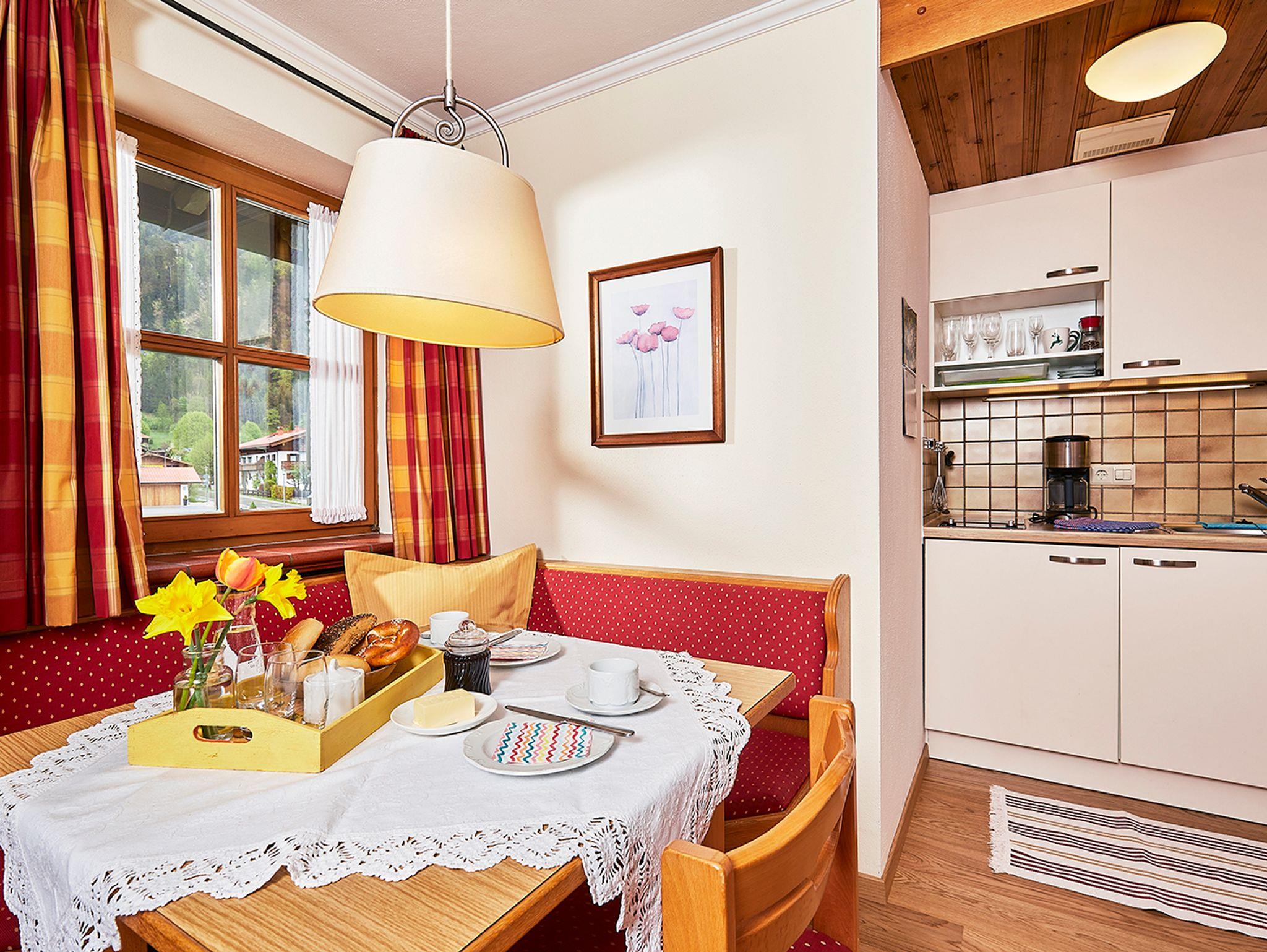 Komfortabel und gemütlich eingerichtete Zwei-Raum-Ferienwohnung, ca. 37 qm im 1. OG. Großer umlaufender Balkon mit Holzmöbeln .Freier Blick auf Kaisergebirge und Langlaufstadion. Komplett ausgestattete kleine Küche. Bett- und Tischwäsche,sowie Handtücher sind ausreichend vorhanden. Flat/TV, Radio/CD-Player. W-LAN kostenfrei. Allergikerfreundliche Wohnung mit Parkettboden.