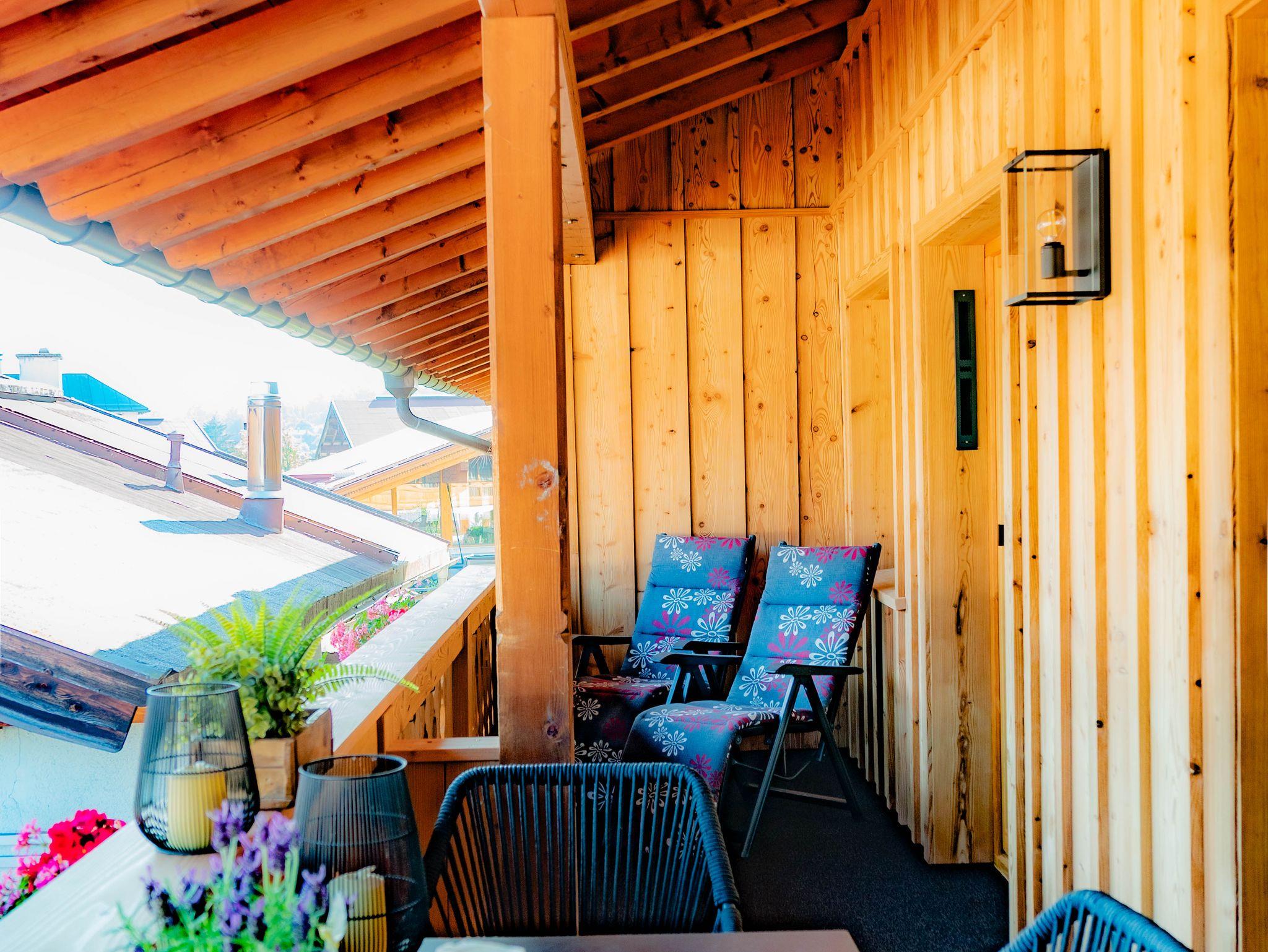 Der großzügige Balkon in Südlage lädt dazu ein, das Dorfgeschehen von oben zu beobachten und den Tag bei einem Glas Wein ausklingen zu lassen.