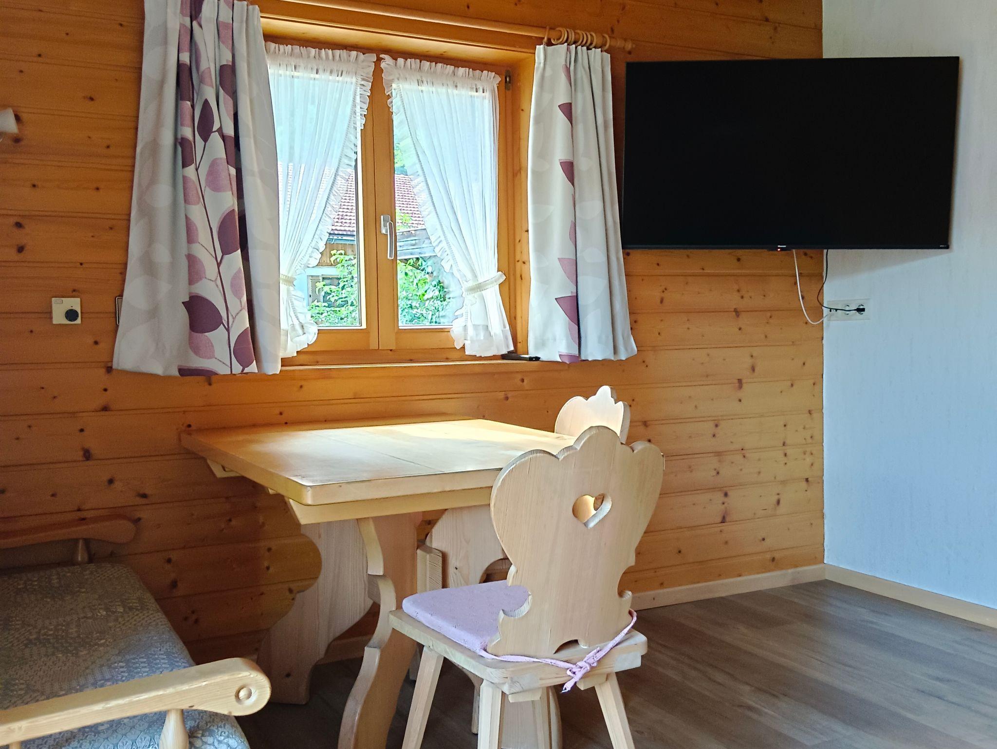 Unsere Ferienwohnung 2 bietet alles, was Sie für einen erholsamen Sommerurlaub brauchen: ein geräumiges Schlafzimmer, eine gemütliche Wohnküche mit Esstisch und großer Sofaecke zum Fernsehen. Außerdem natürlich ein Bad.