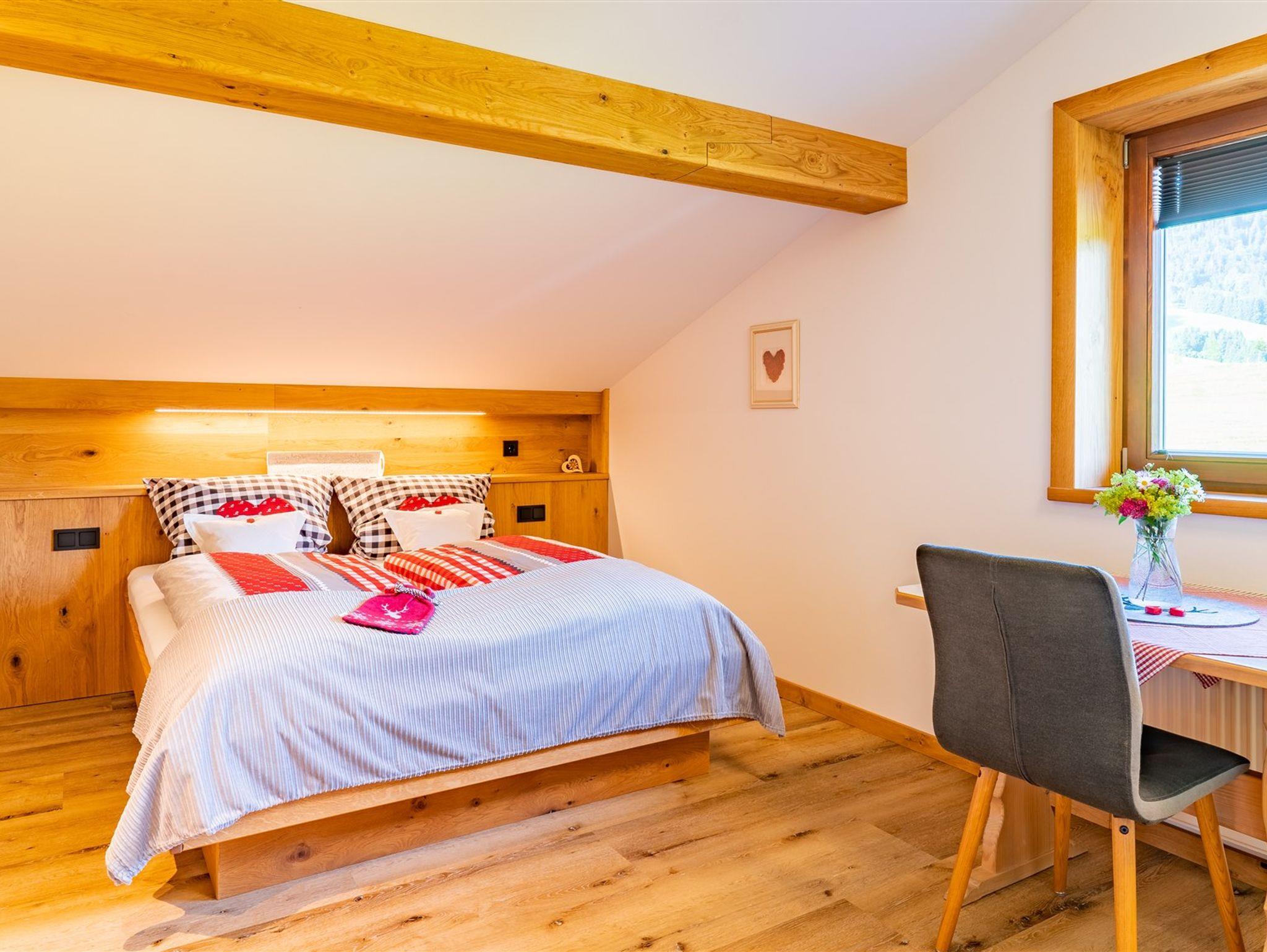 Unsere sieben Ferienwohnungen (für 2-5 Personen), davon Nr. 1,6,7,8 mit einer **** und *****Sternen Klassifizierung und die drei Doppelzimmer sind teilweise alpenländisch, aber auch modern mit viel Liebe zum Detail gestaltet und werden ständig renoviert. Viele Schnitzarbeiten, Möbel und Holzdetails fallen auf - Sie werden vom Hausherrn individuell gefertigt - darum steckt auch viel Herzblut in der Einrichtung.
